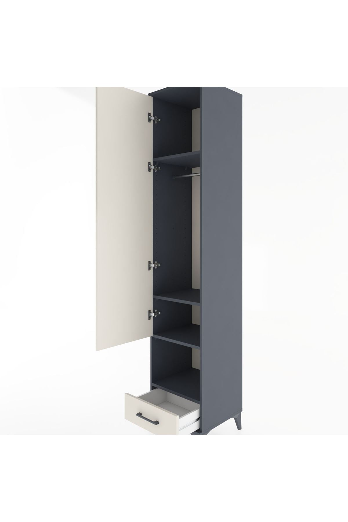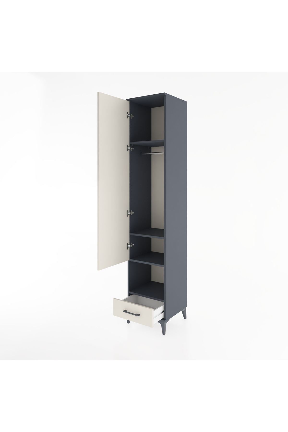 Hyperion Dolap 4 Raflı Tek Çekmeceli Tek Askılı 44x44x221 Antrasit-Aytaşı