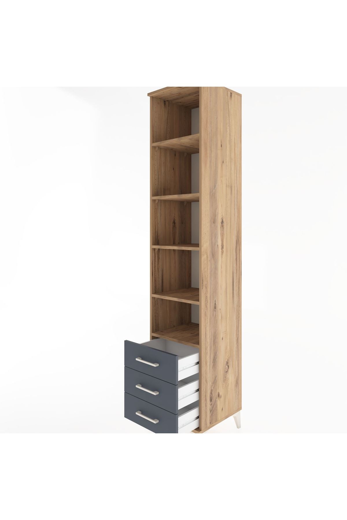 Hyperion Dolap 5 Raflı 3 Çekmeceli 44x44x221 Çam-Antrasit