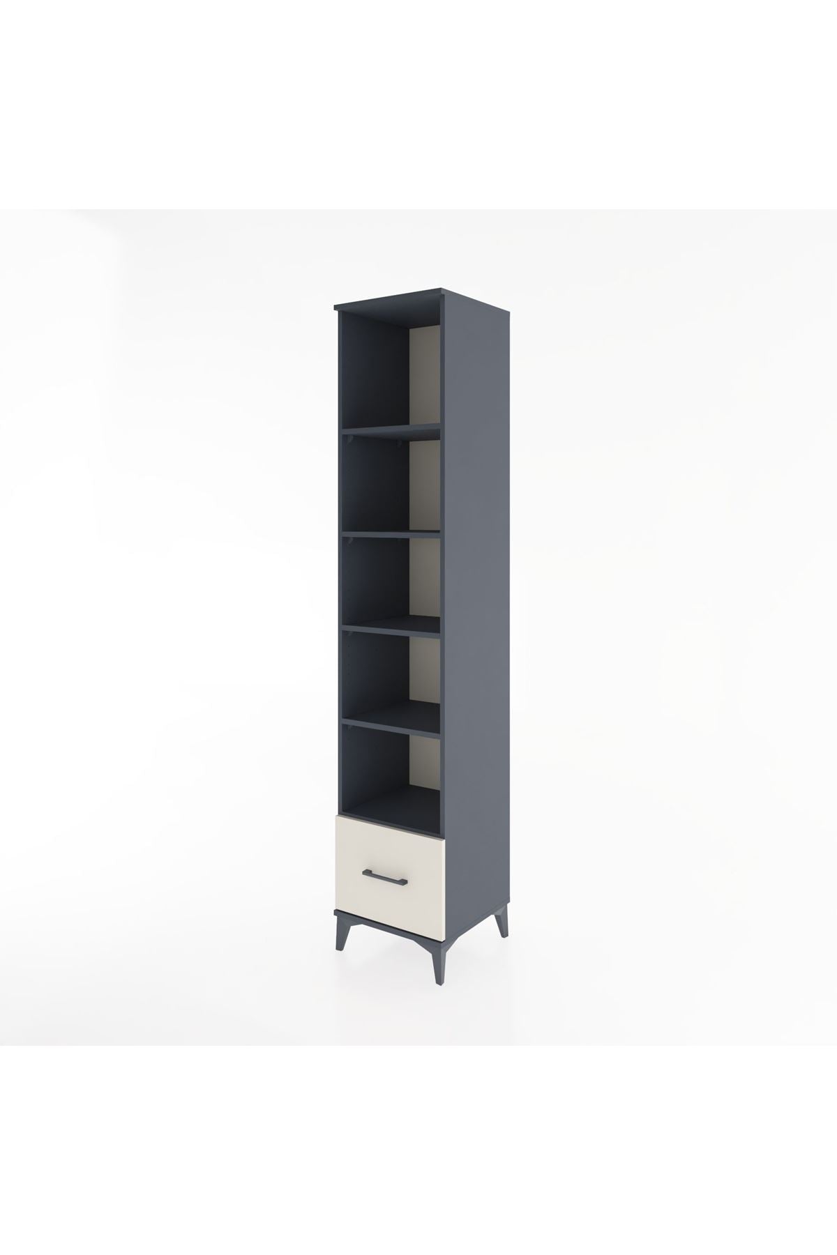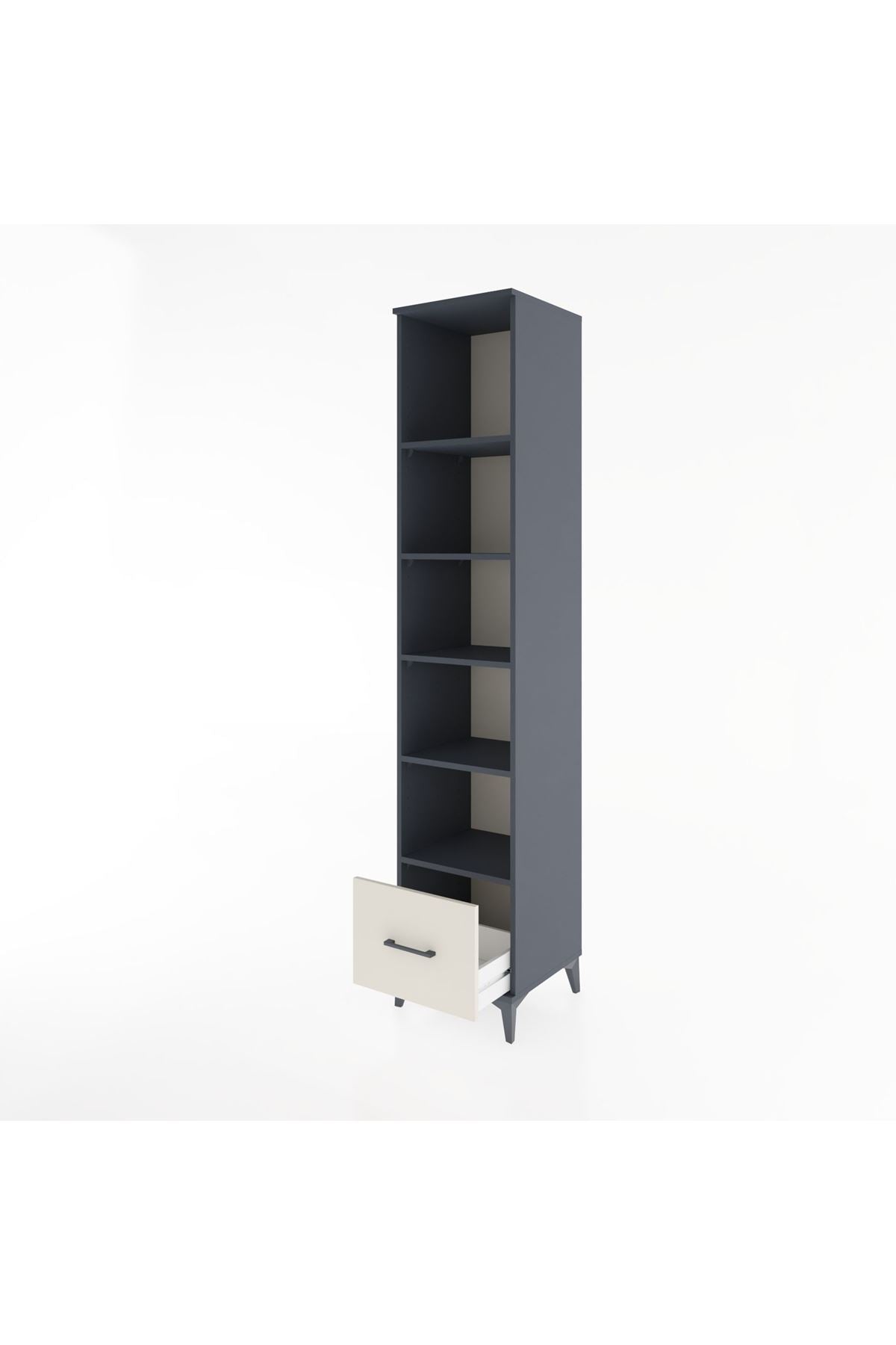 ✨ Hyperion Dolap 5 Raflı Tek Çekmeceli, 44x44x221 cm ölçüleriyle güçlü antrasit ve zarif aytaşı renginin modern uyumunu buluşturuyor; her detayıyla sade ve işlevsel bir yaşam alanı sunuyor.