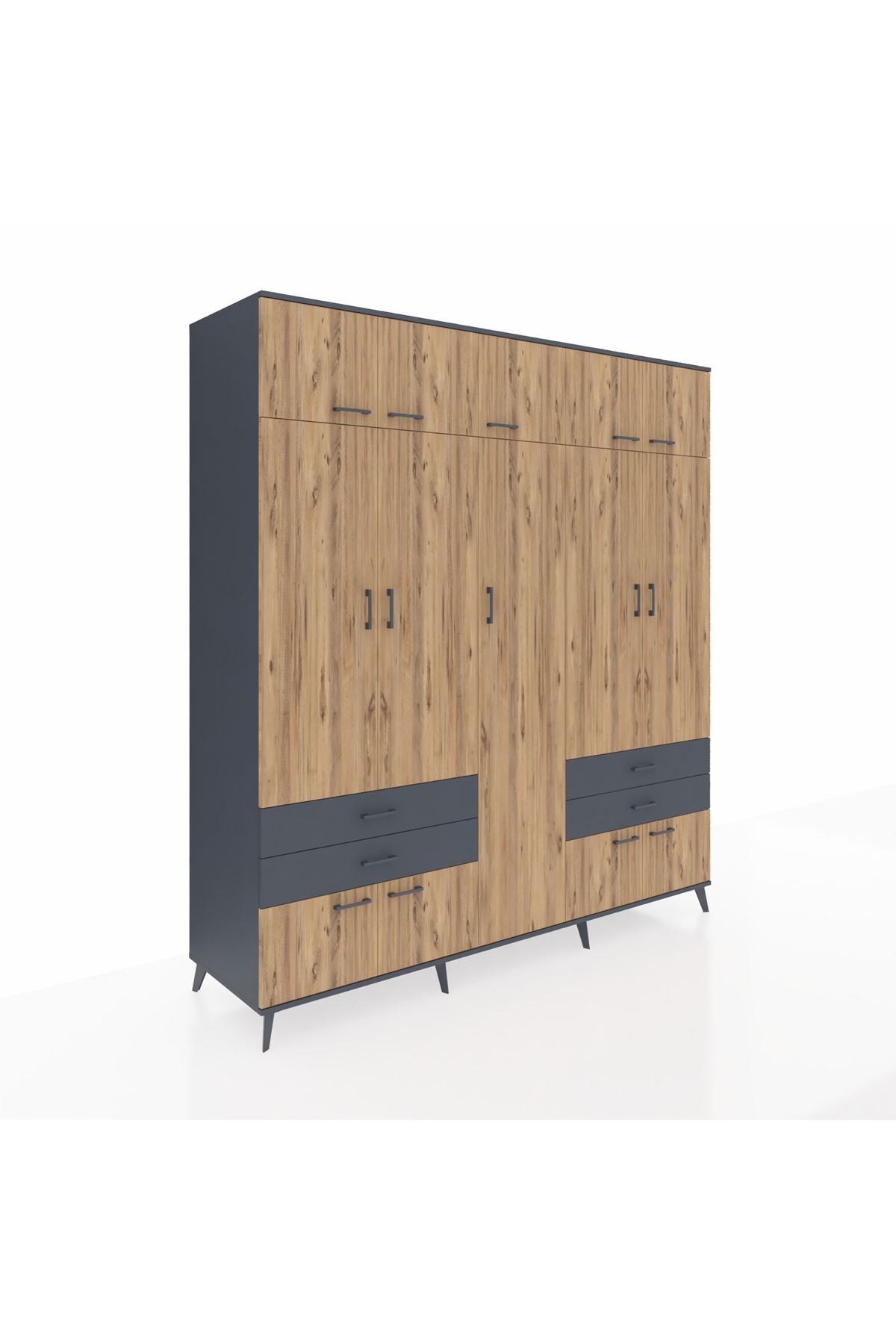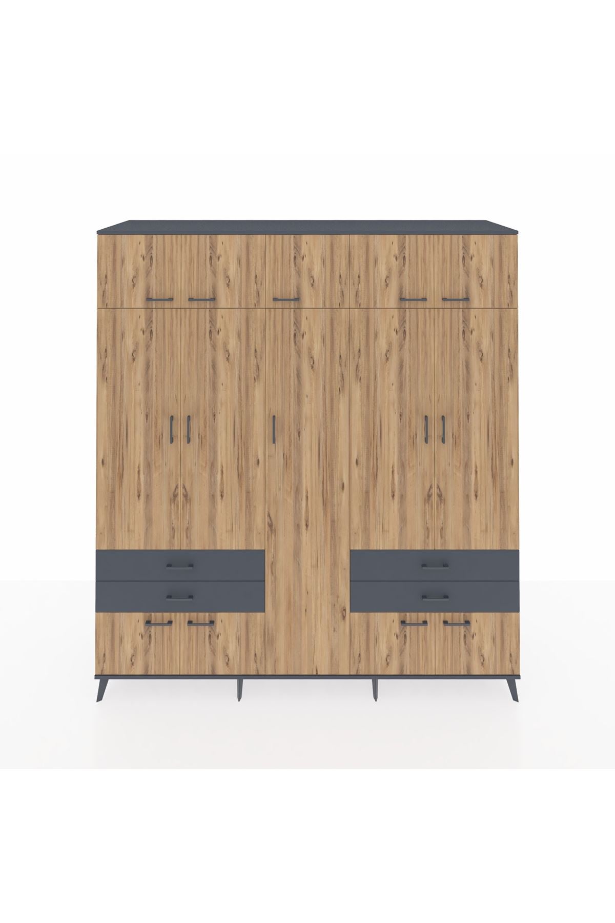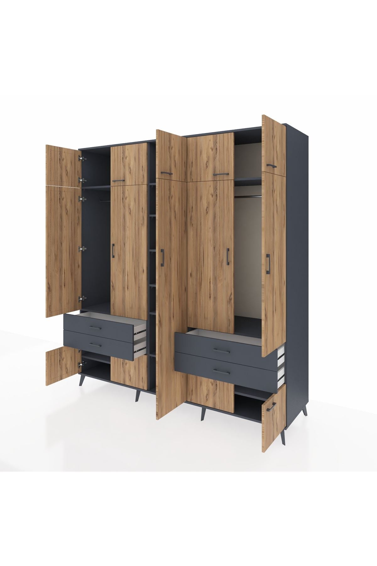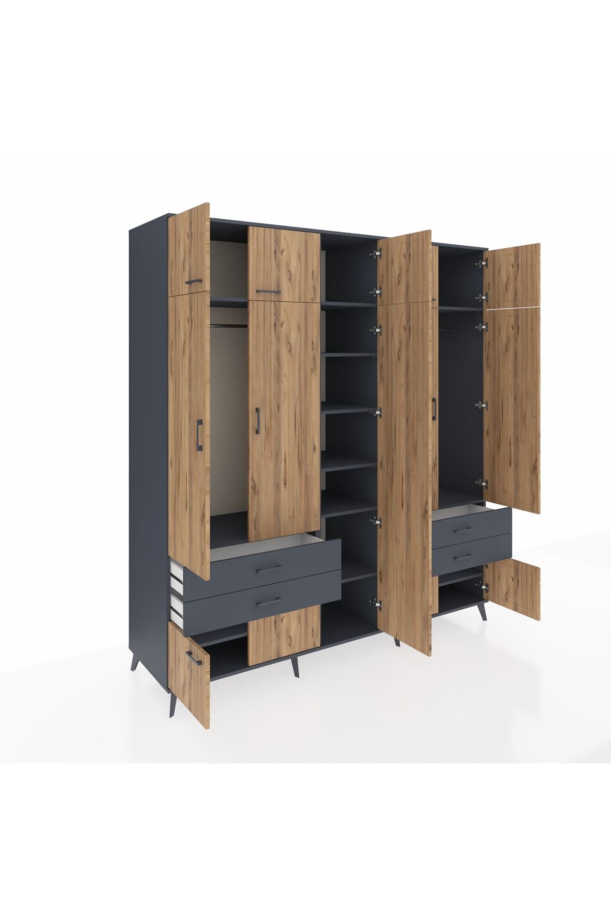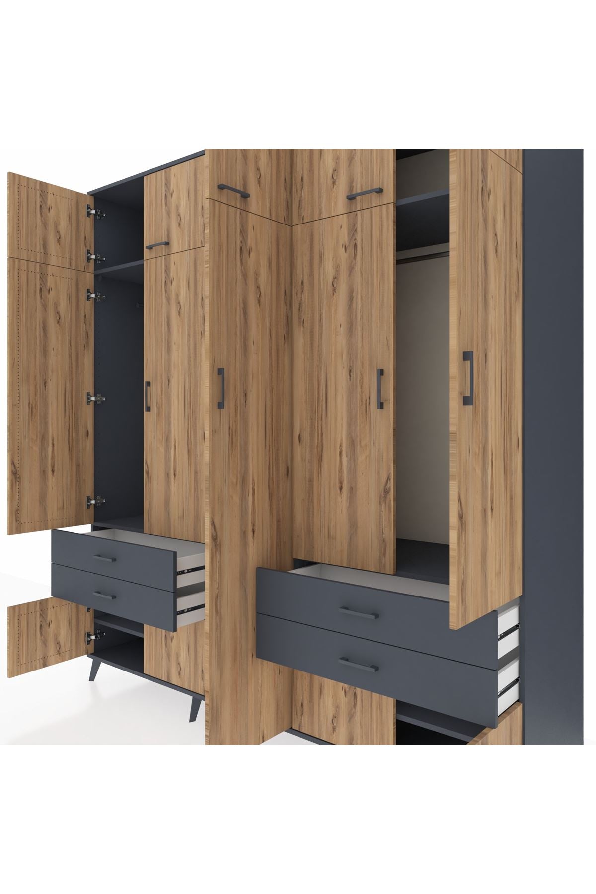 Kronos Dolap 12 Raflı 4 Çekmeceli 2 Askılı 220x59x243 Antrasit-Çam/Antrasit