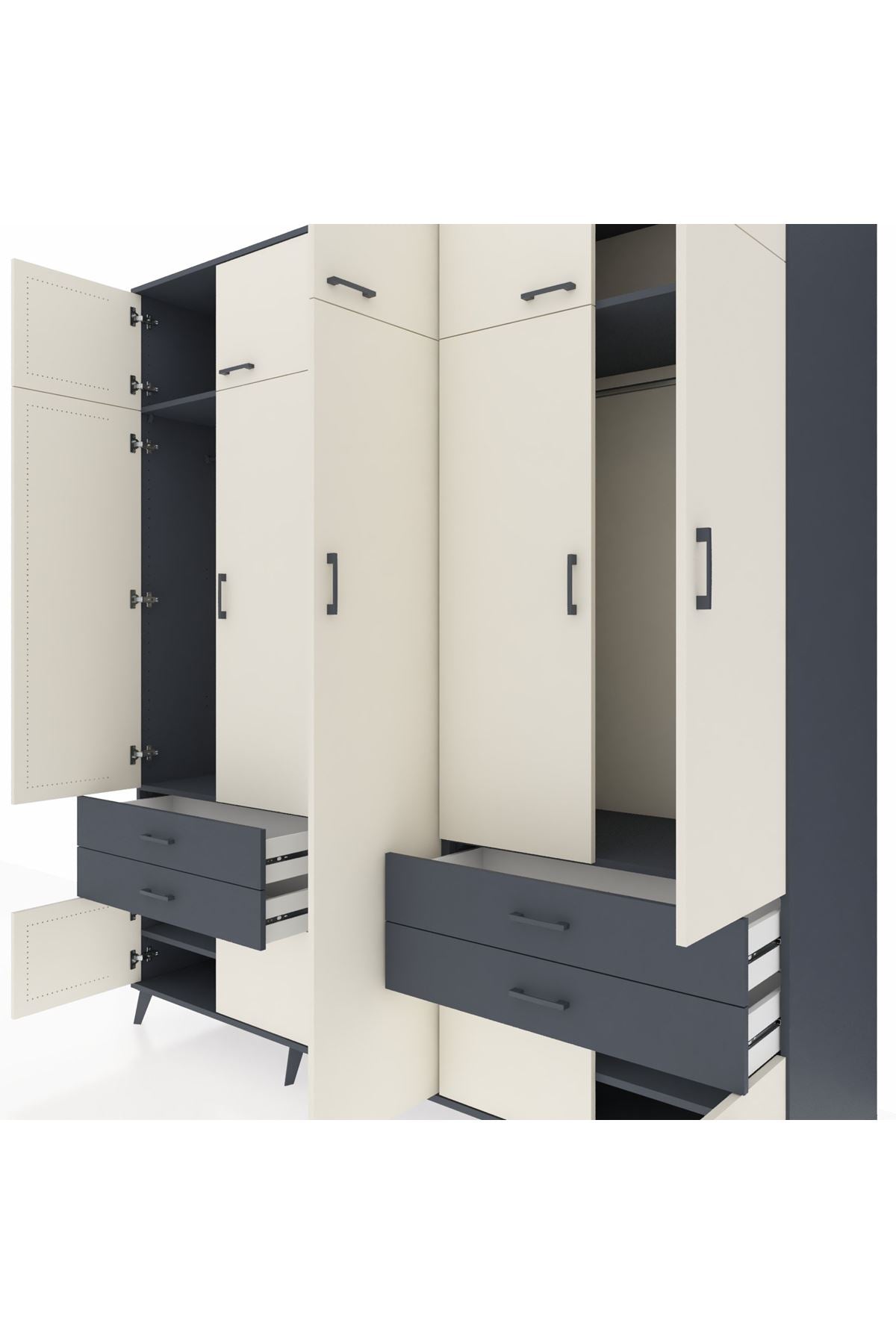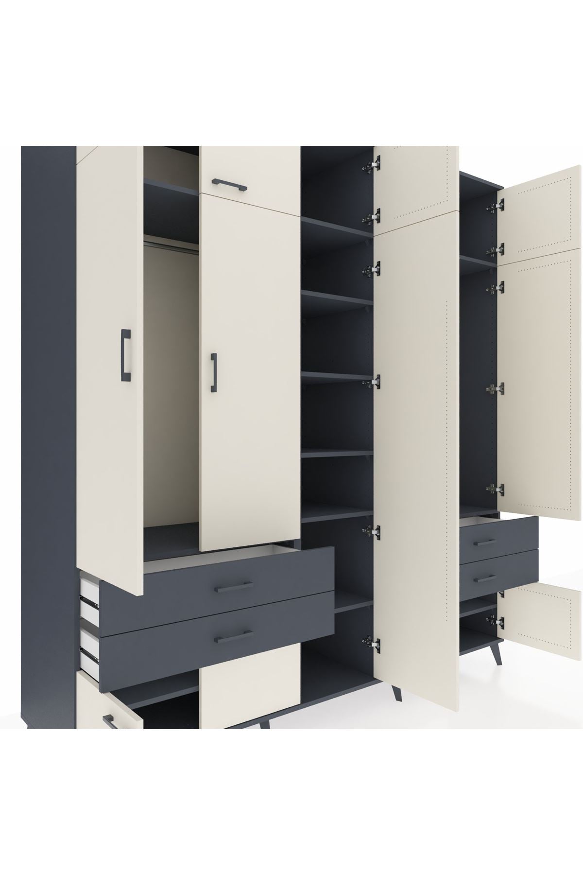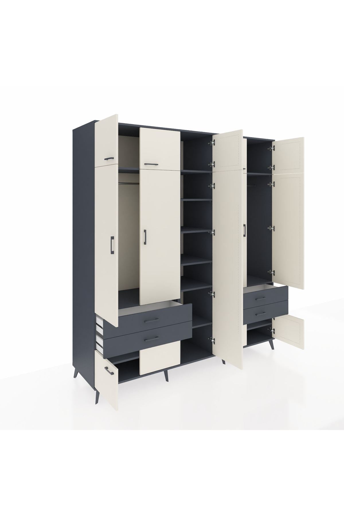 Kronos Dolap 12 Raflı 4 Çekmeceli 2 Askılı 220x59x243 Antrasit-Aytaşı/Antrasit