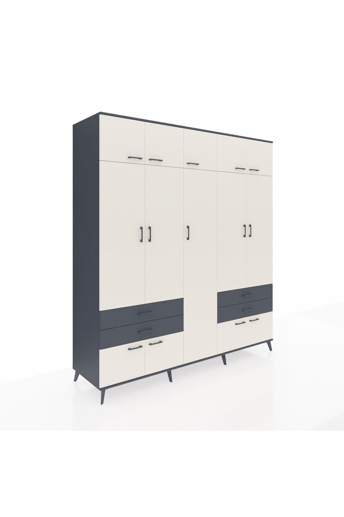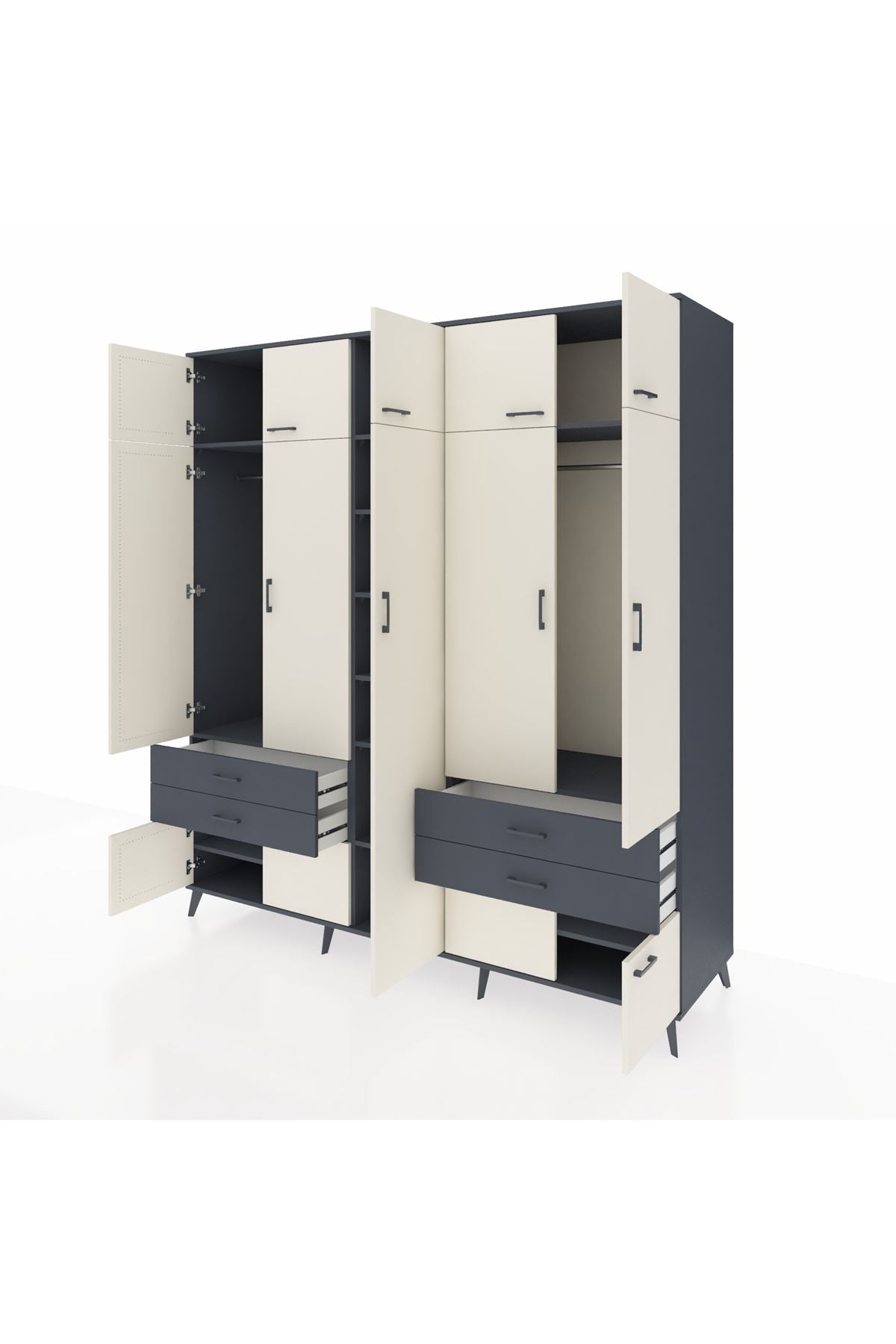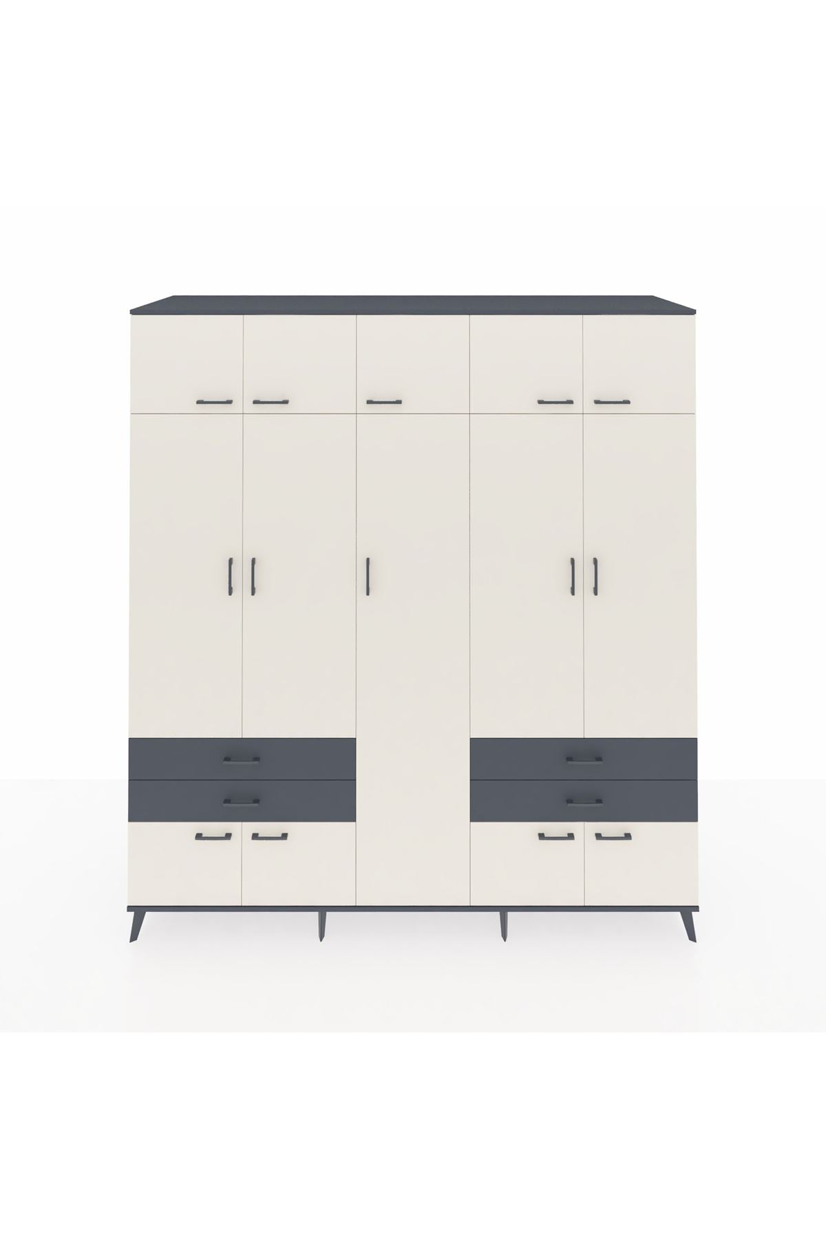 Kronos Dolap 12 Raflı 4 Çekmeceli 2 Askılı 220x59x243 Antrasit-Aytaşı/Antrasit