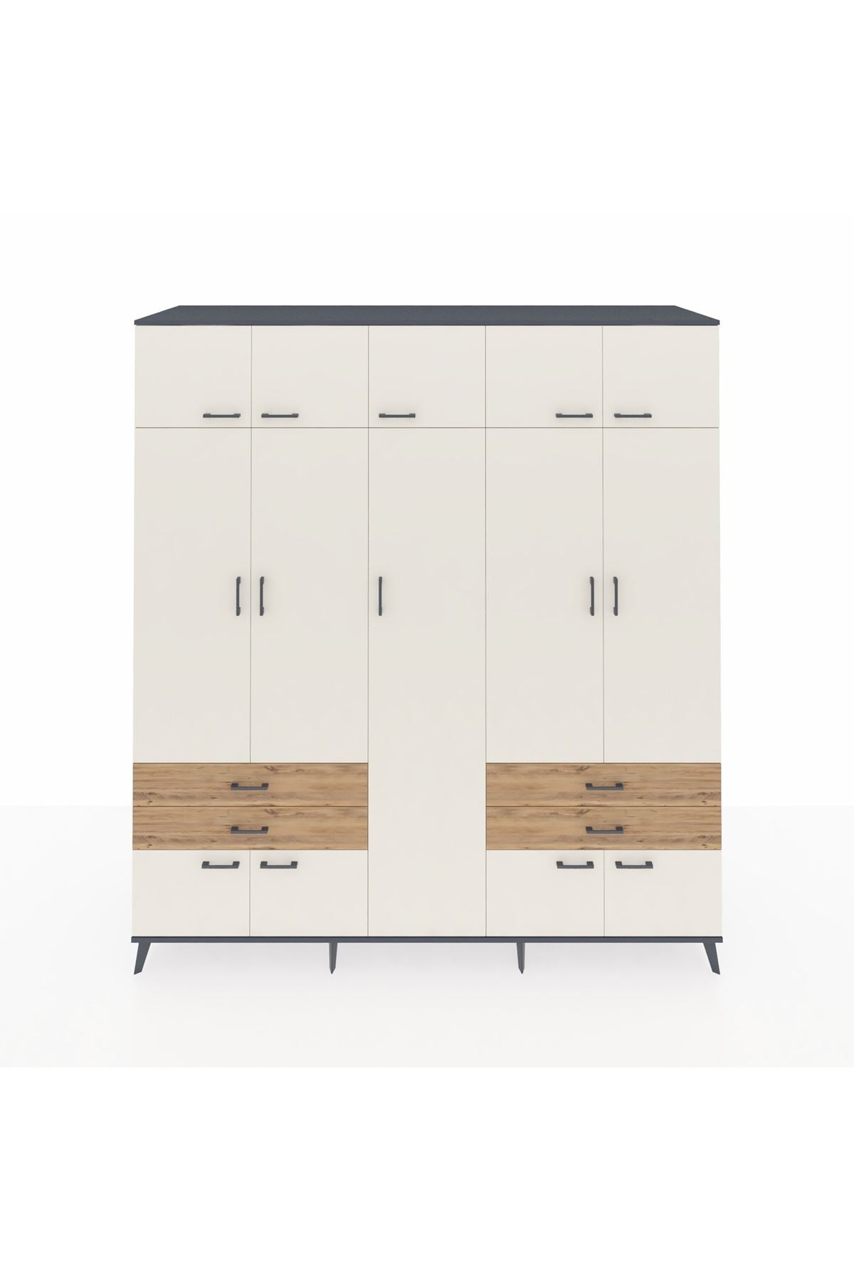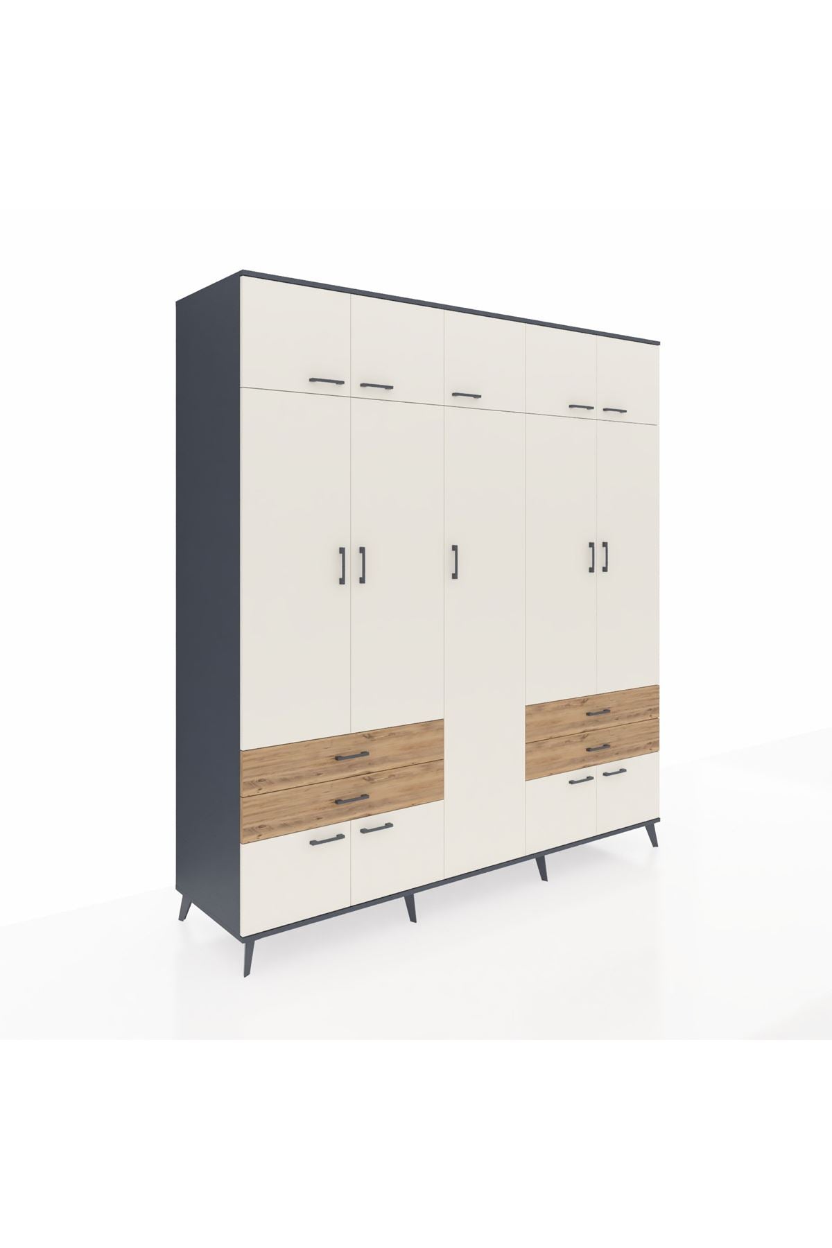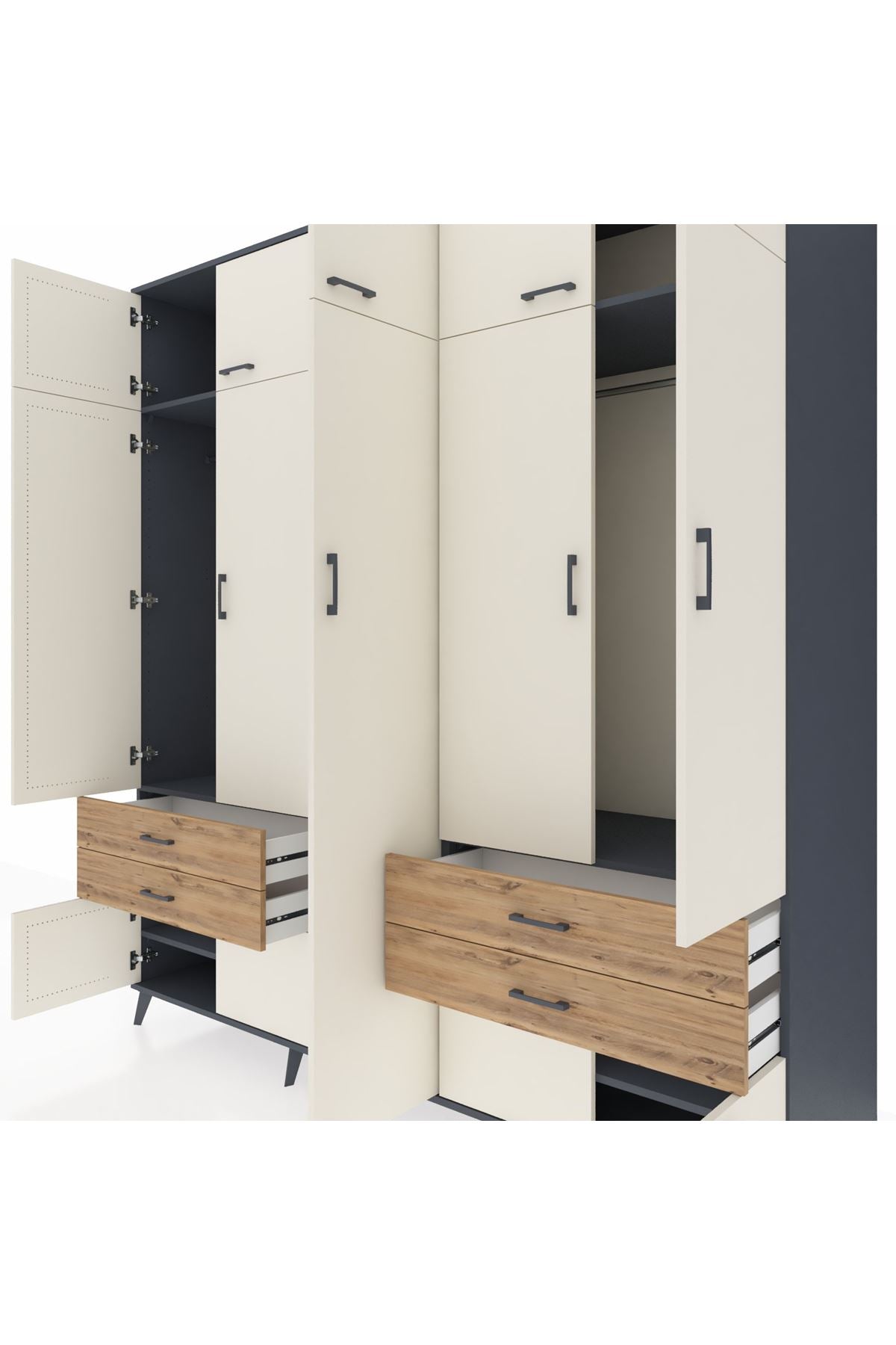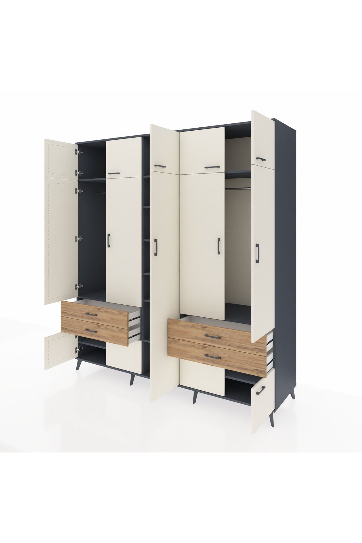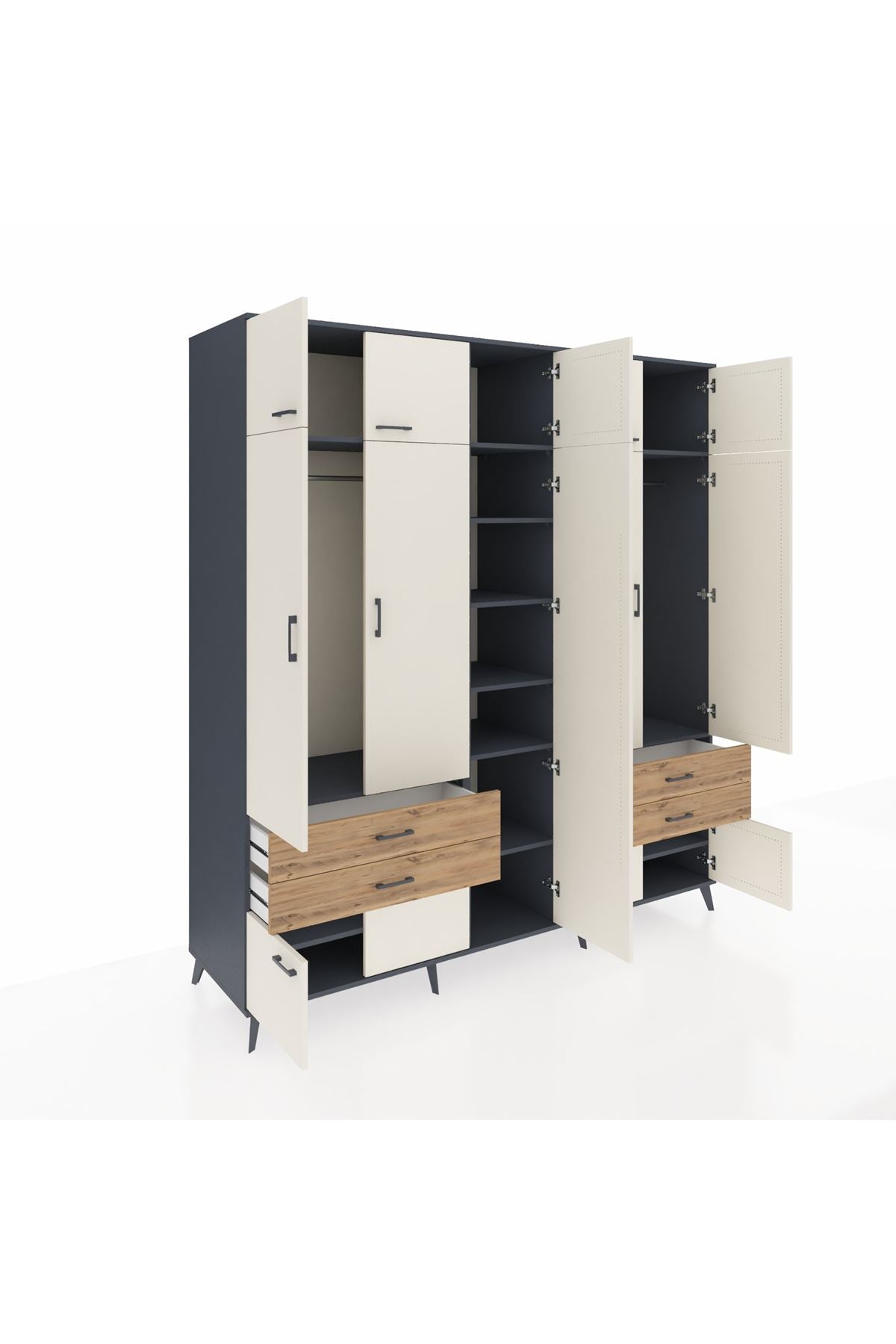 Kronos Dolap 12 Raflı 4 Çekmeceli 2 Askılı 220x59x243 Antrasit-Aytaşı/Çam