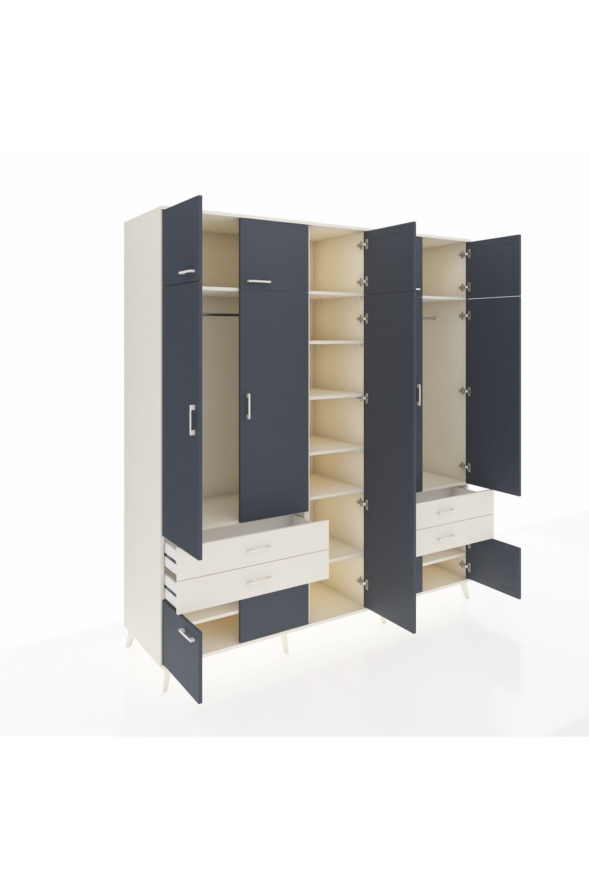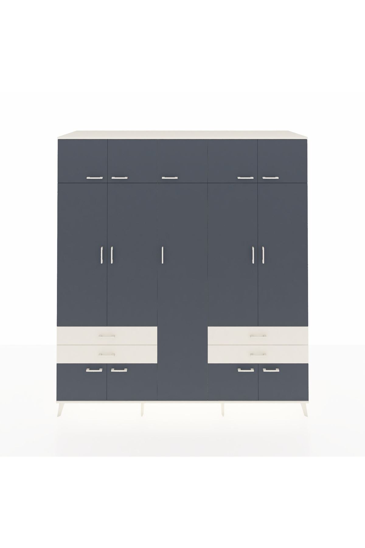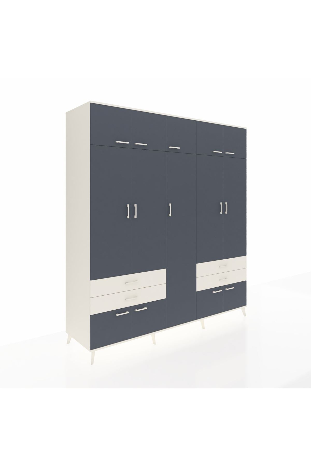Kronos Dolap 12 Raflı 4 Çekmeceli 2 Askılı 220x59x243 Aytaşı-Antrasit/Aytaşı