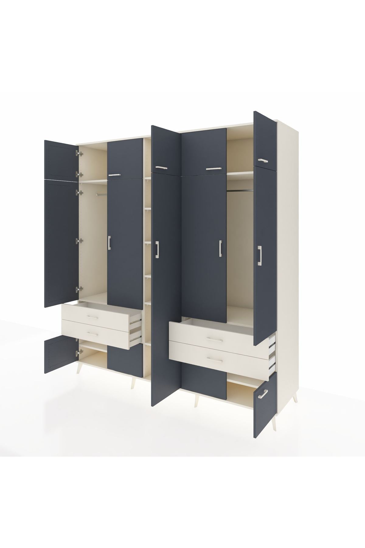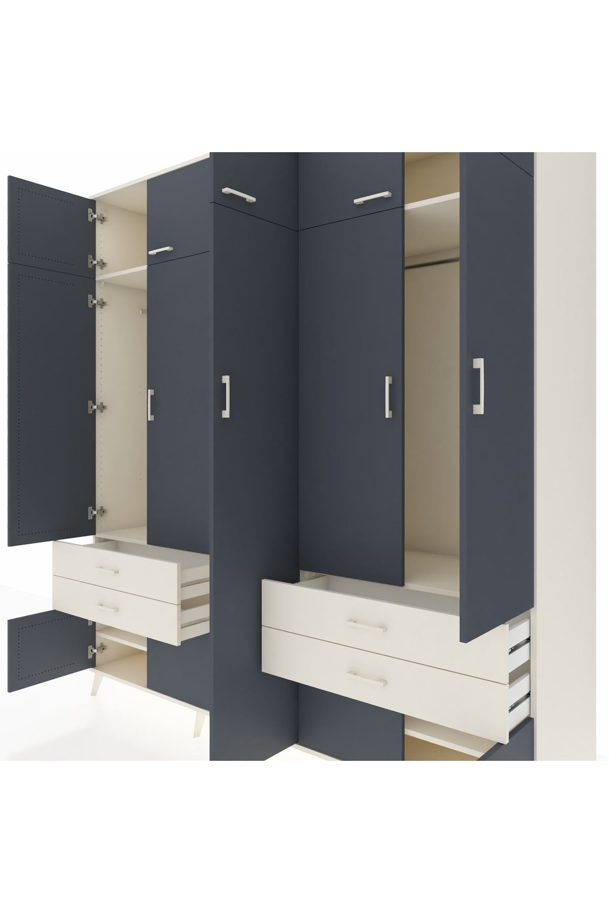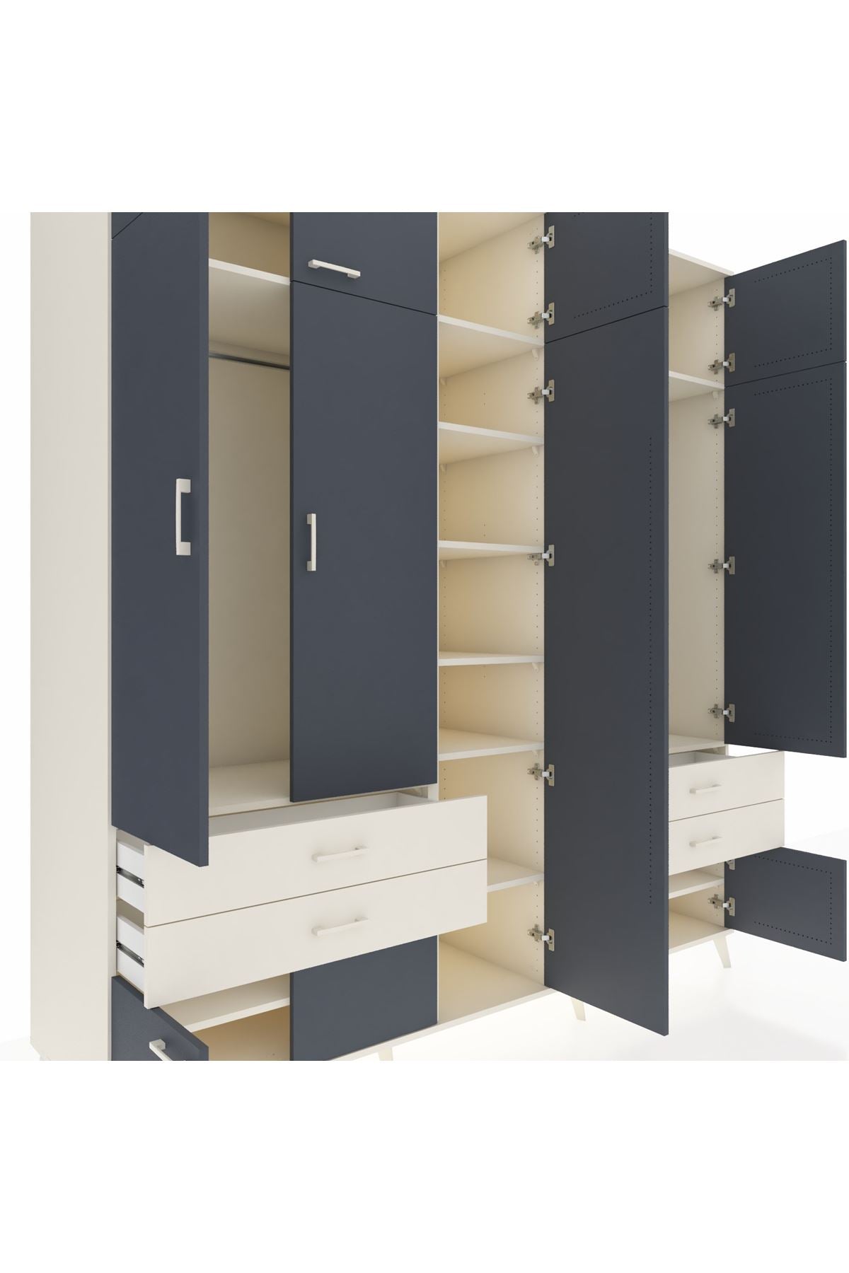 Kronos Dolap 12 Raflı 4 Çekmeceli 2 Askılı 220x59x243 Aytaşı-Antrasit/Aytaşı