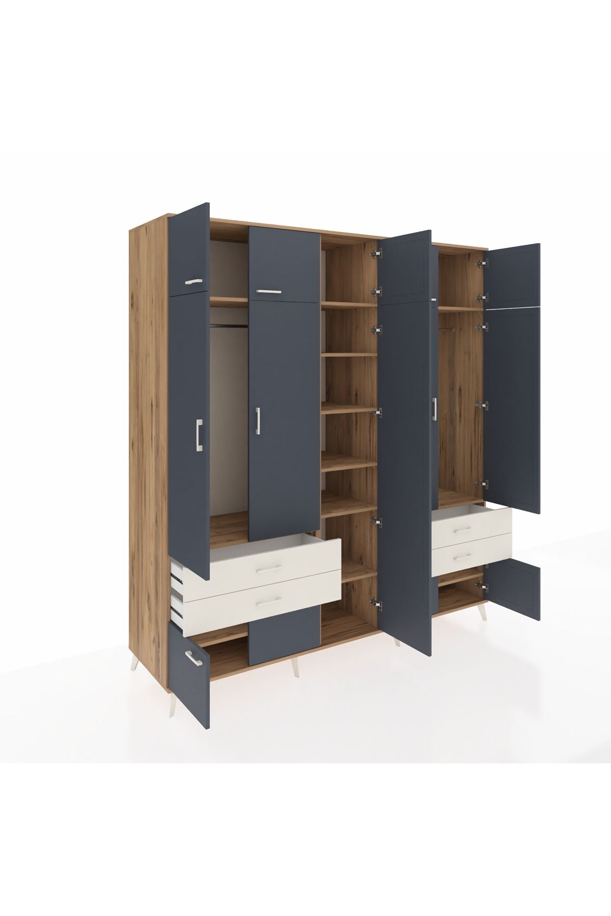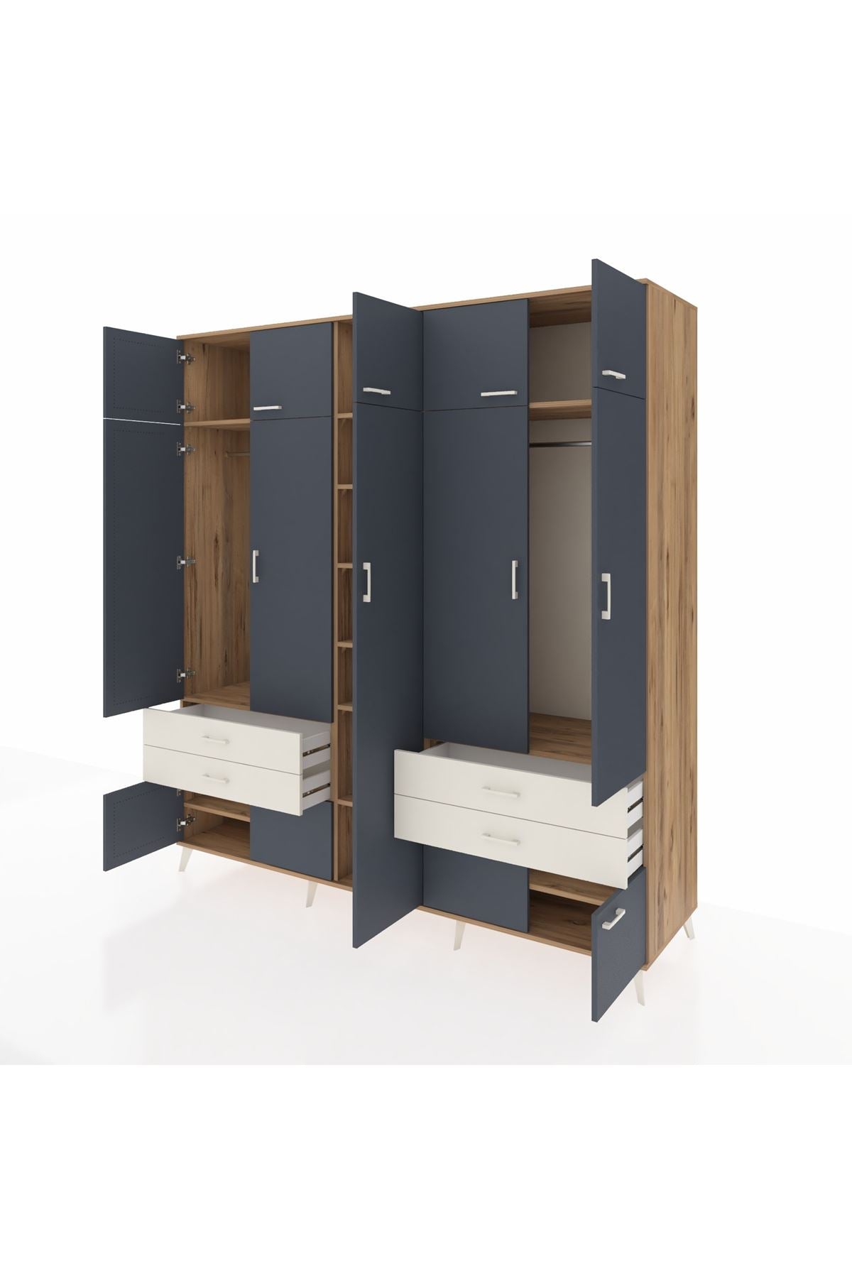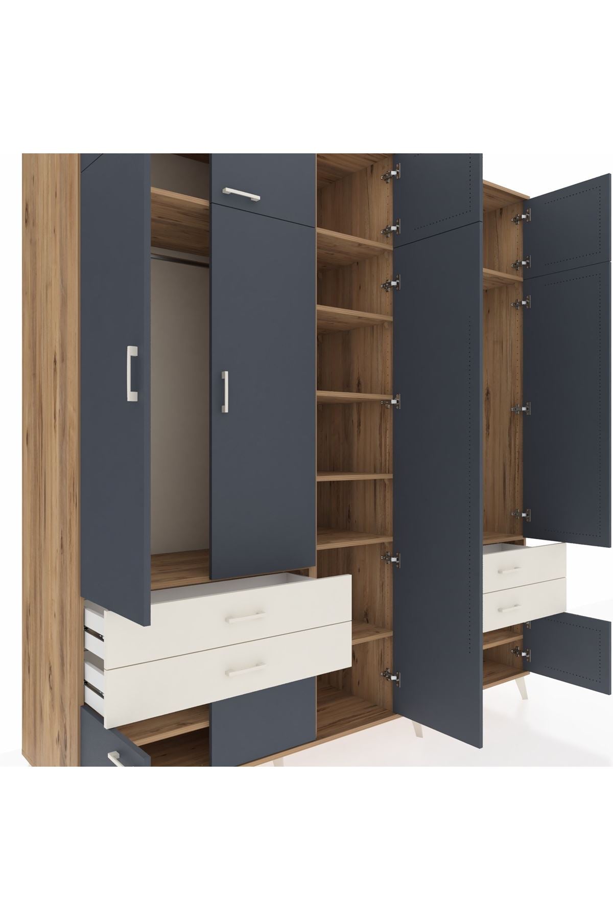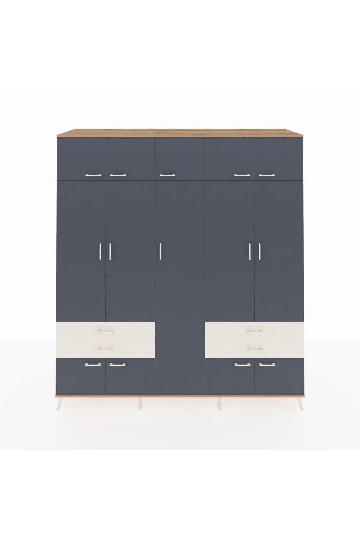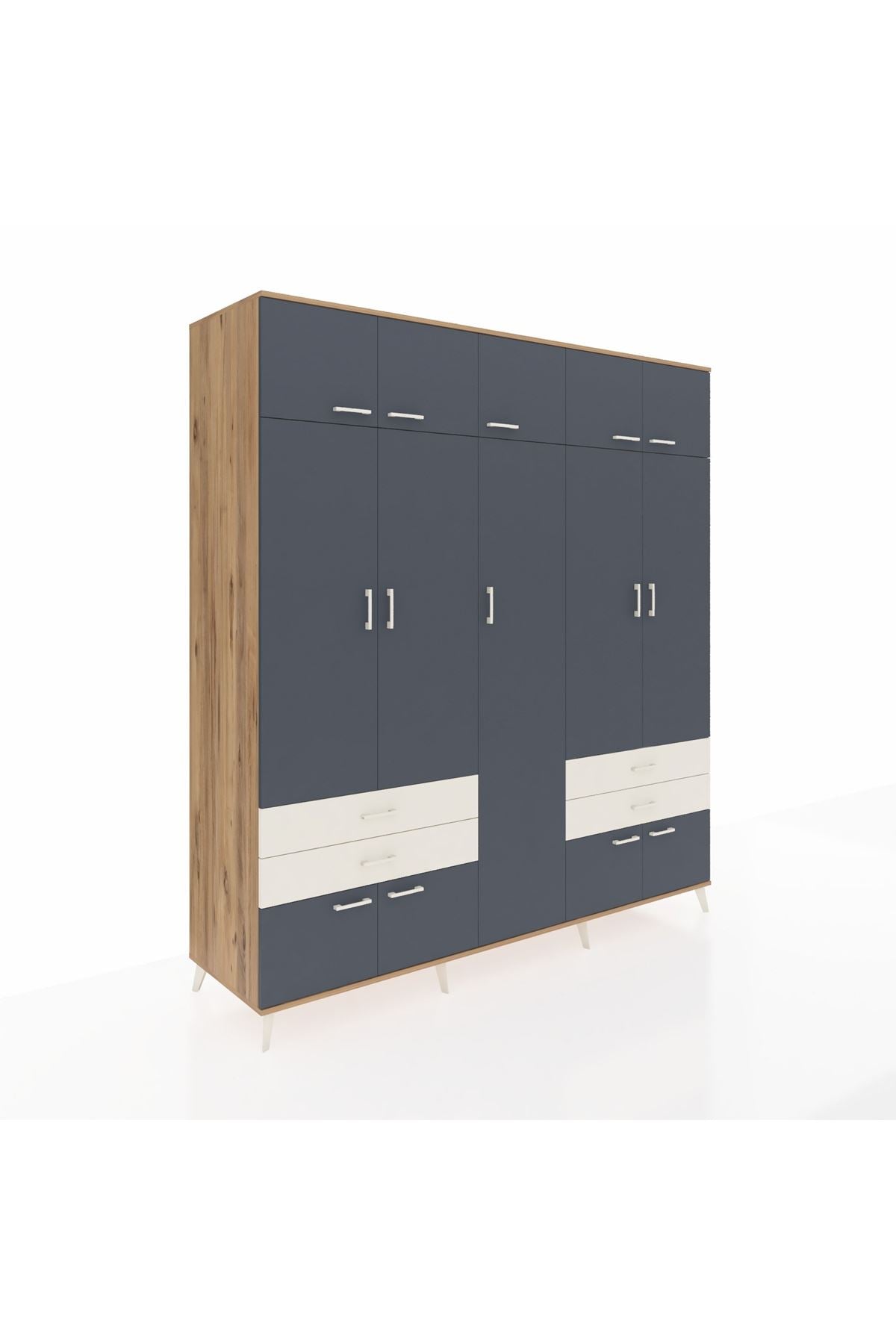 Kronos Dolap 12 Raflı 4 Çekmeceli 2 Askılı 220x59x243 Çam-Antrasit/Aytaşı