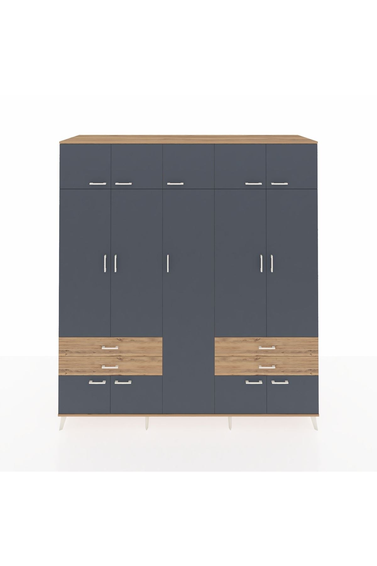 Kronos Dolap 12 Raflı 4 Çekmeceli 2 Askılı 220x59x243 Antrasit-Antrasit/Çam