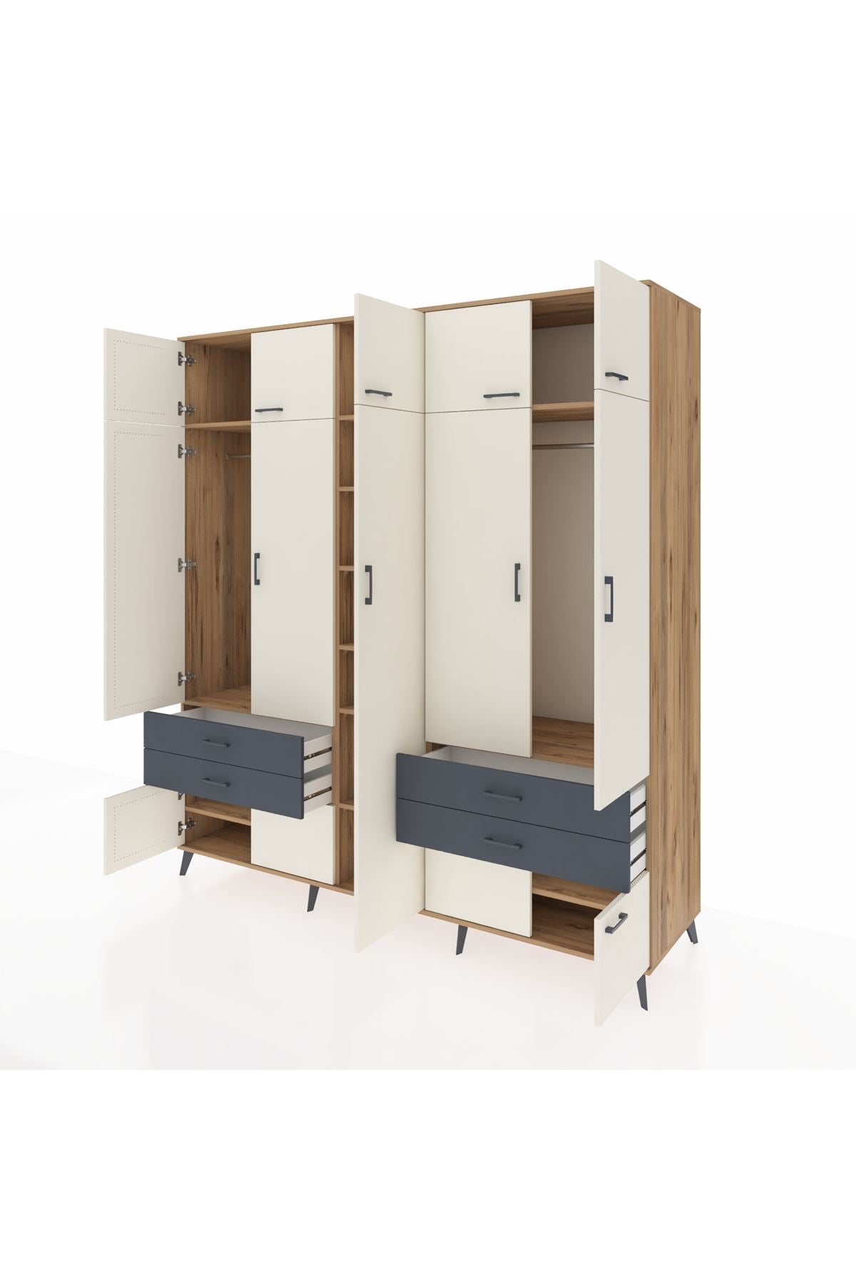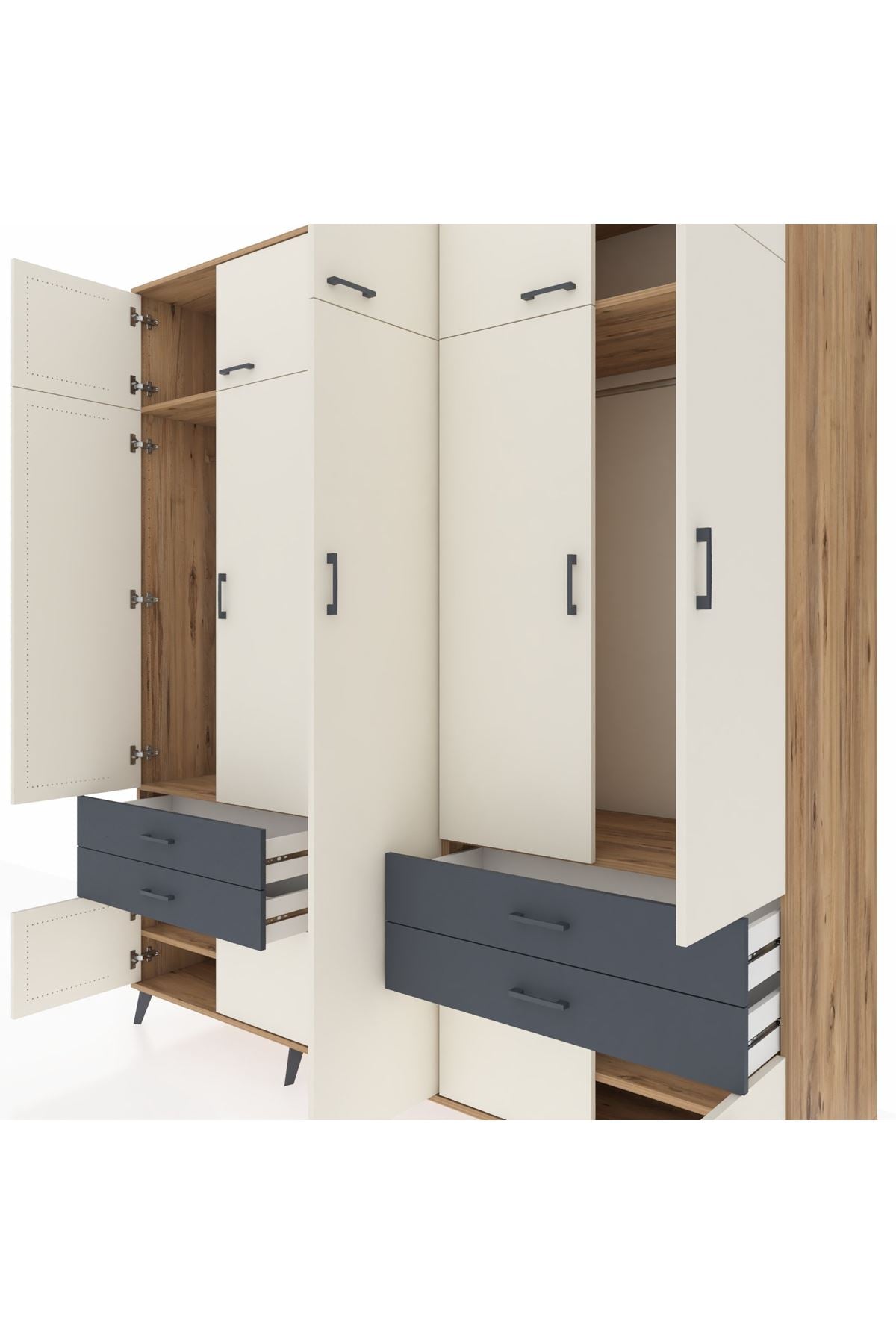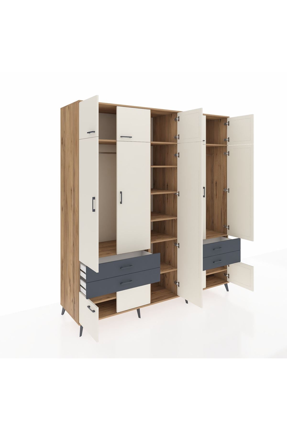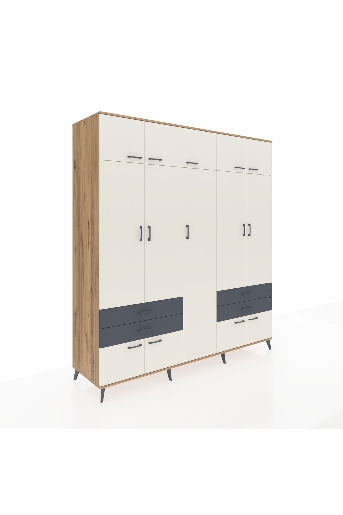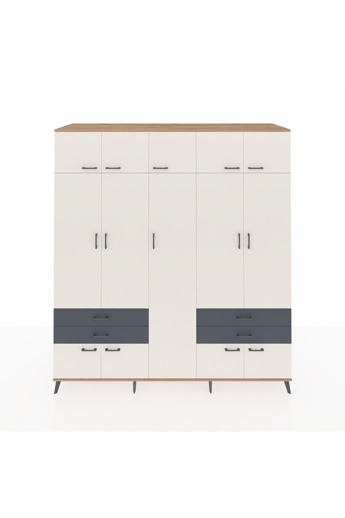 Kronos Dolap 12 Raflı 4 Çekmeceli 2 Askılı 220x59x243 Çam-Aytaşı/Antrasit