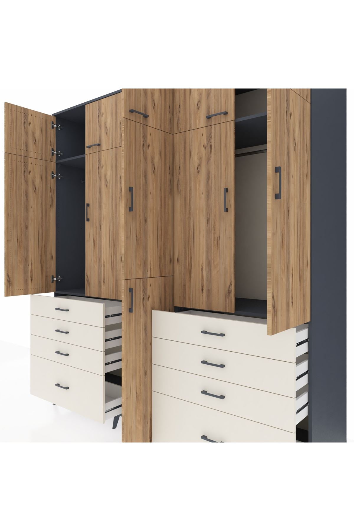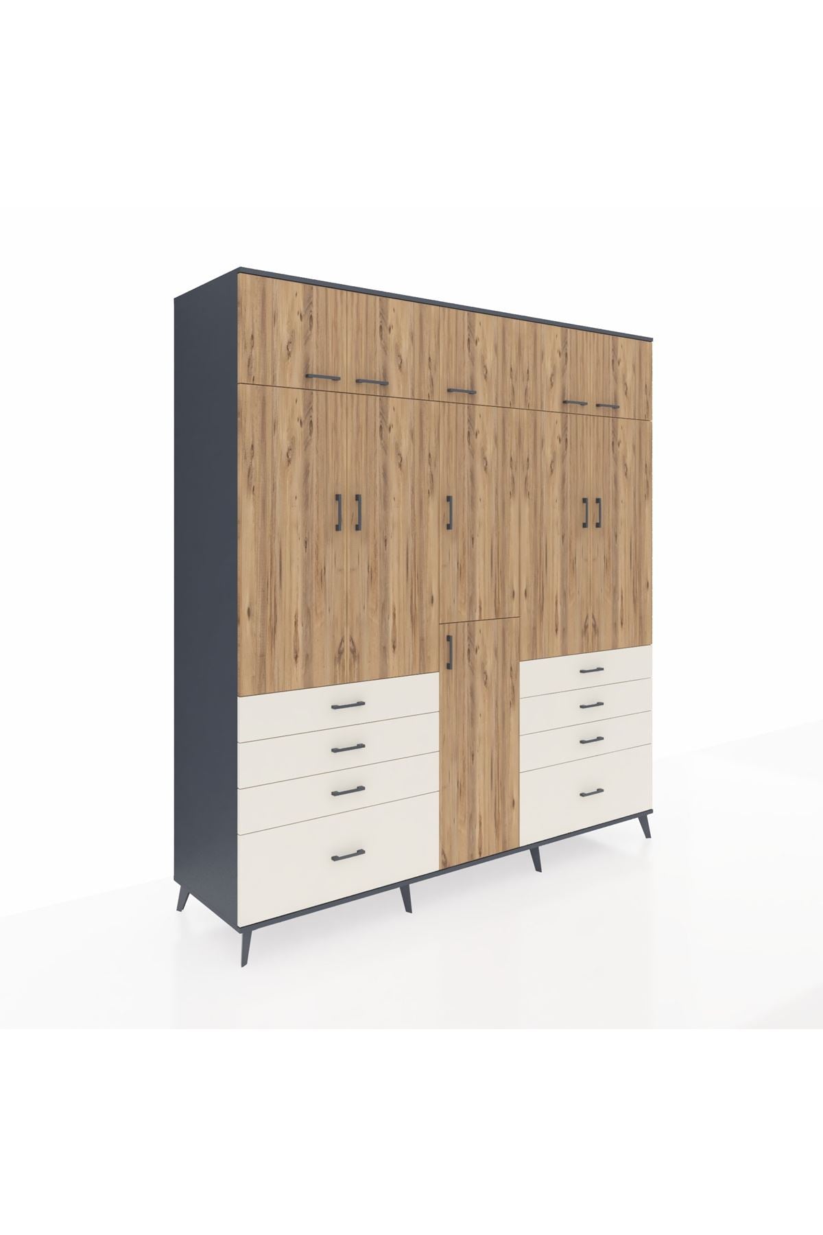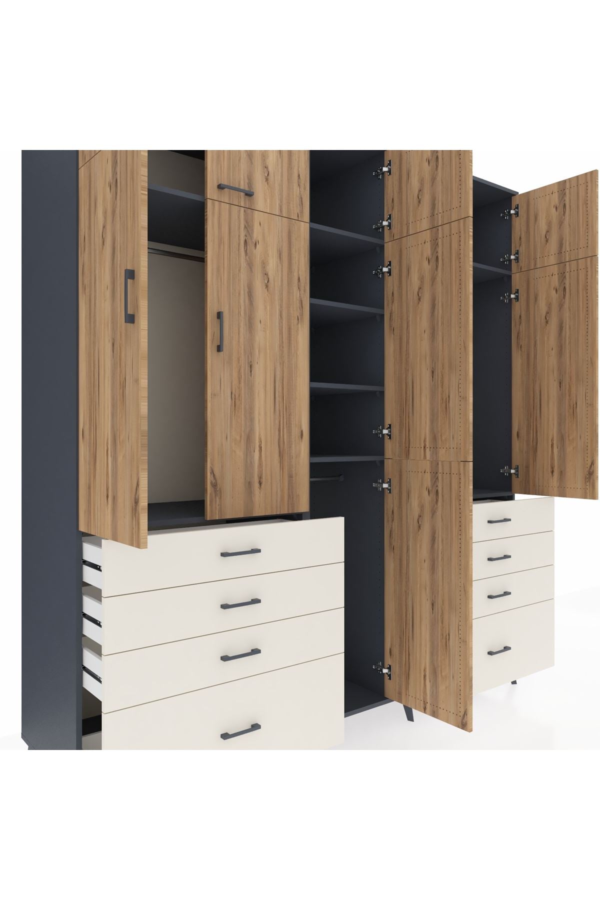 Kronos Dolap 8 Raflı 8 Çekmeceli 3 Askılı 220x59x243 Antrasit-Çam/Aytaşı