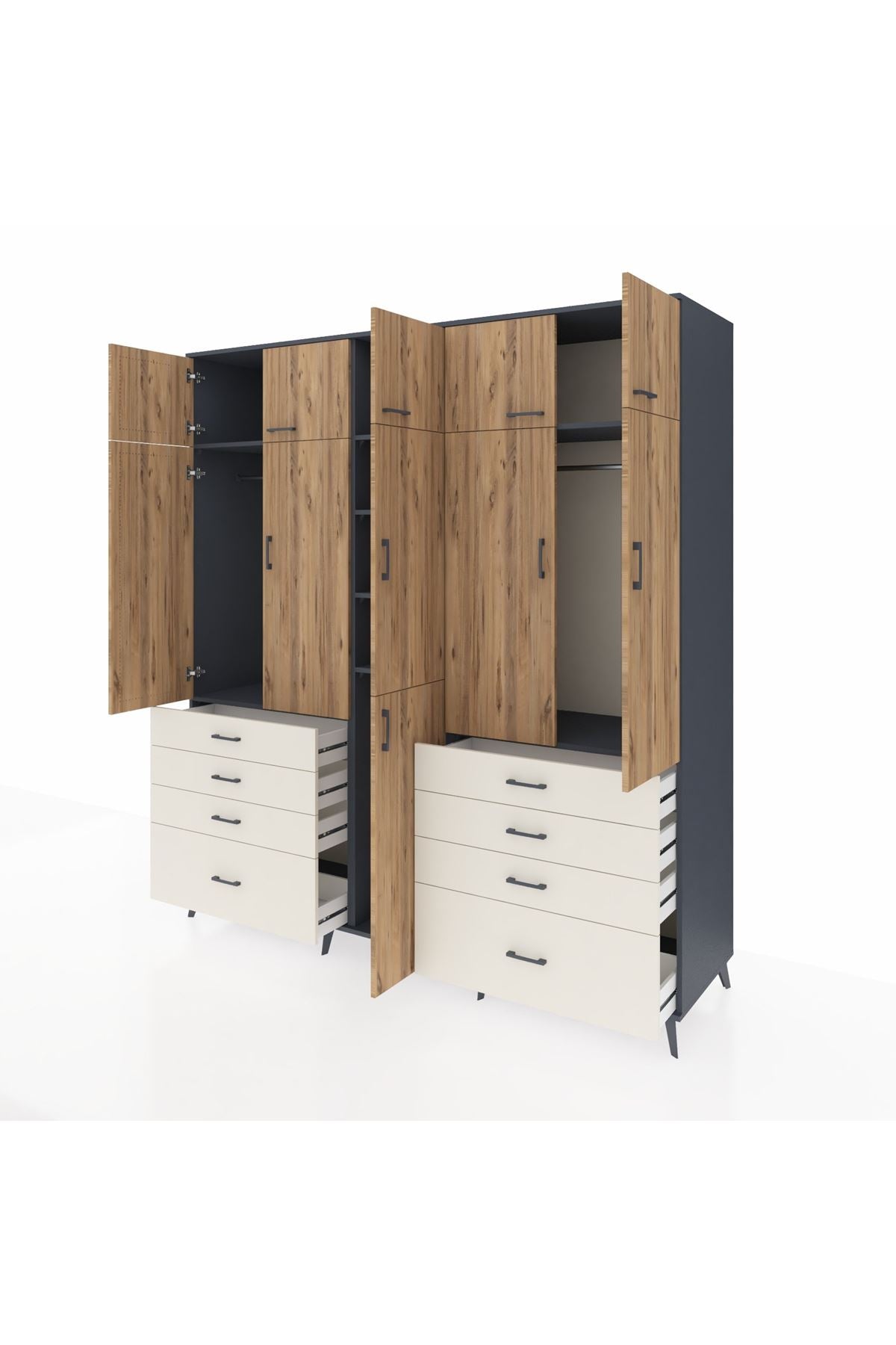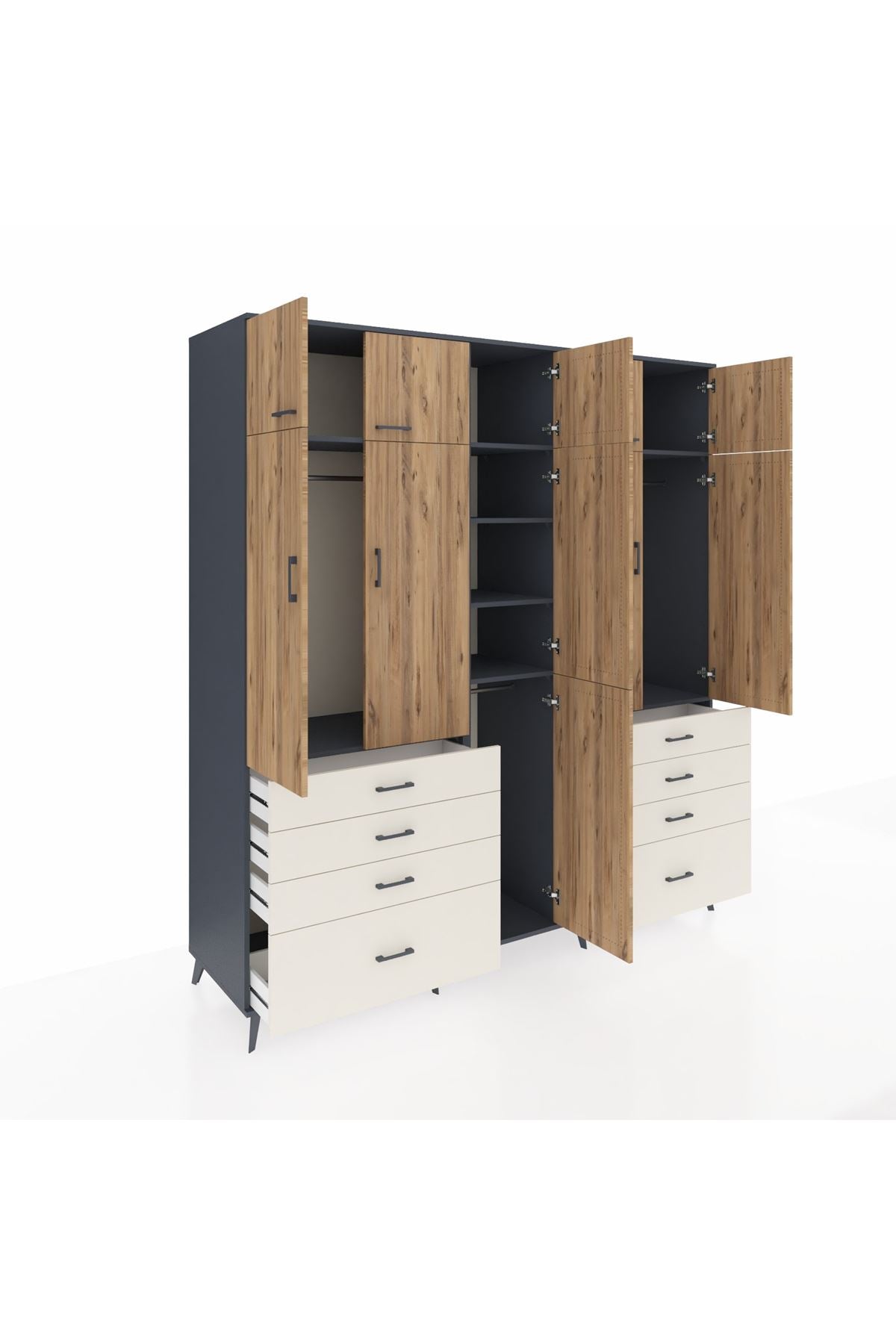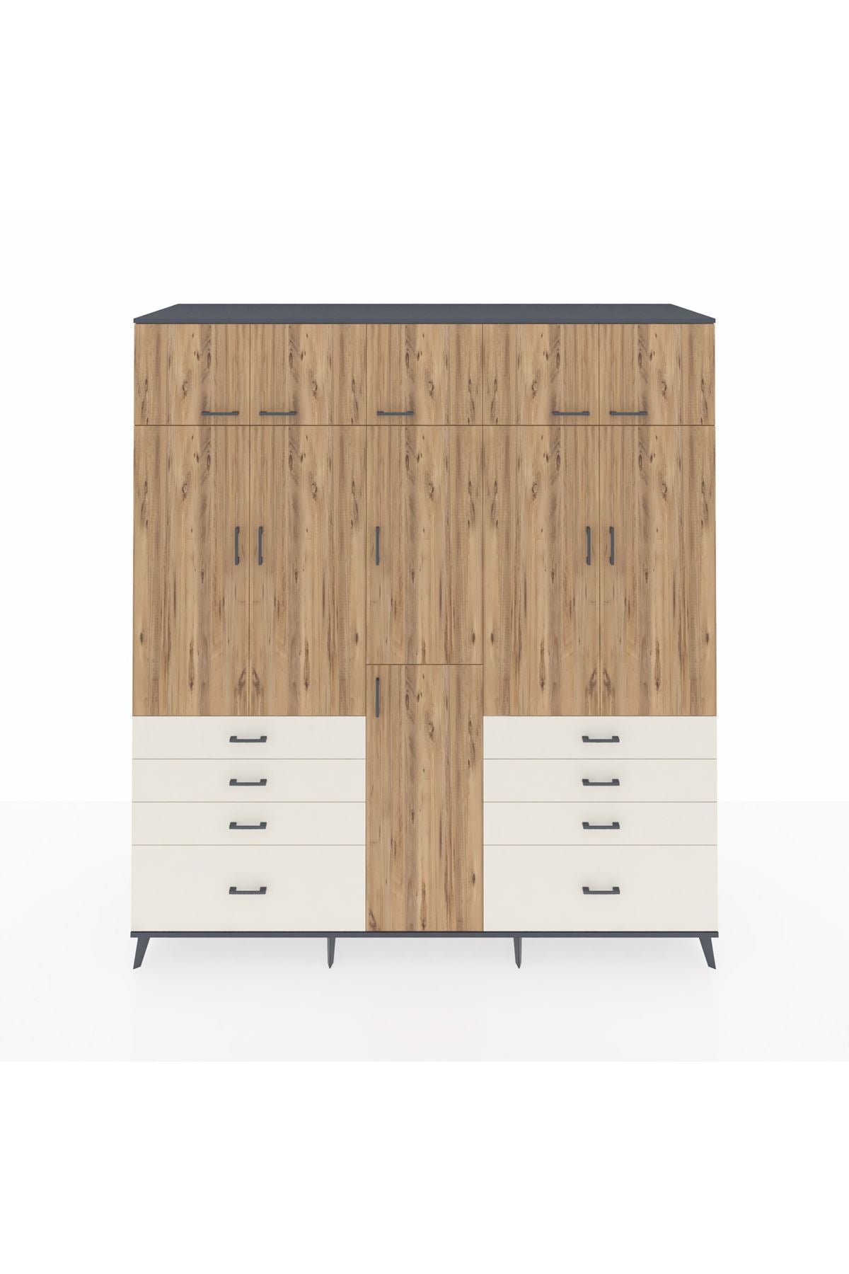 Kronos Dolap 8 Raflı 8 Çekmeceli 3 Askılı 220x59x243 Antrasit-Çam/Aytaşı