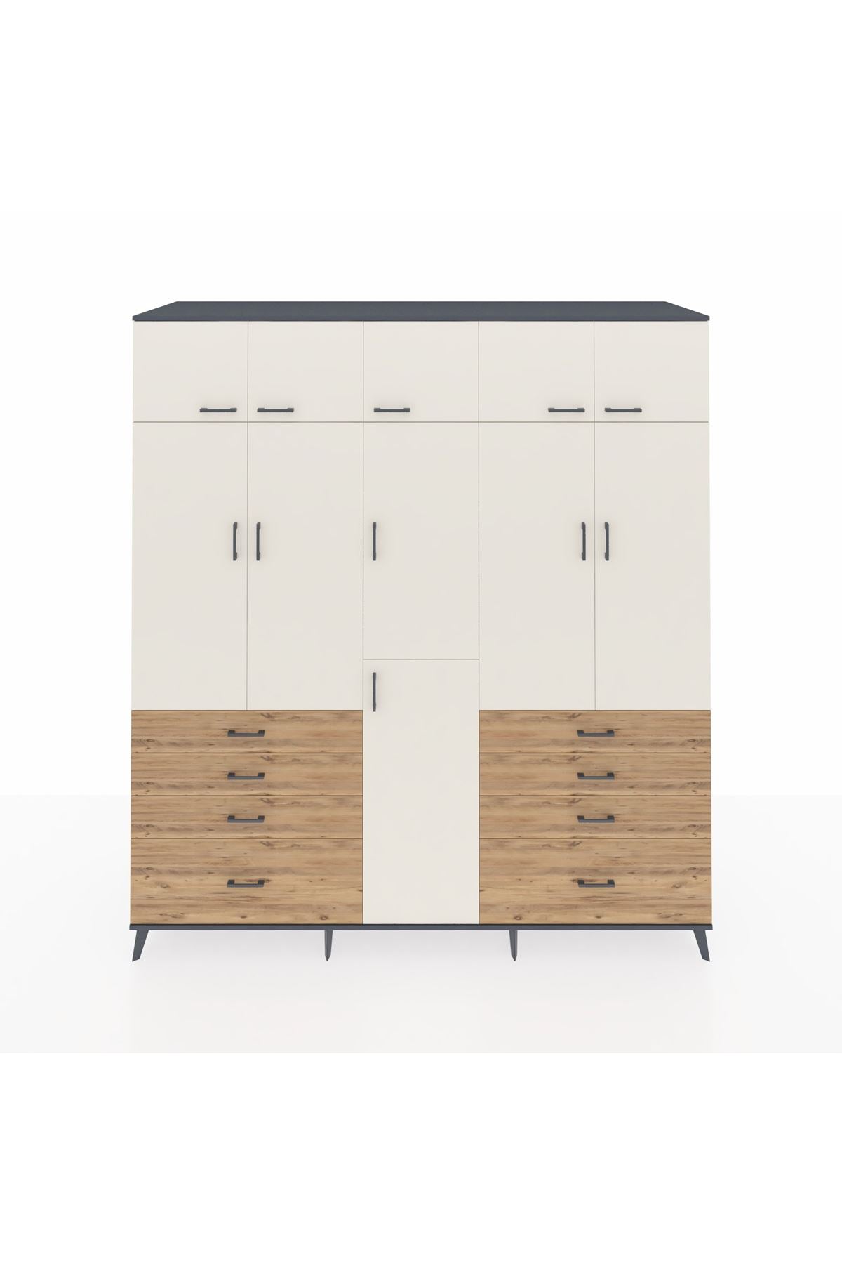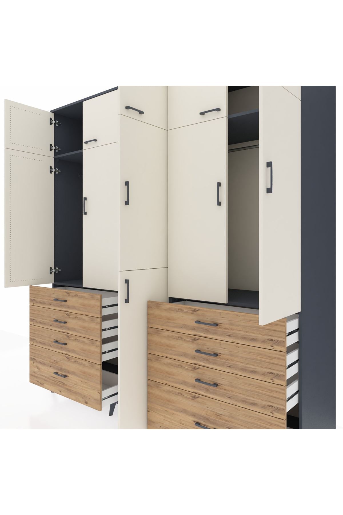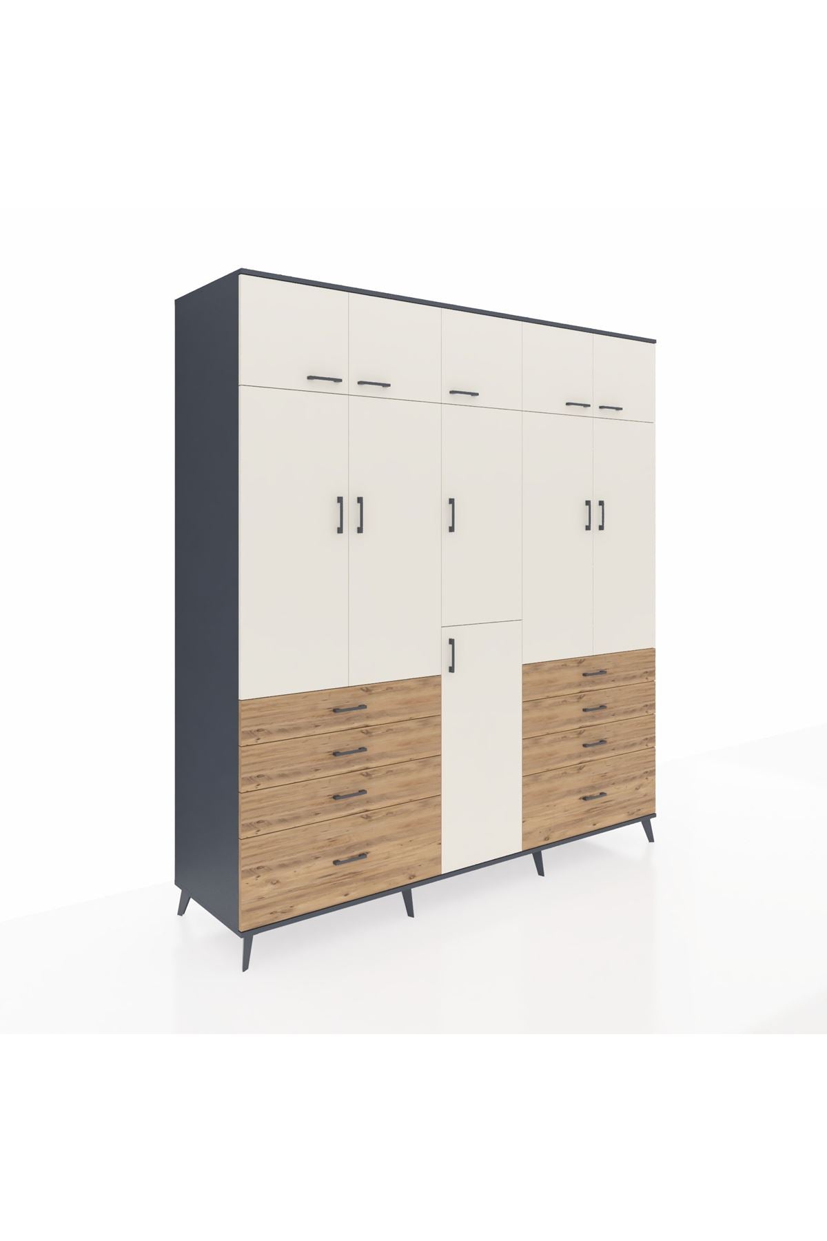 Kronos Dolap 8 Raflı 8 Çekmeceli 3 Askılı 220x59x243 Antrasit-Aytaşı/Çam