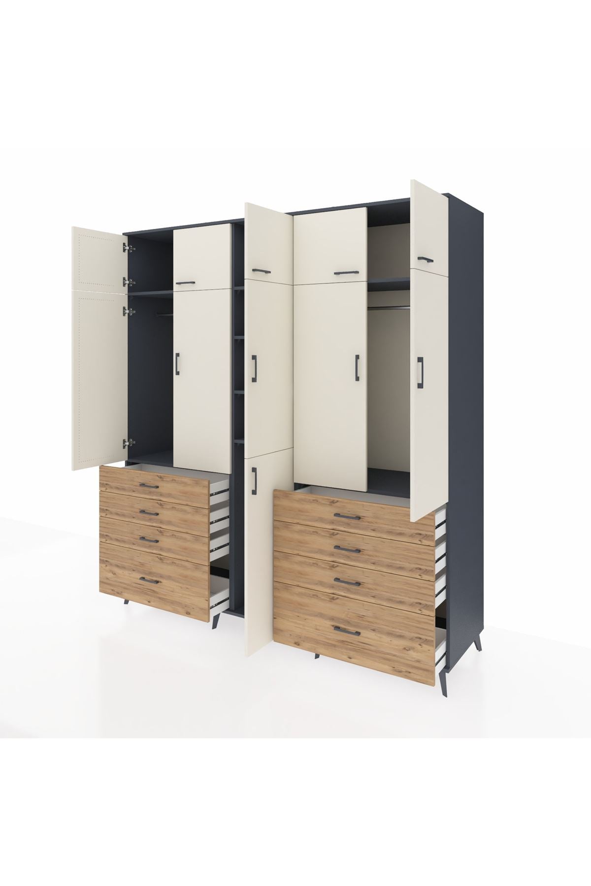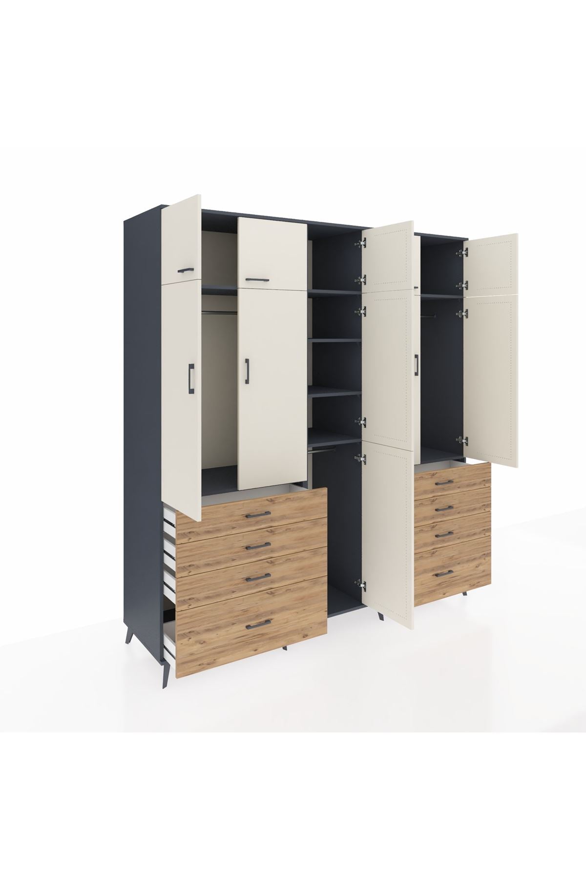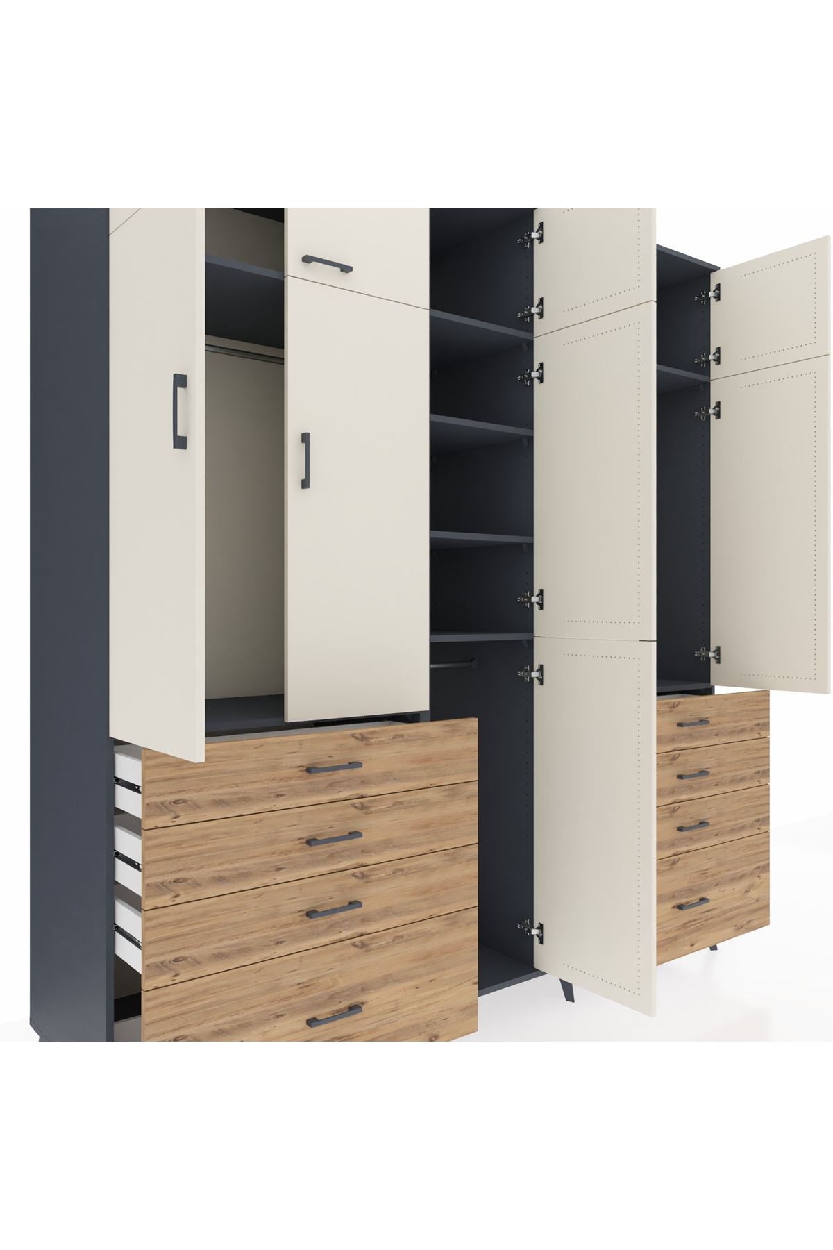 Kronos Dolap 8 Raflı 8 Çekmeceli 3 Askılı 220x59x243 Antrasit-Aytaşı/Çam