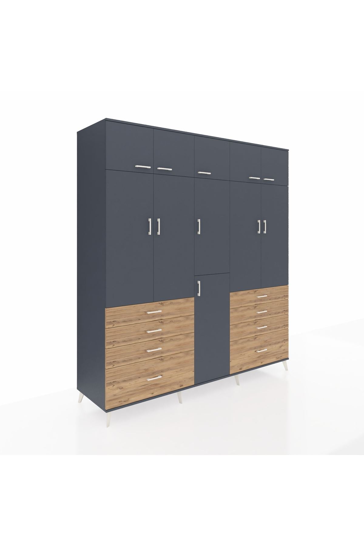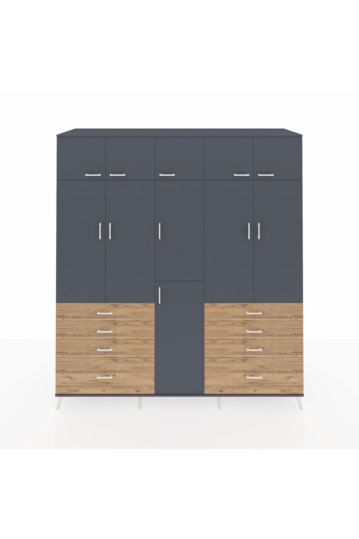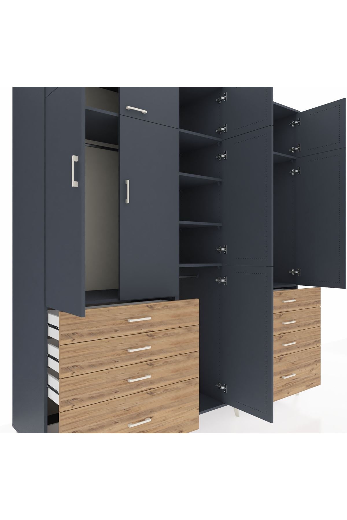 Kronos Dolap 8 Raflı 8 Çekmeceli 3 Askılı 220x59x243 Antrasit-Antrasit/Çam