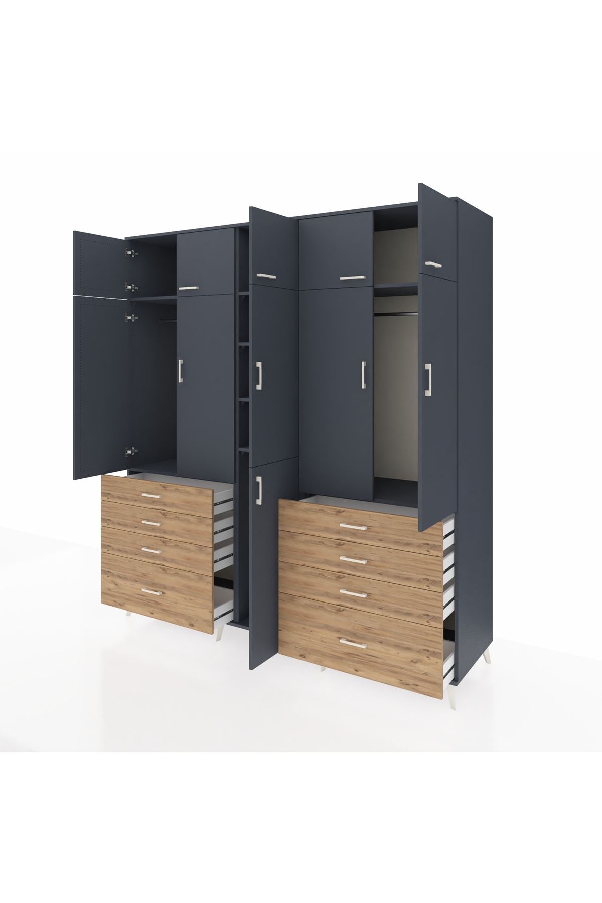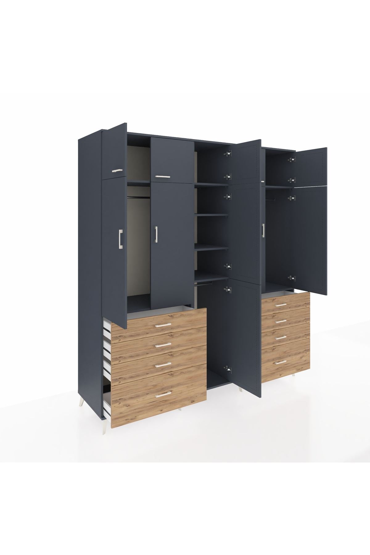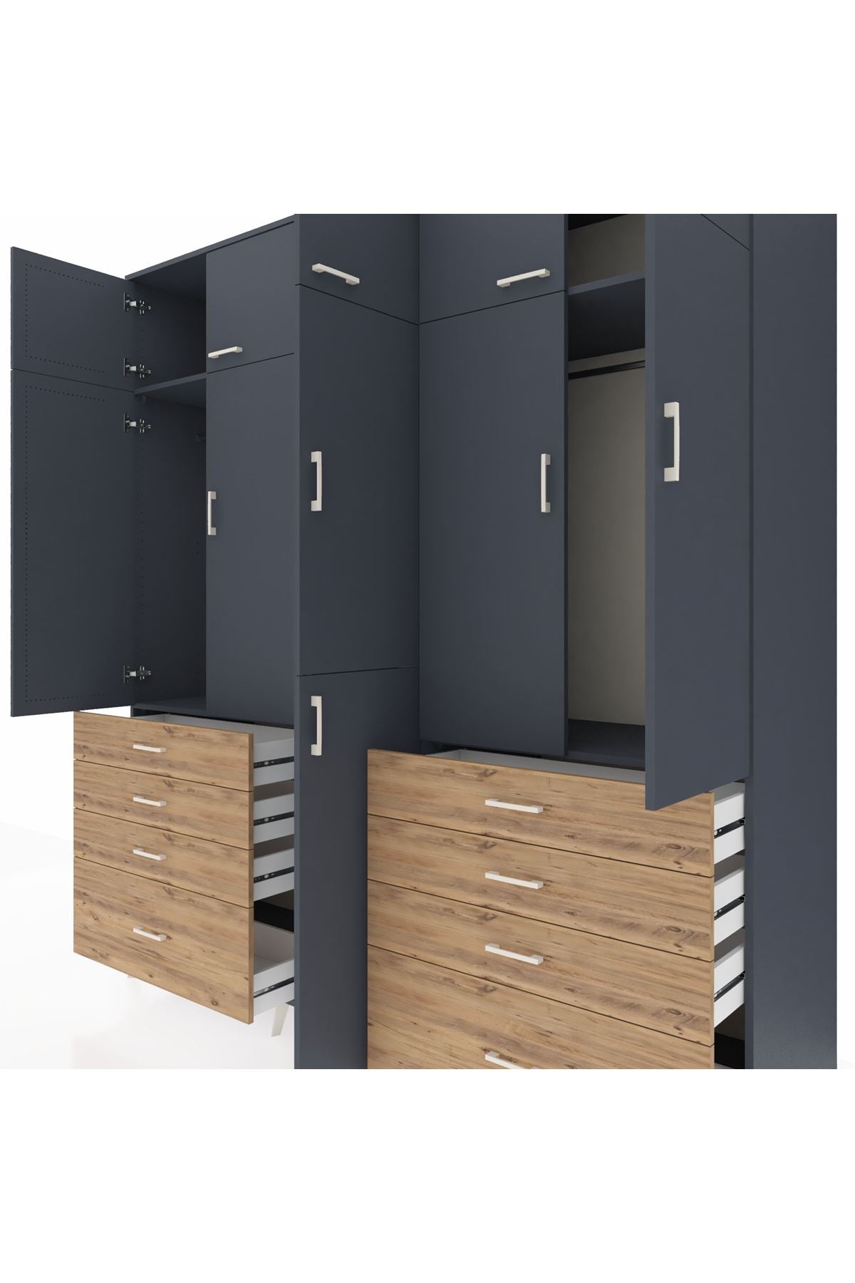 Kronos Dolap 8 Raflı 8 Çekmeceli 3 Askılı 220x59x243 Antrasit-Antrasit/Çam