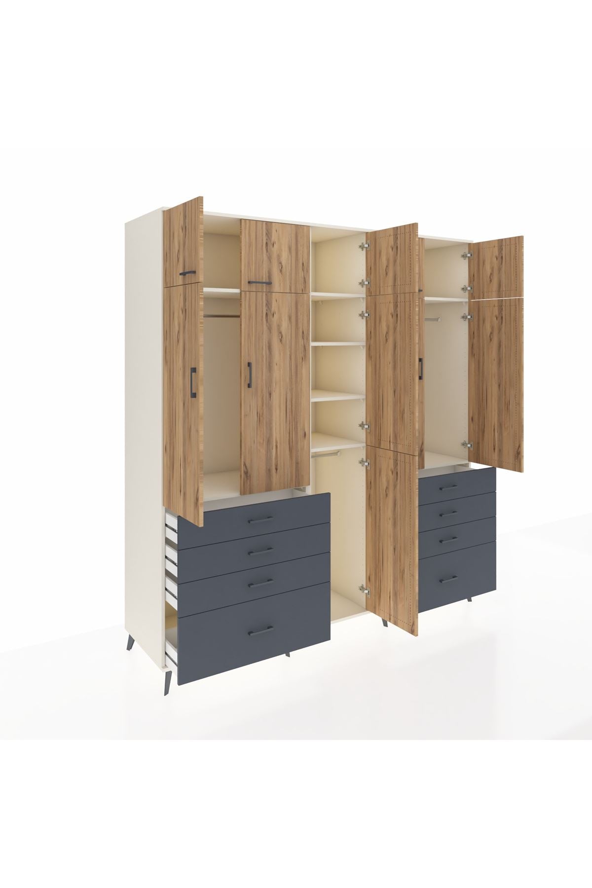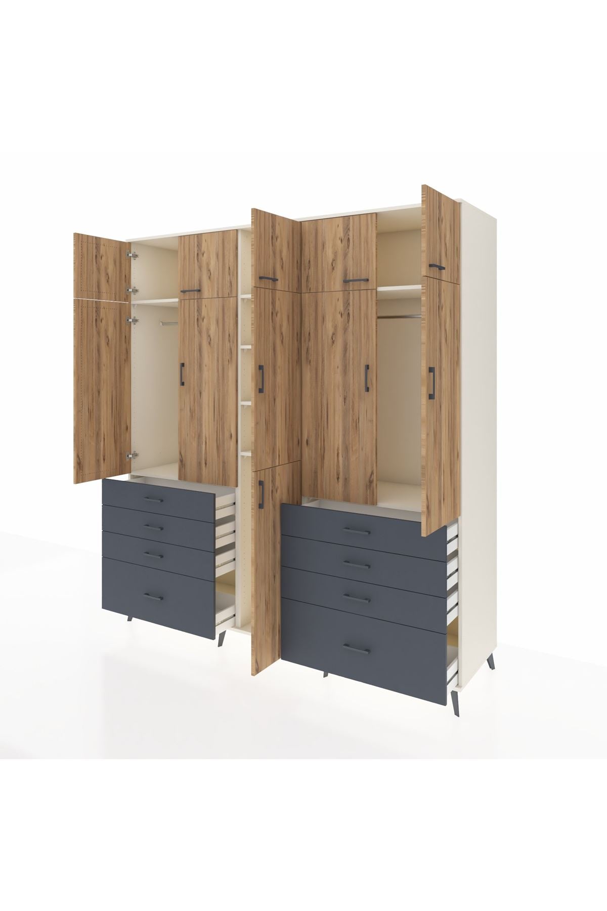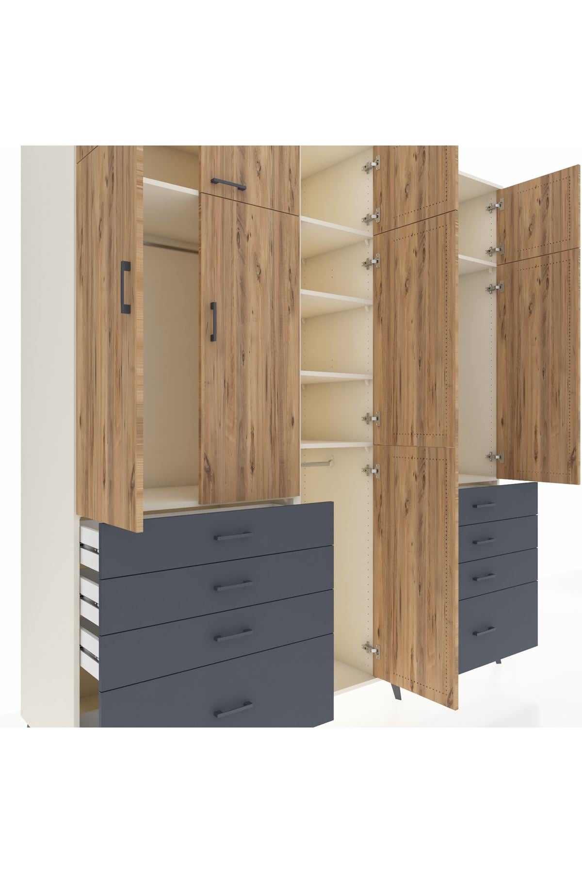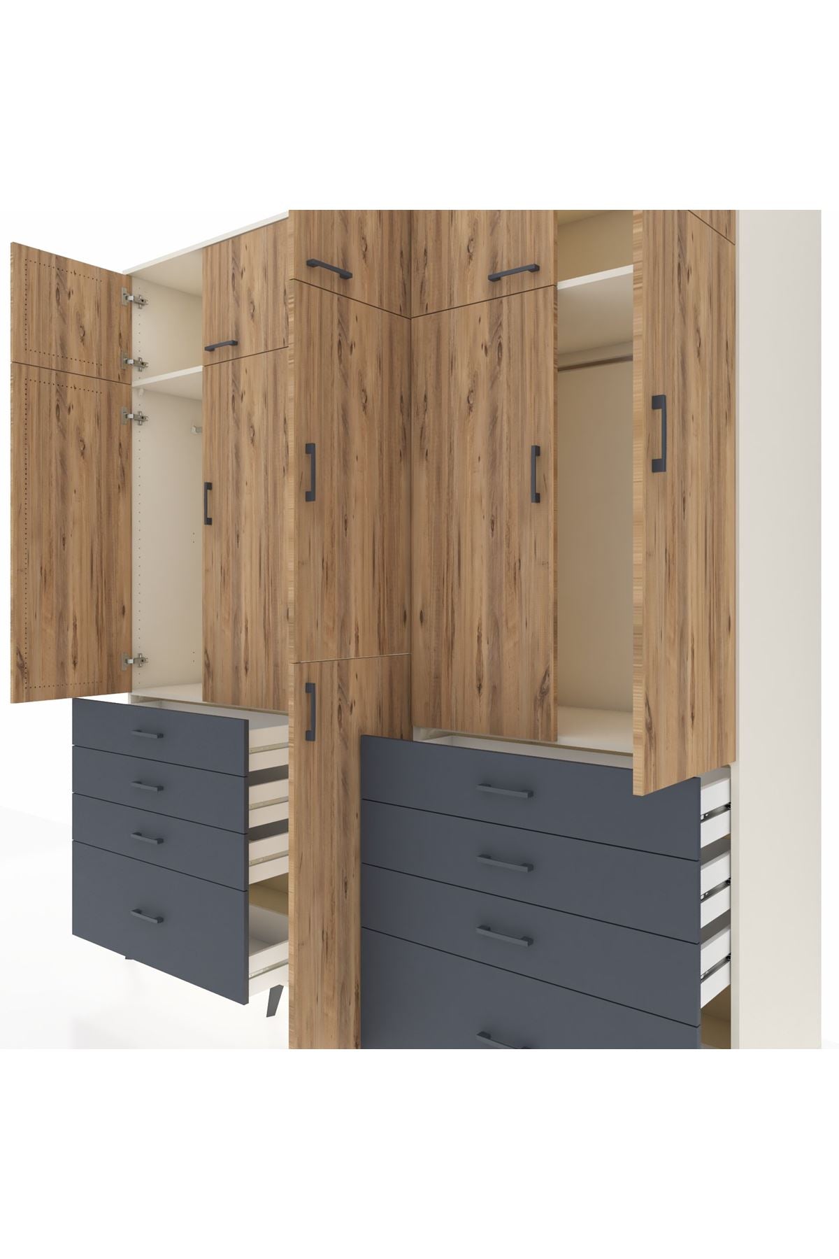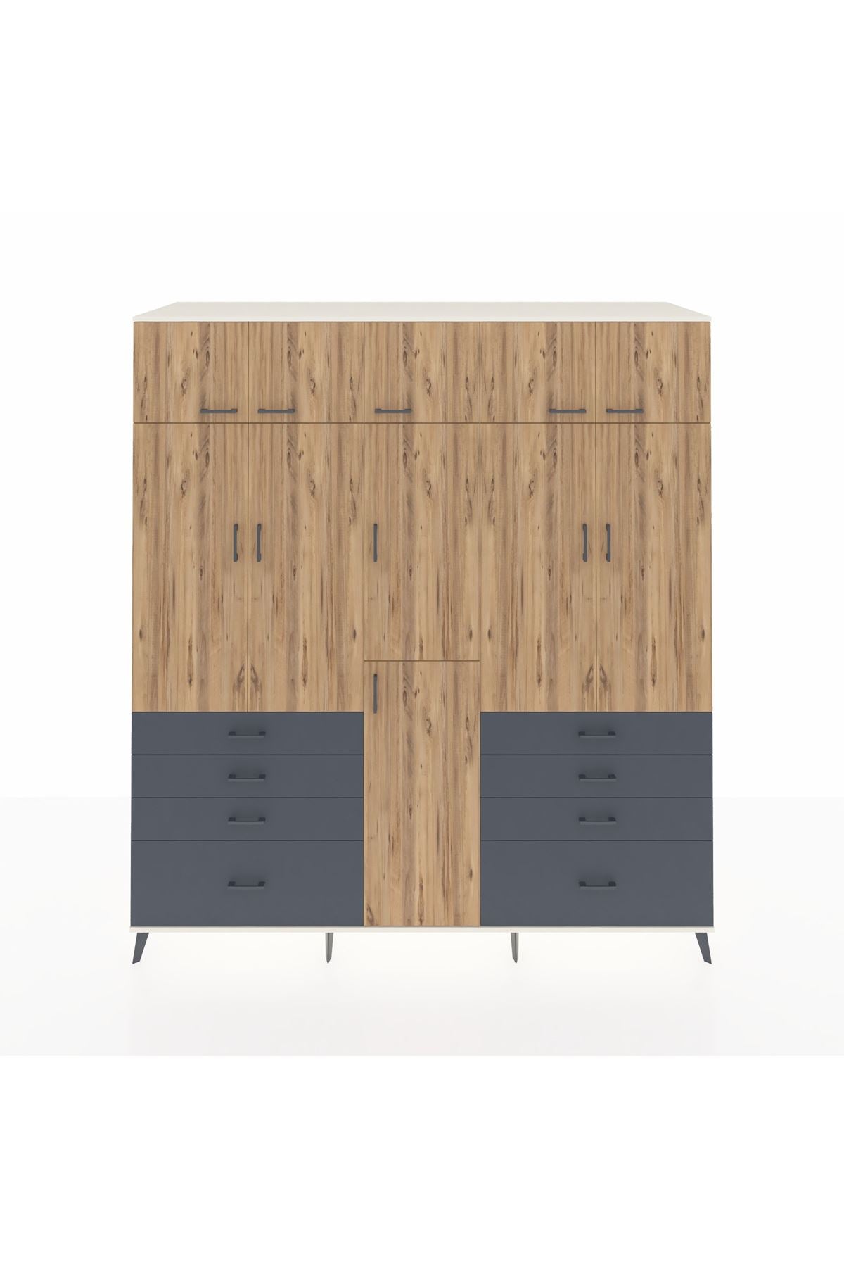 Kronos Dolap 8 Raflı 8 Çekmeceli 3 Askılı 220x59x243 Aytaşı-Çam/Antrasit