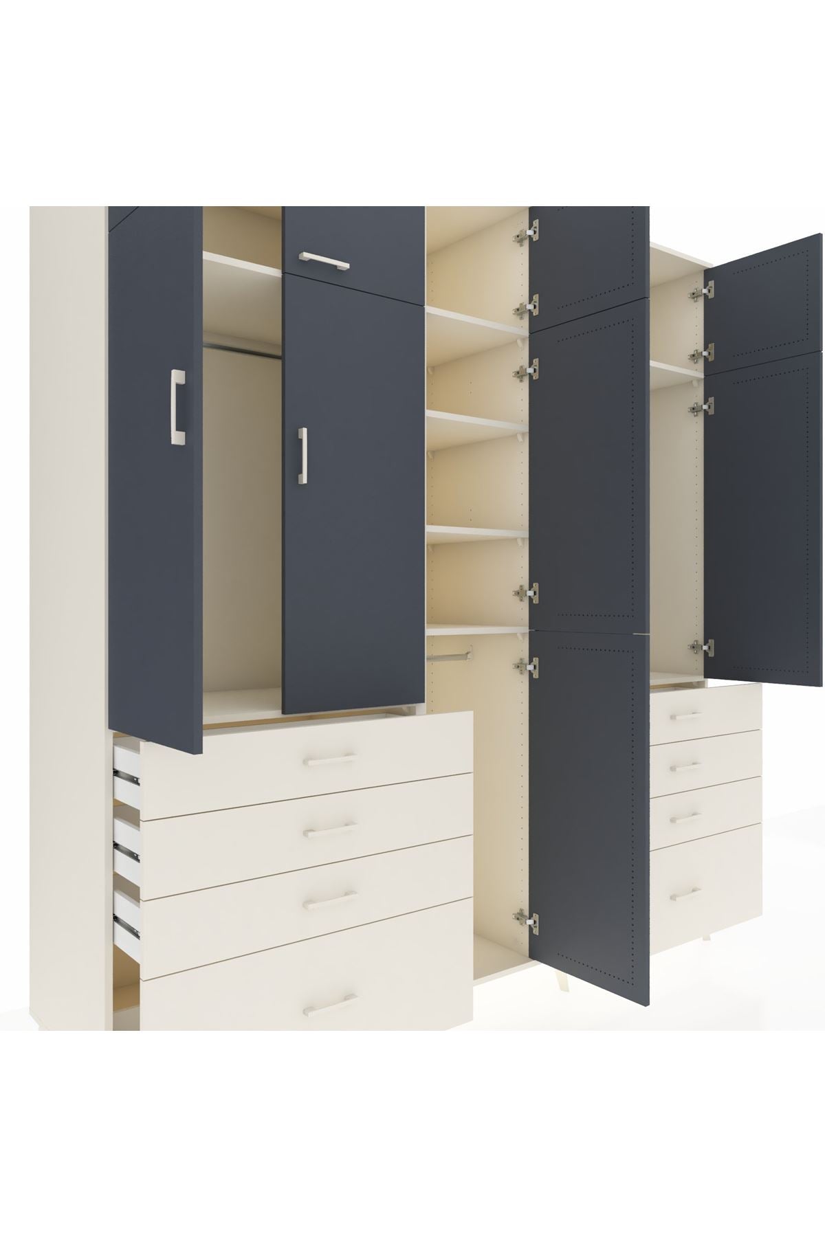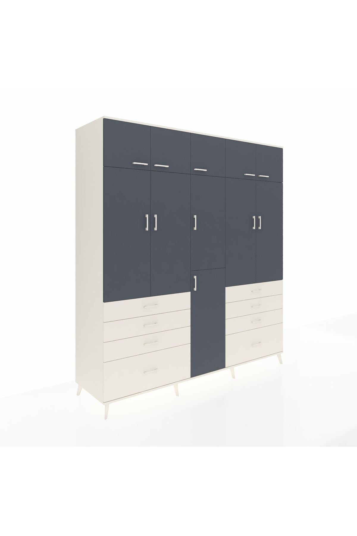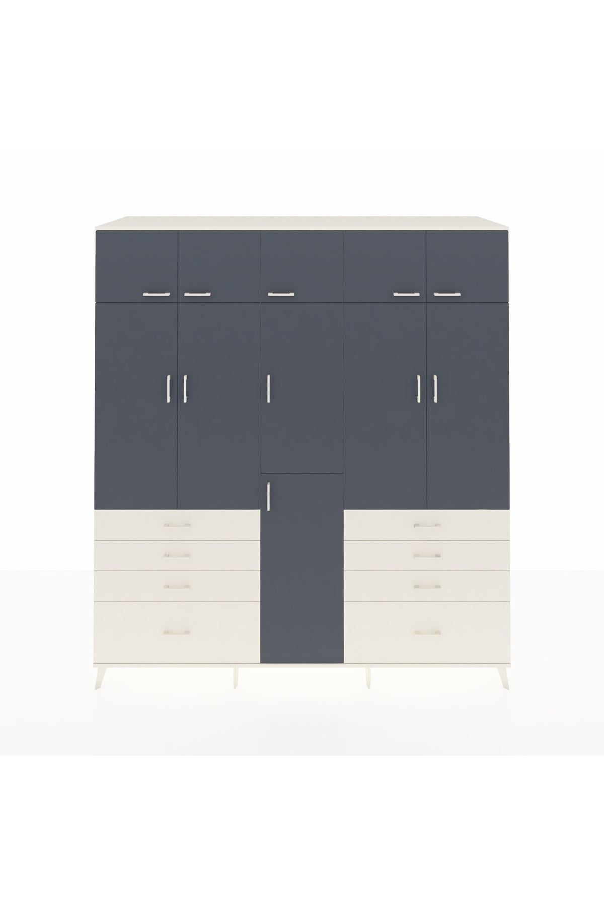 Kronos Dolap 8 Raflı 8 Çekmeceli 3 Askılı 220x59x243 Aytaşı-Antrasit/Aytaşı