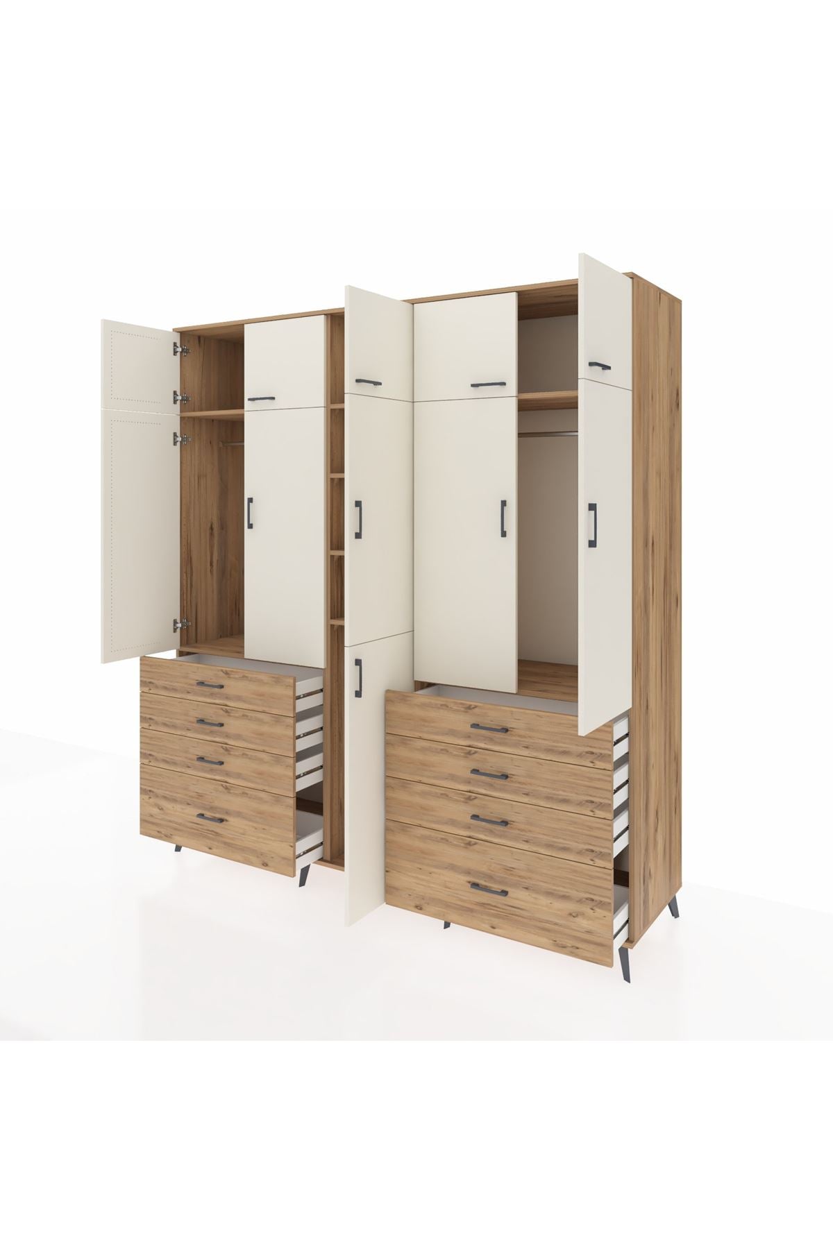 Kronos Dolap 8 Raflı 8 Çekmeceli 3 Askılı 220x59x243 Çam-Aytaşı/Çam