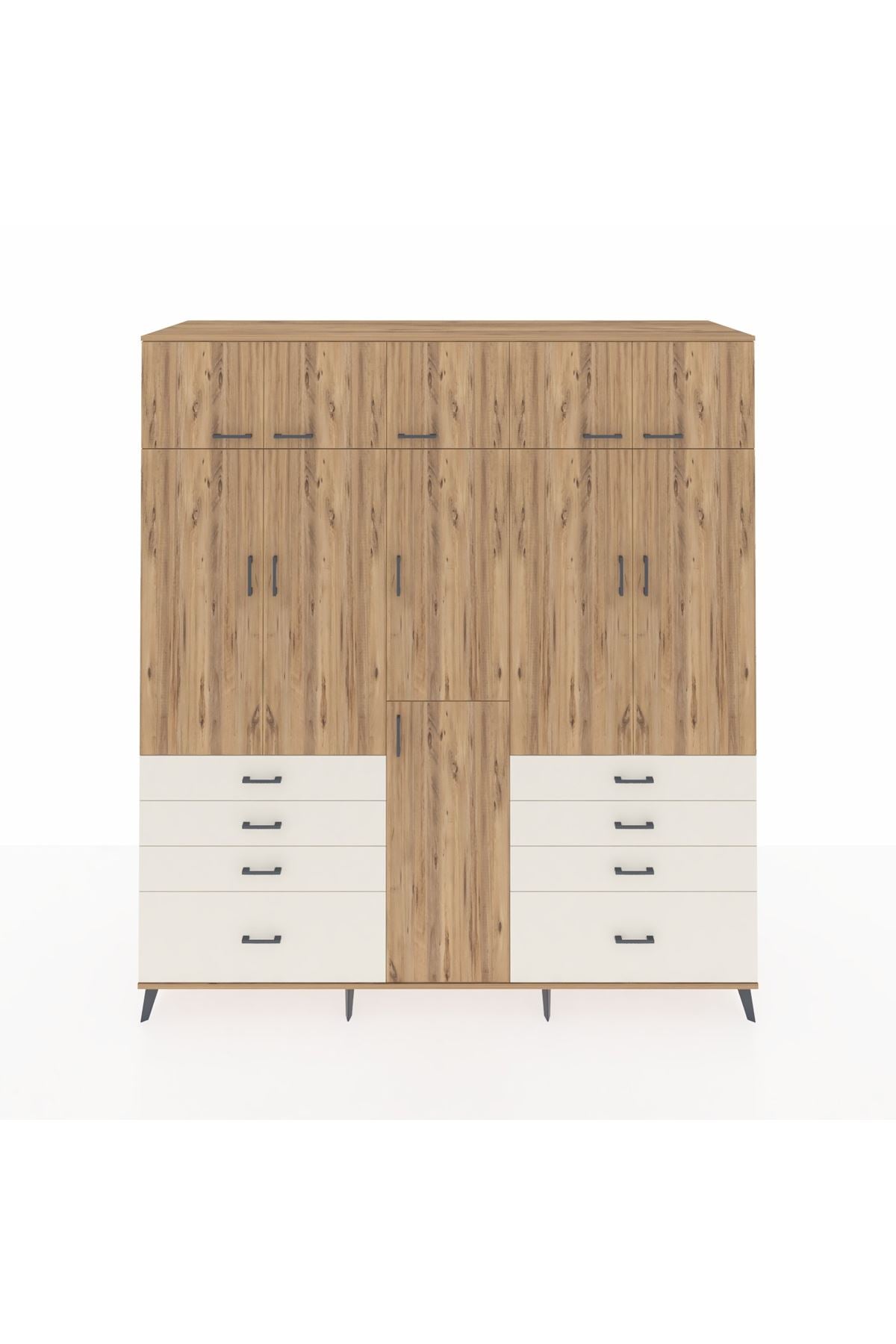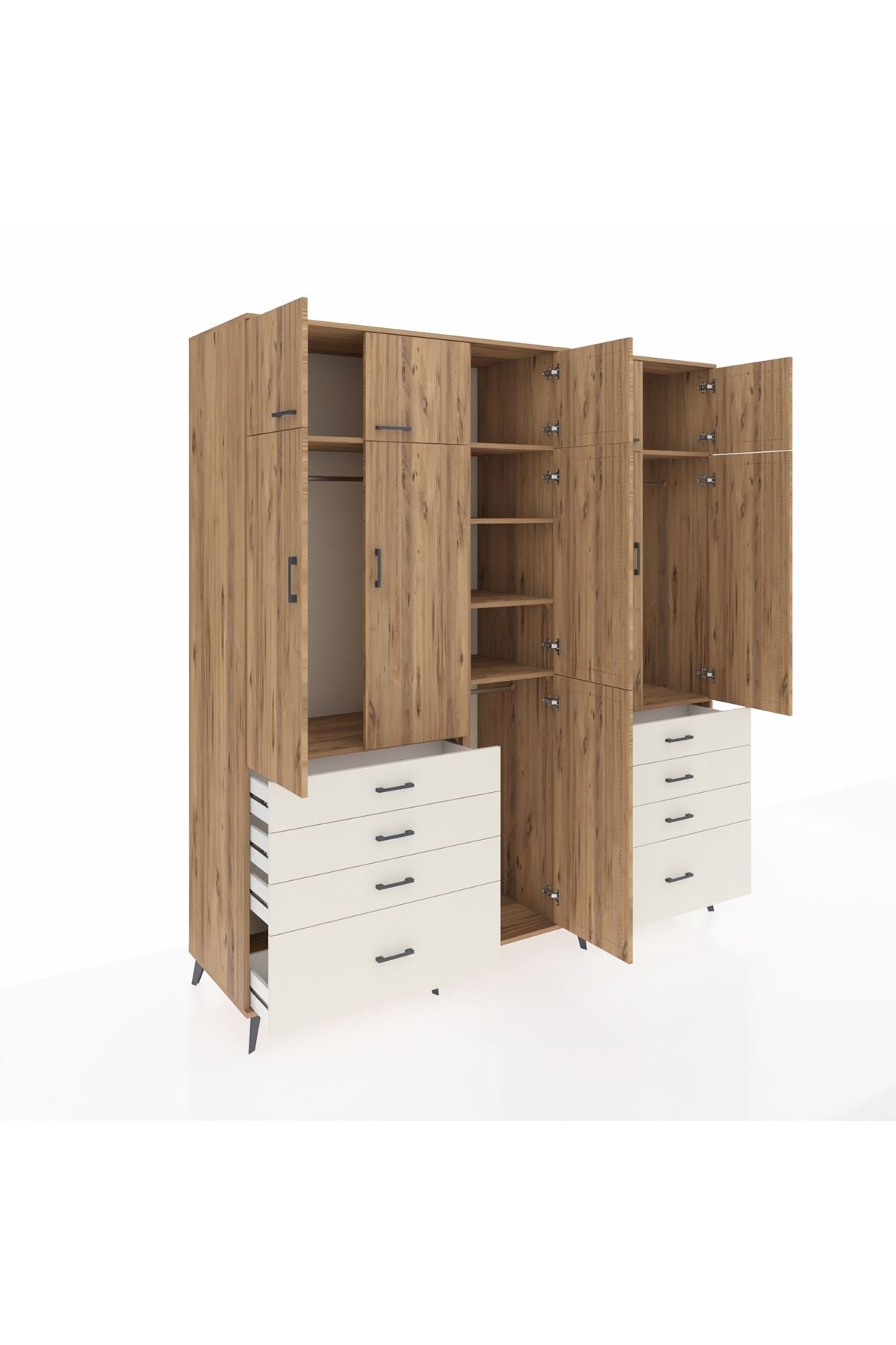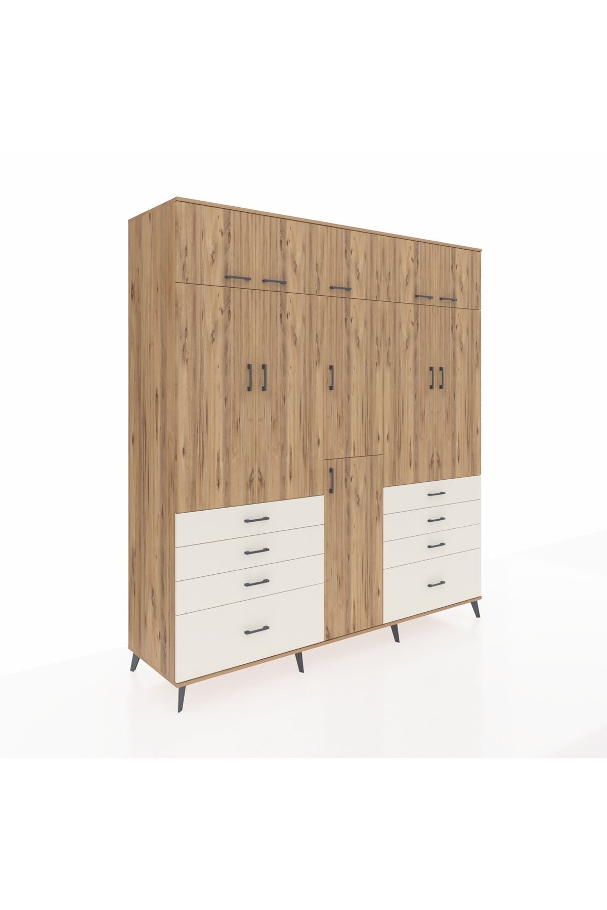Kronos Dolap 8 Raflı 8 Çekmeceli 3 Askılı 220x59x243 Çam-Çam/Aytaşı