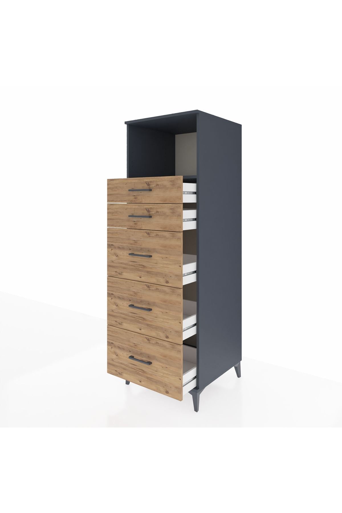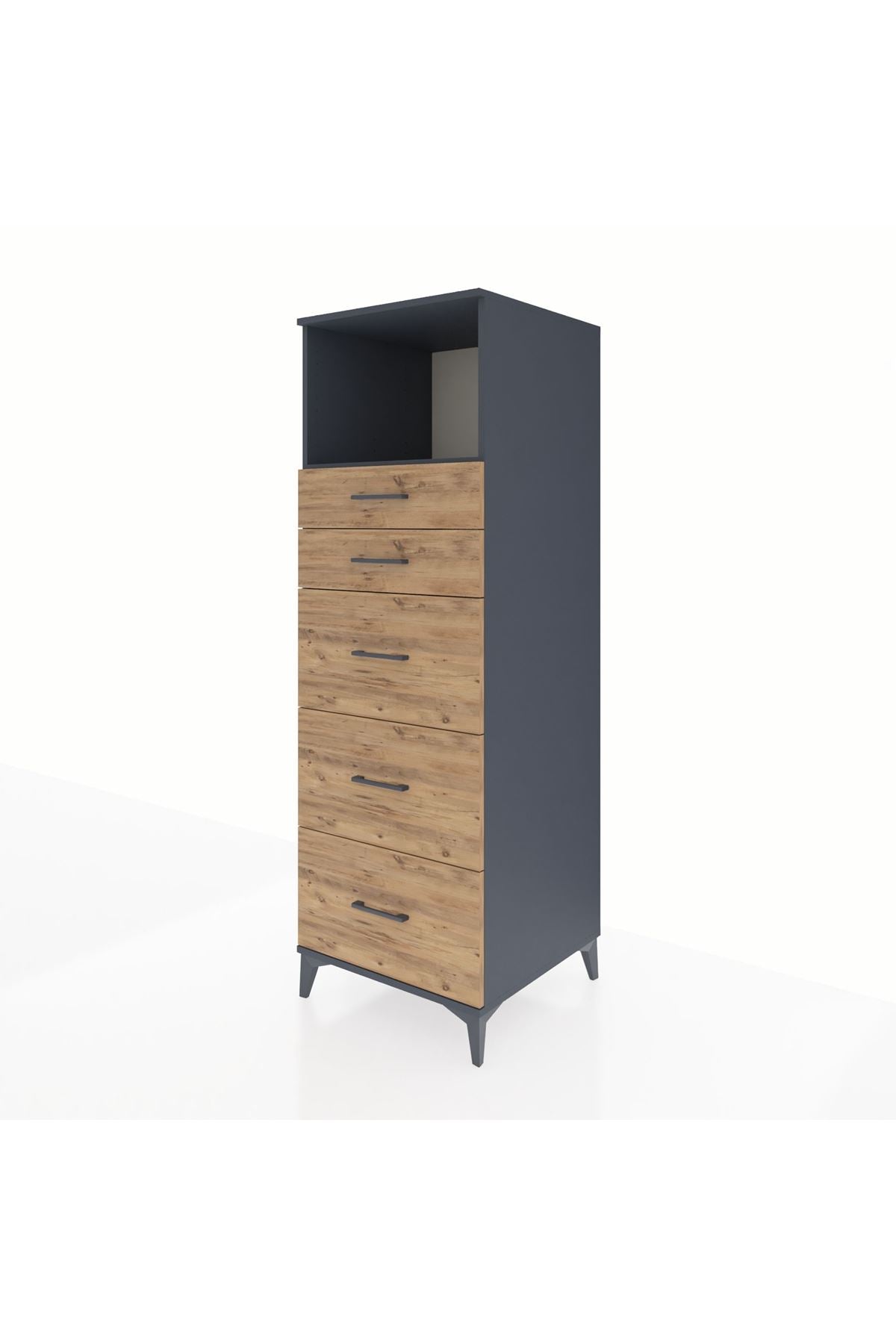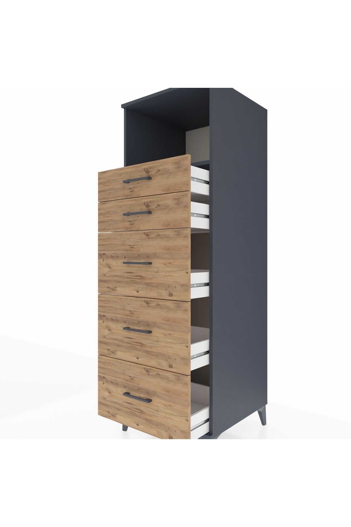 Kronos Dolap Tek Raflı 5 Çekmeceli 60x59x182 Antrasit-Çam