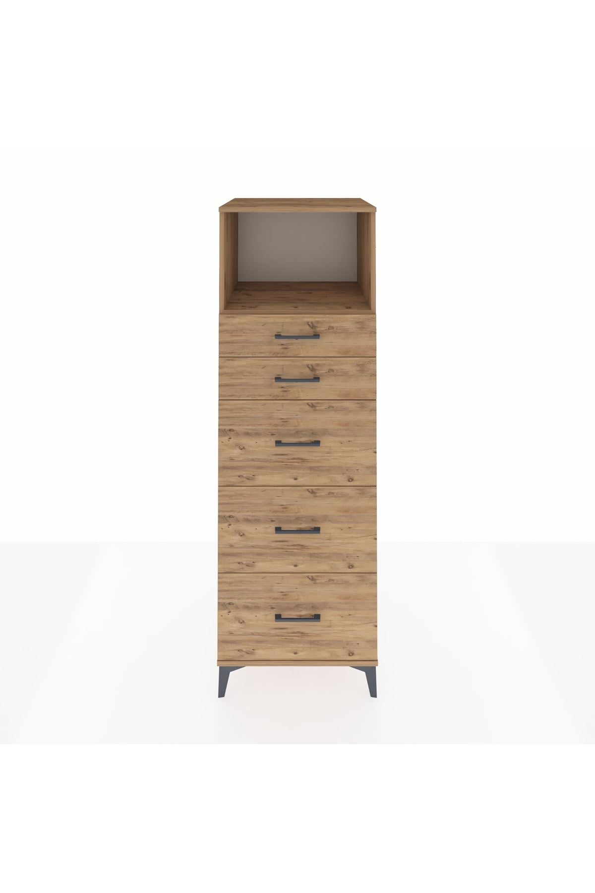 Kronos Dolap Tek Raflı 5 Çekmeceli 60x59x182 Çam-Çam
