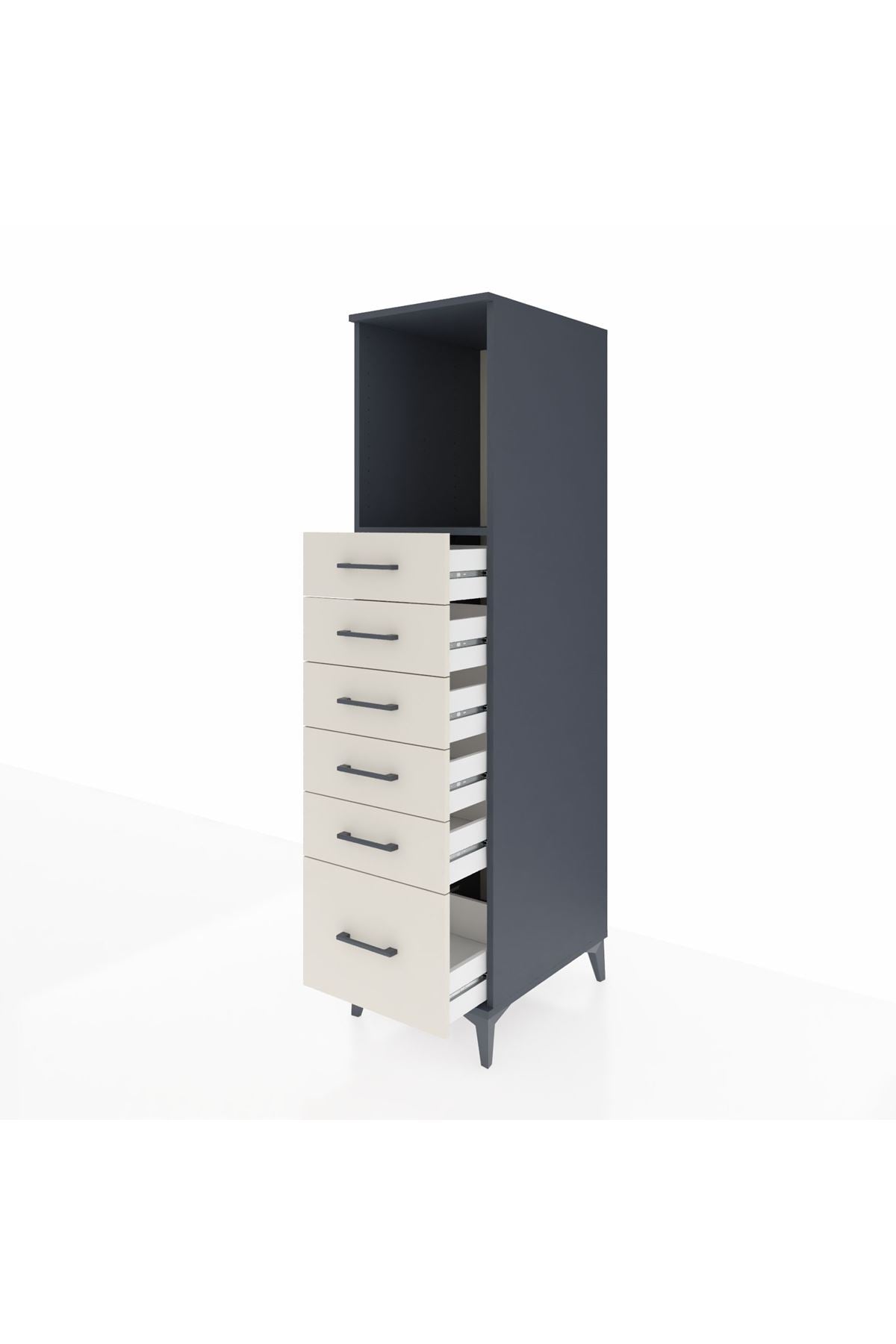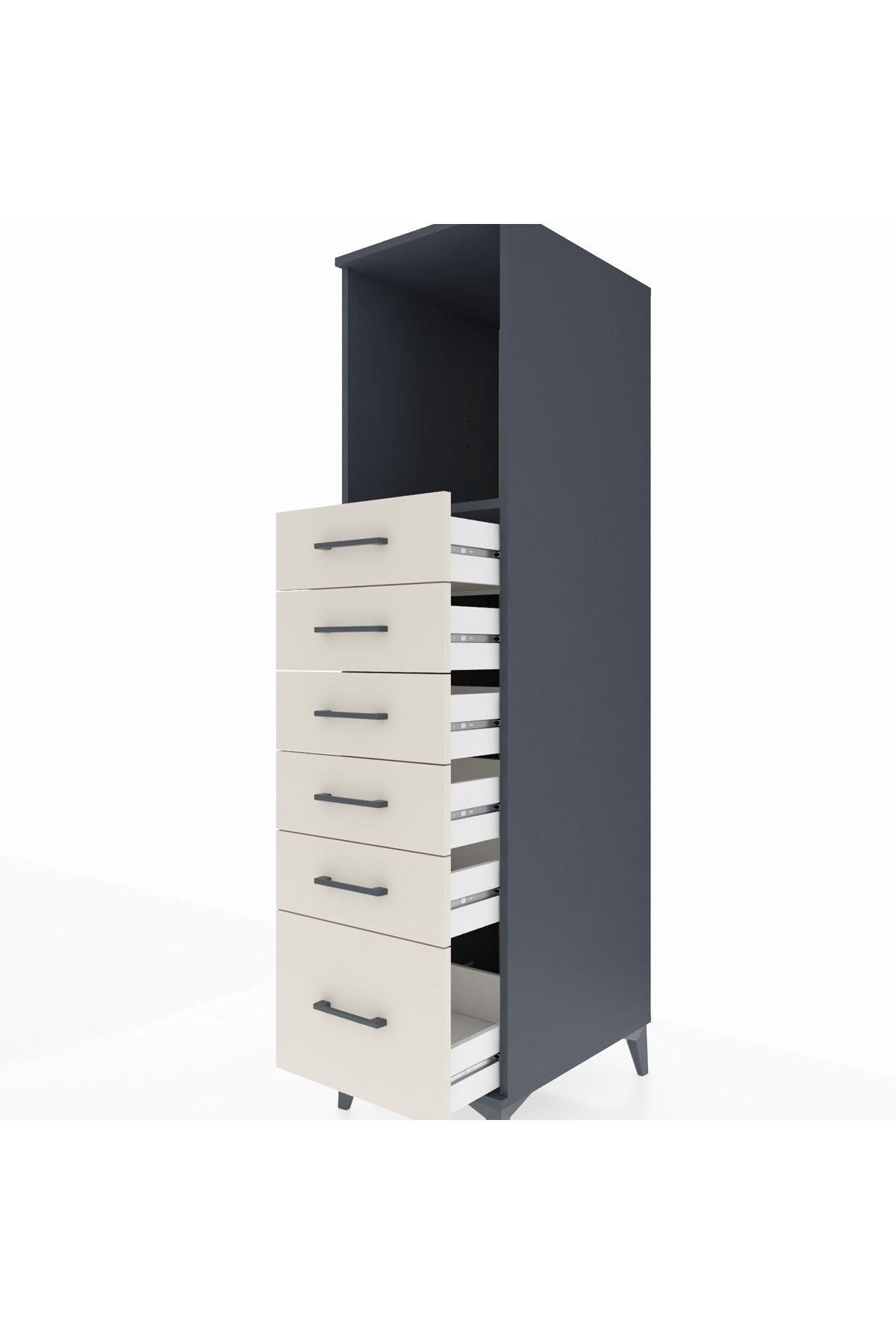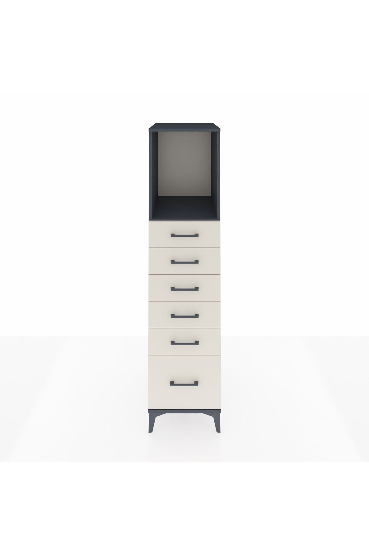 Kronos Dolap Tek Raflı 6 Çekmeceli 44x59x182 Antrasit-Aytaşı