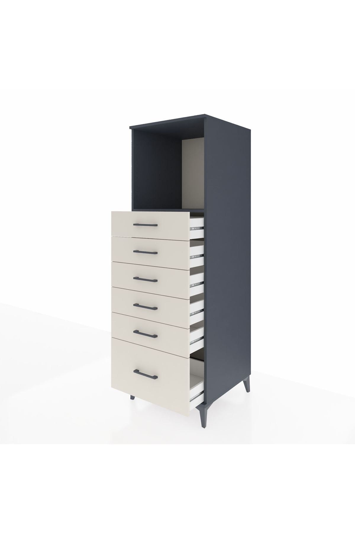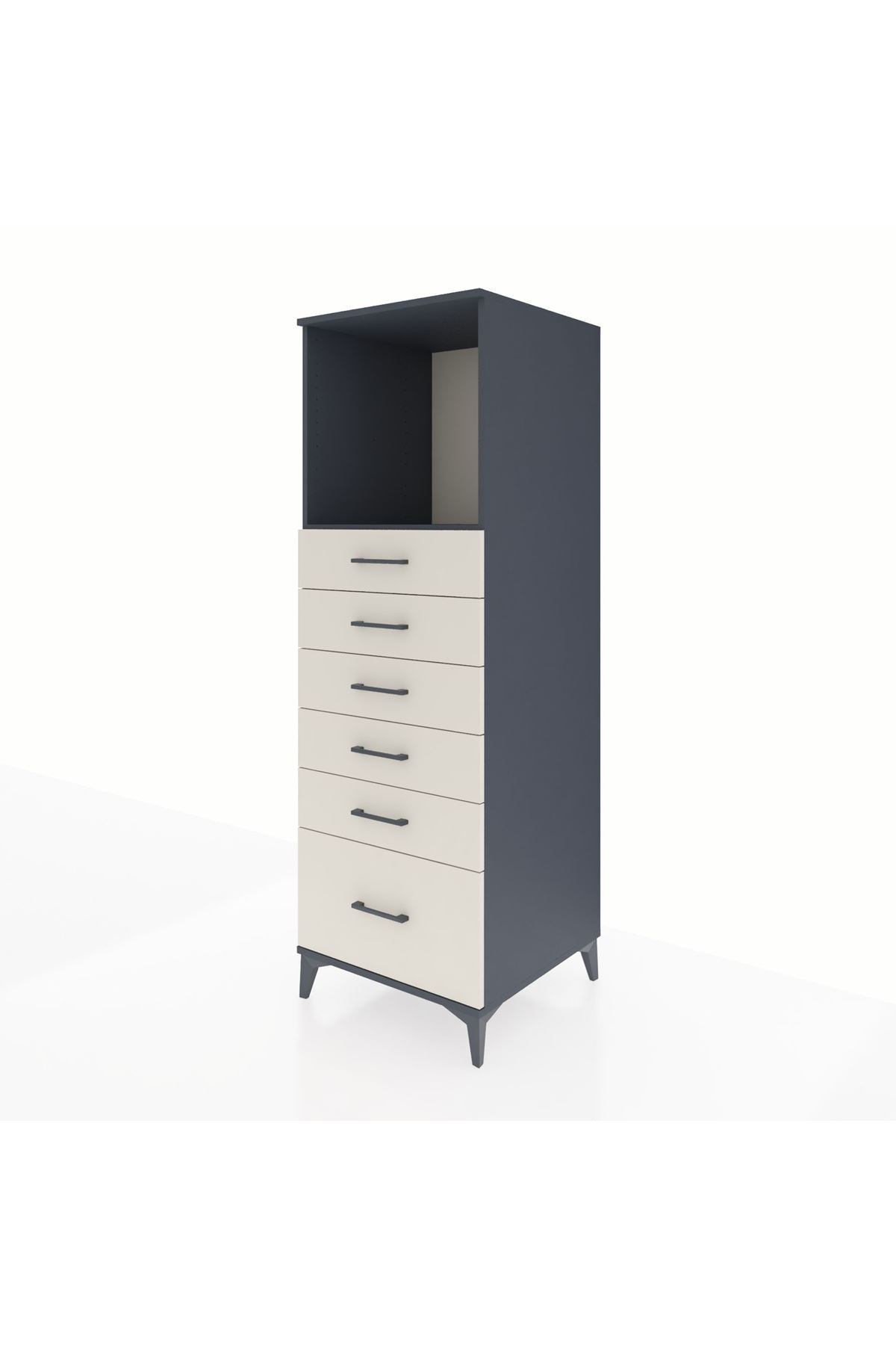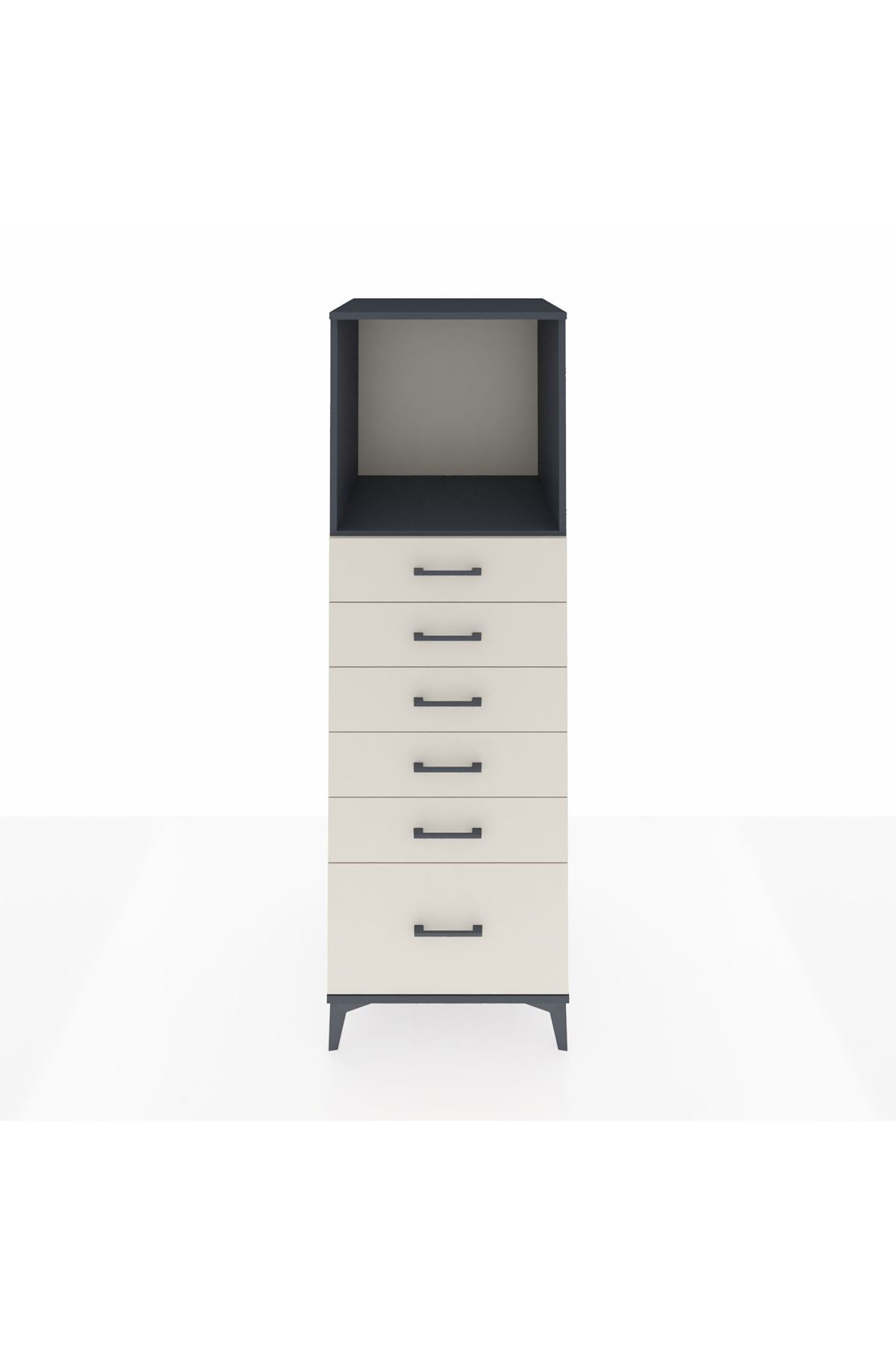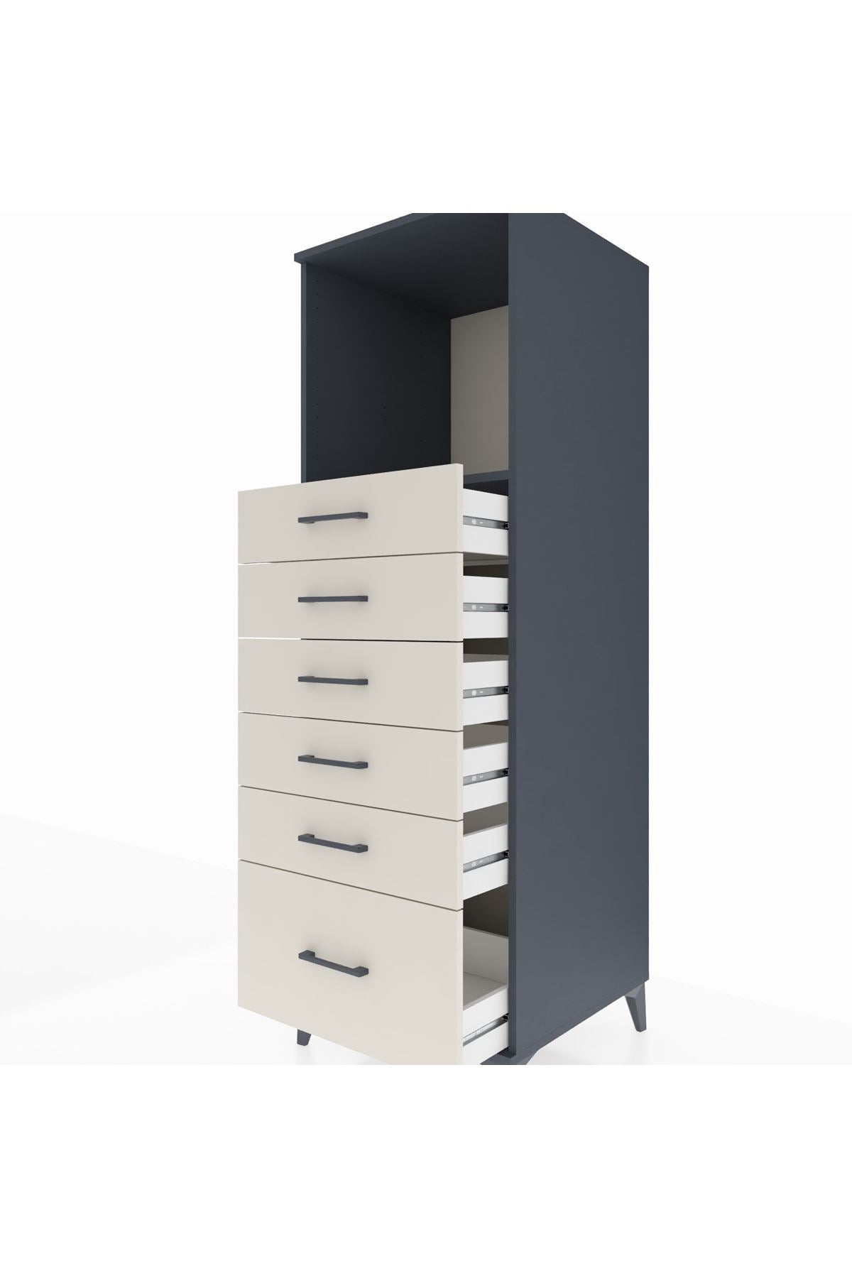 Kronos Dolap Tek Raflı 6 Çekmeceli 60x59x182 Antrasit-Aytaşı
