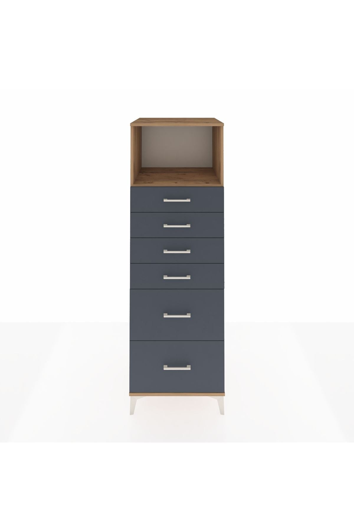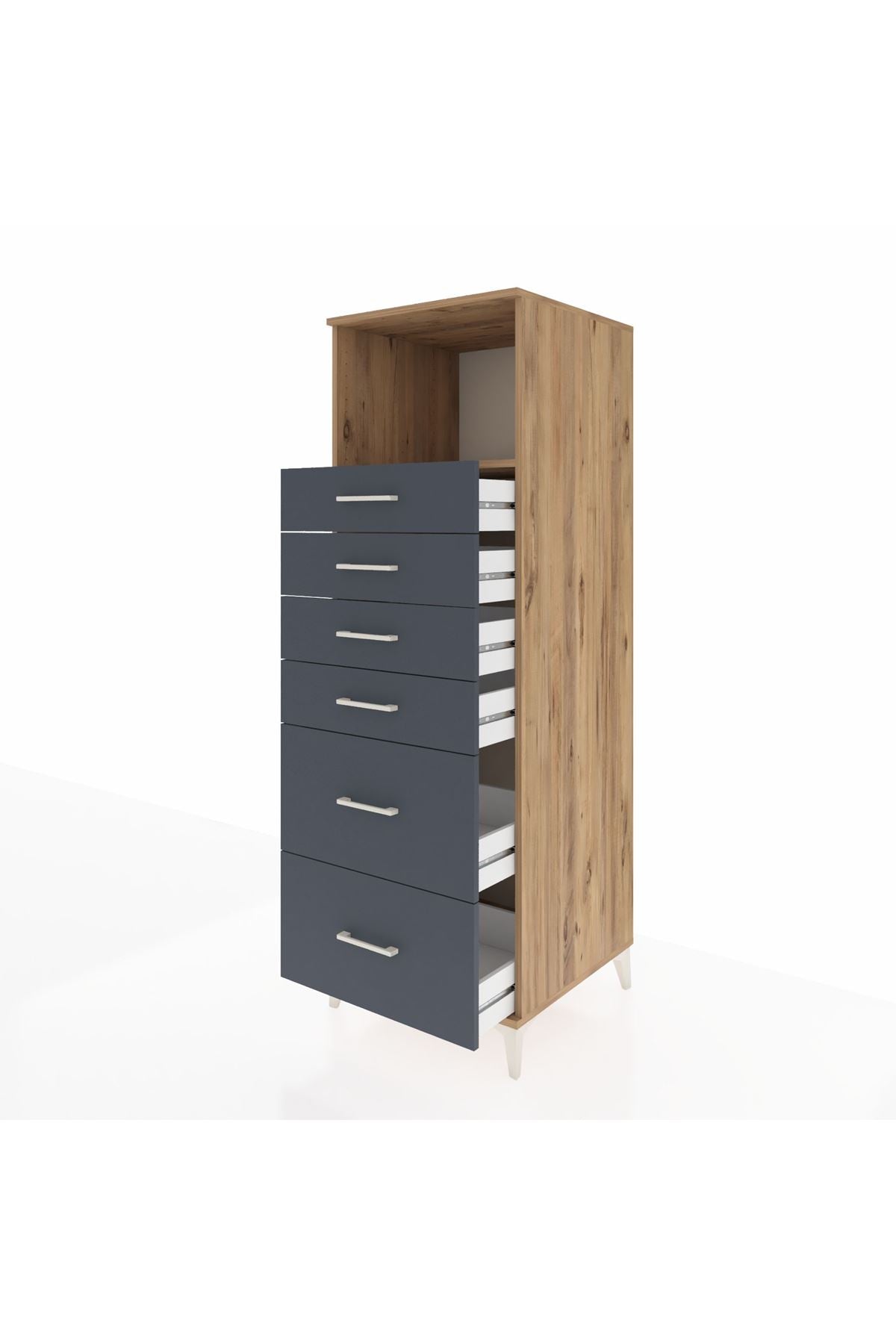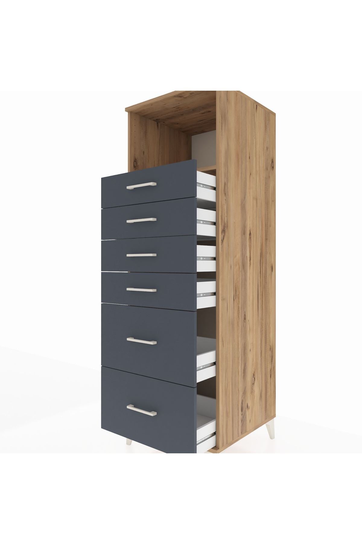 Kronos Dolap Tek Raflı 6 Çekmeceli 60x59x182 Çam-Antrasit