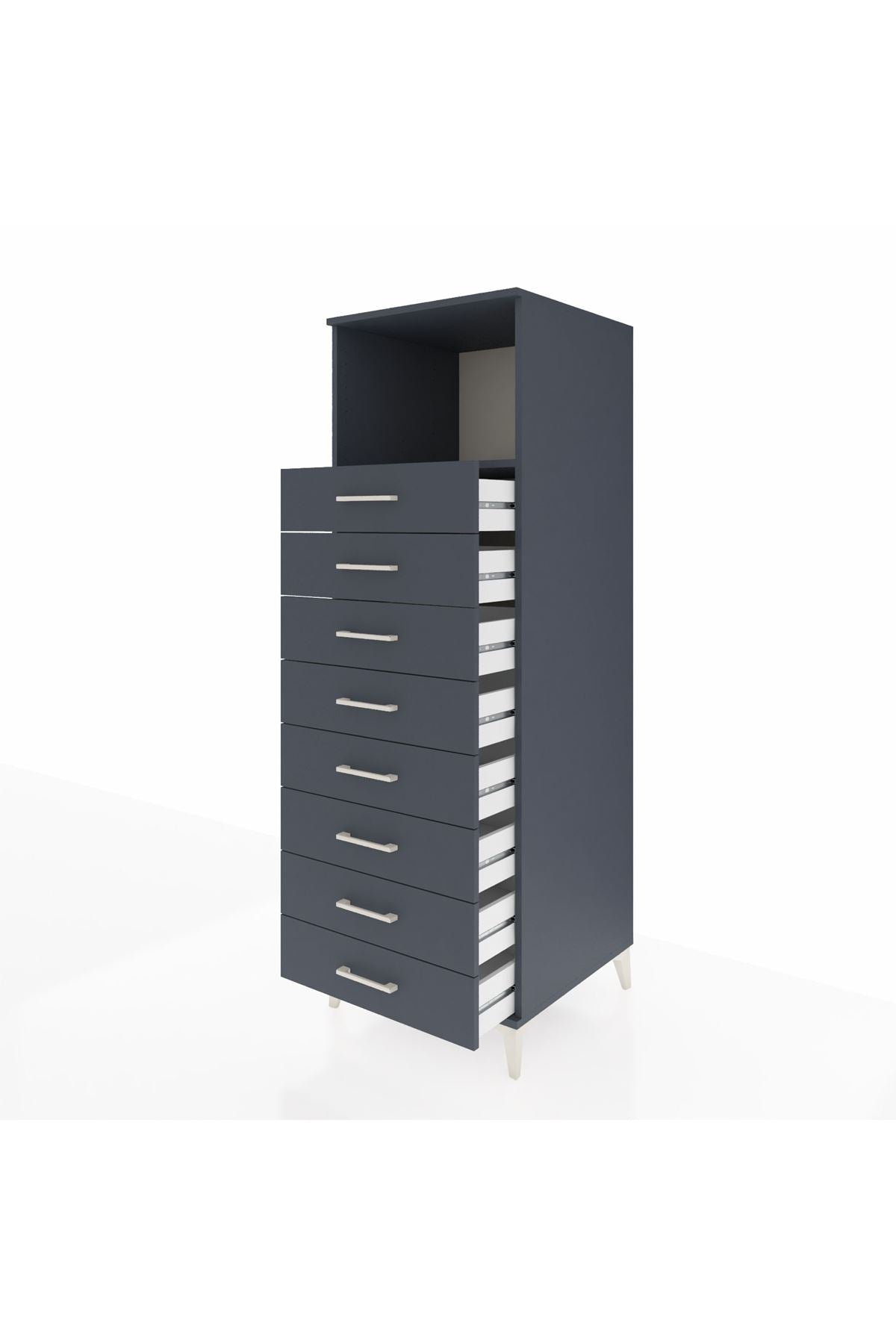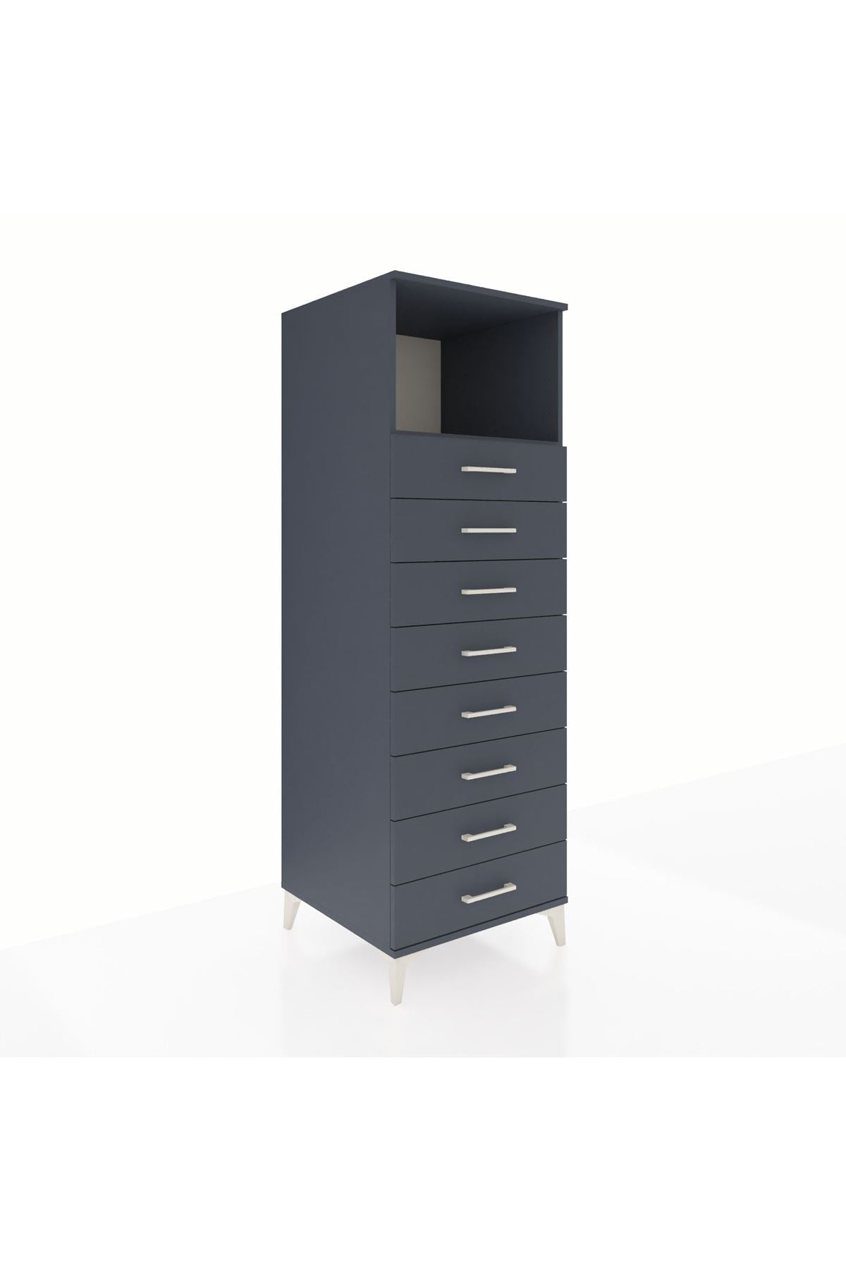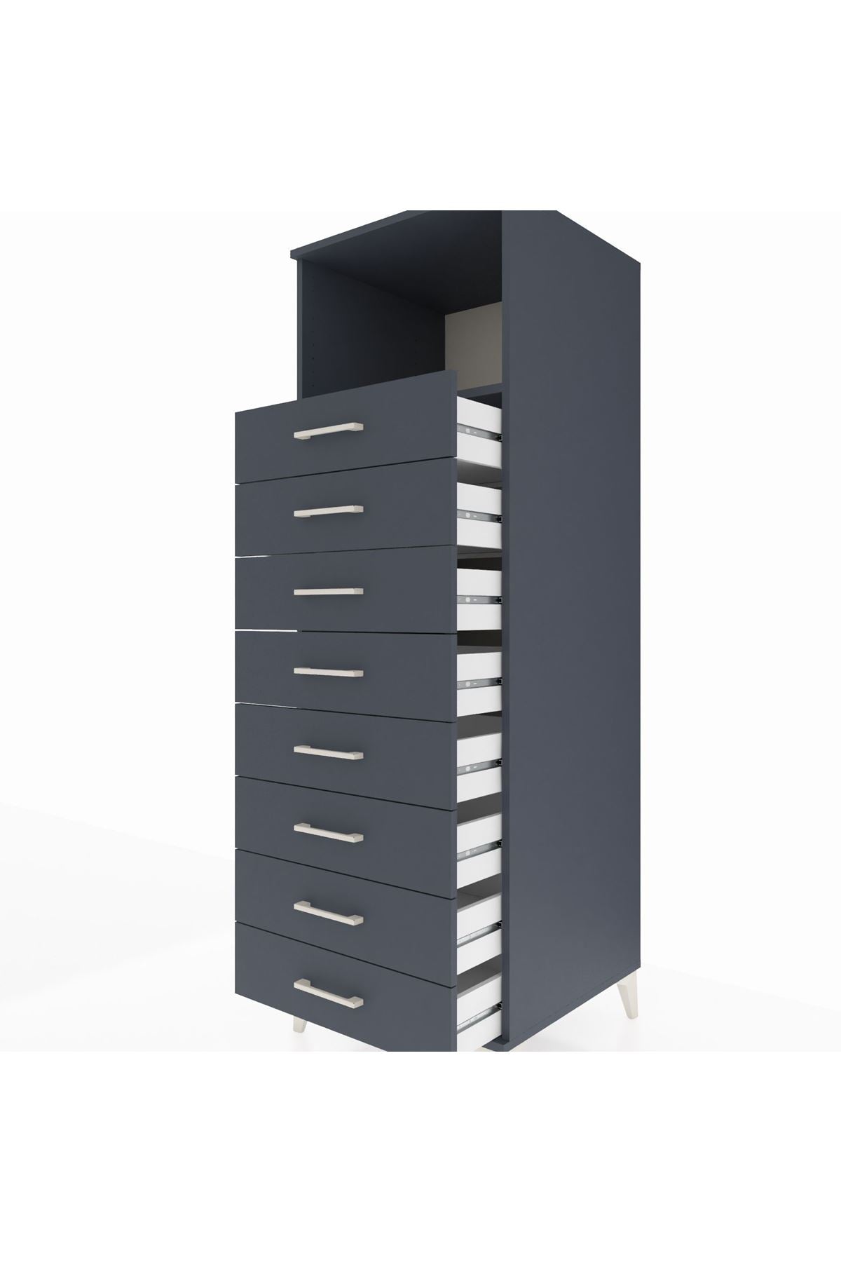 Kronos Dolap Tek Raflı 8 Çekmeceli 60x59x182 Antrasit-Antrasit