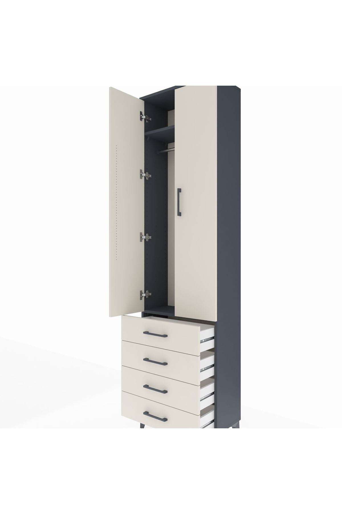 Arges Dolap 2 Raflı 4 Çekmeceli Tek Askılı 60x30x221 Antrasit-Aytaşı
