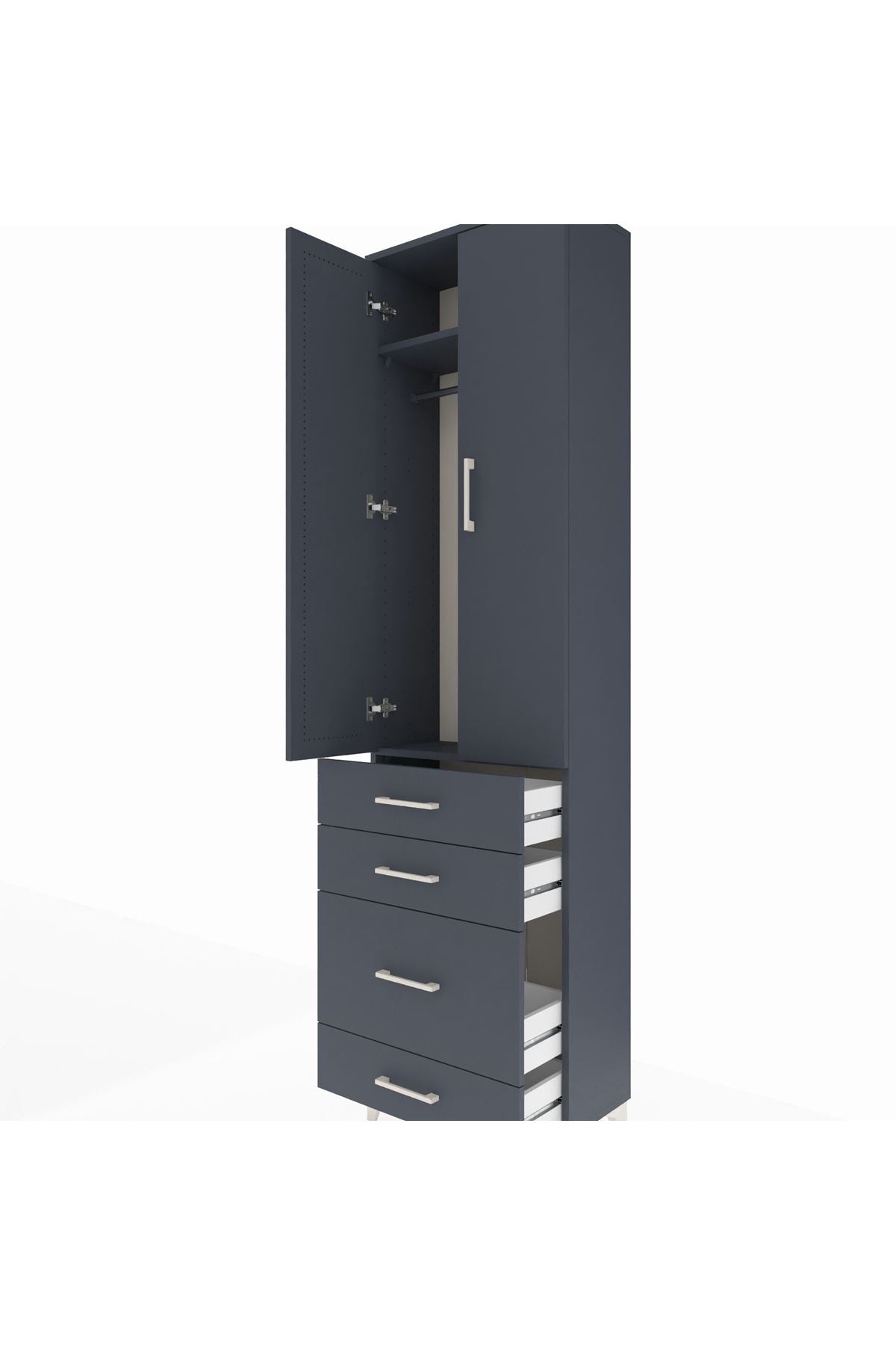 Arges Dolap 2 Raflı 4 Çekmeceli Tek Askılı 60x30x221 Antrasit-Antrasit