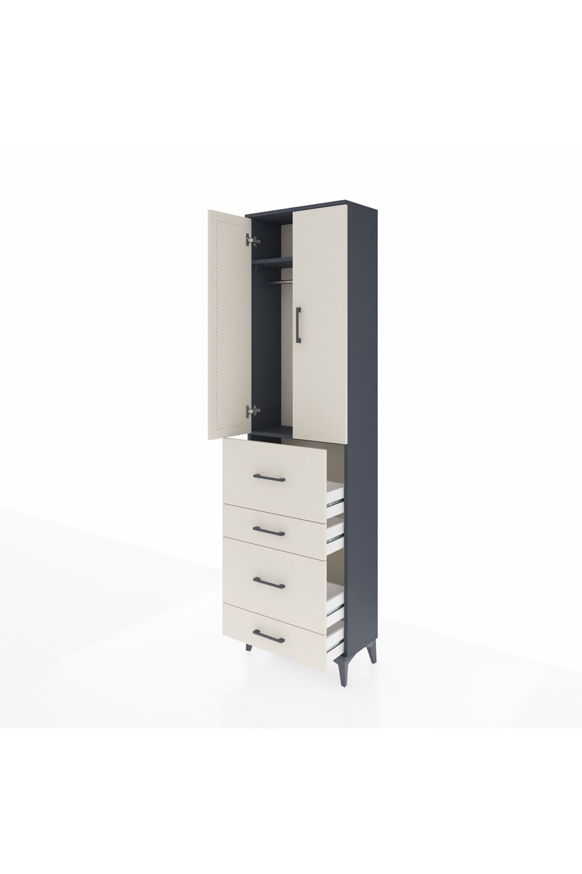 Arges Dolap 2 Raflı 4 Çekmeceli Tek Askılı 60x30x221 Antrasit-Aytaşı