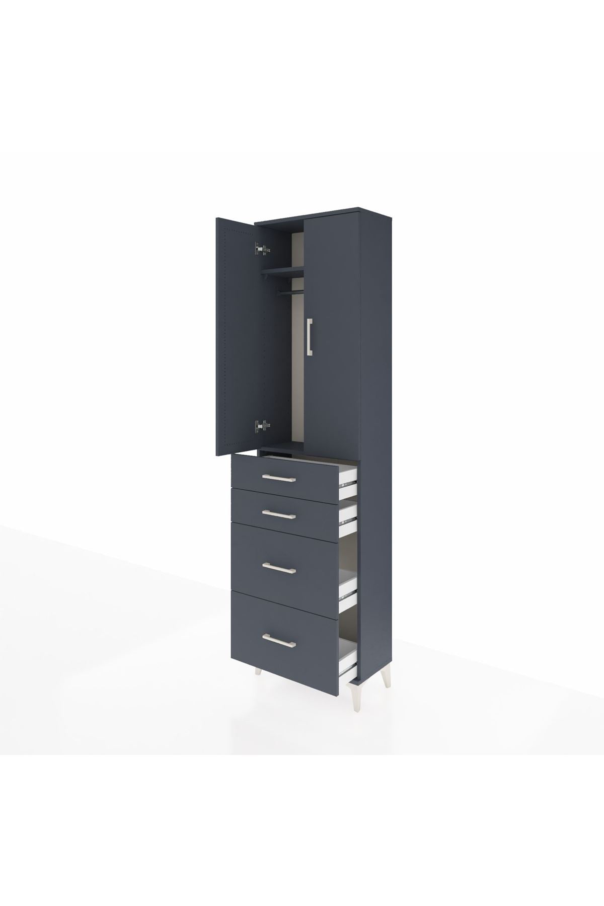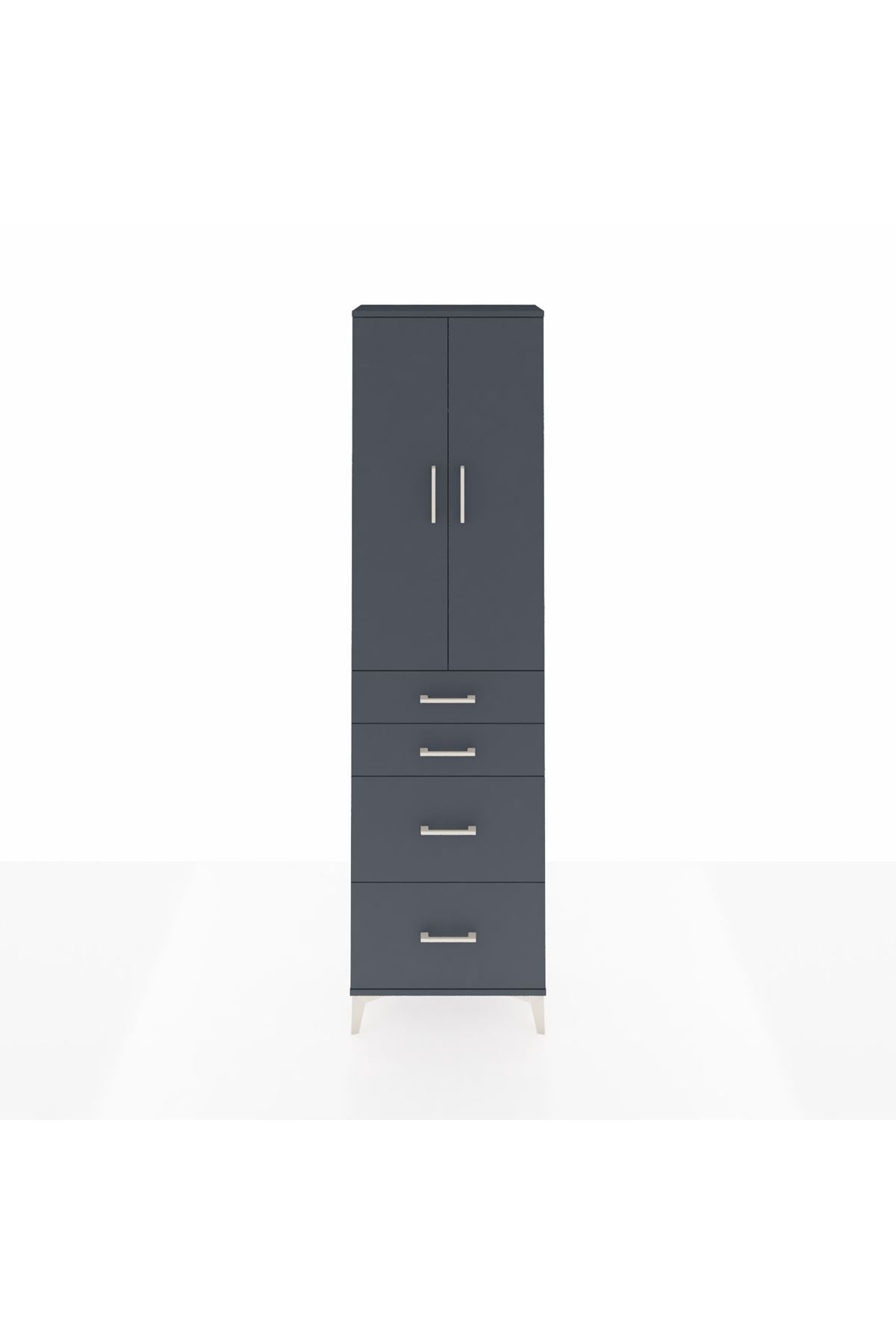 Arges Dolap 2 Raflı 4 Çekmeceli Tek Askılı 60x30x221 Antrasit-Antrasit