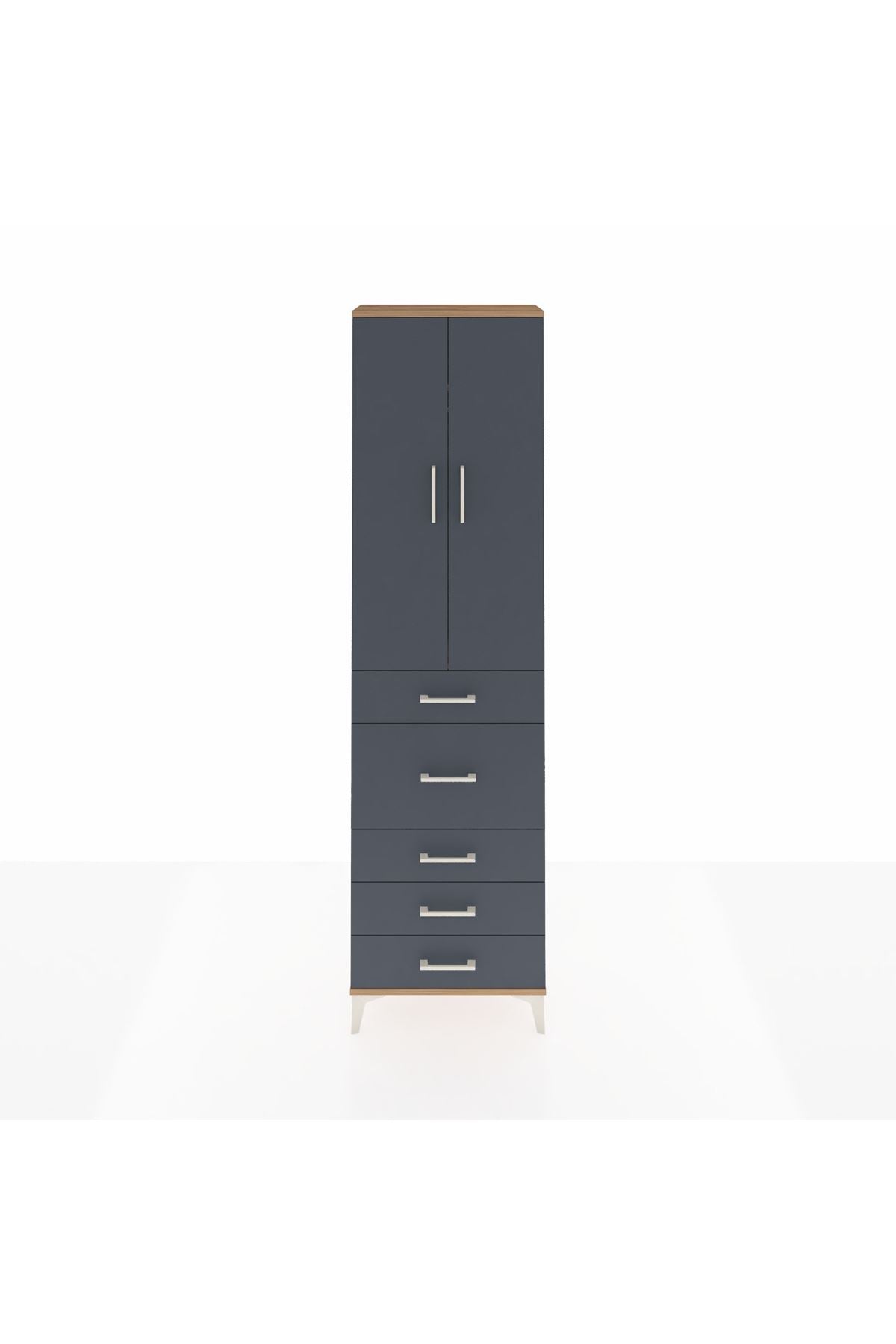 Arges Dolap 2 Raflı 5 Çekmeceli 2 Kapaklı 60x30x221 Çam-Antrasit