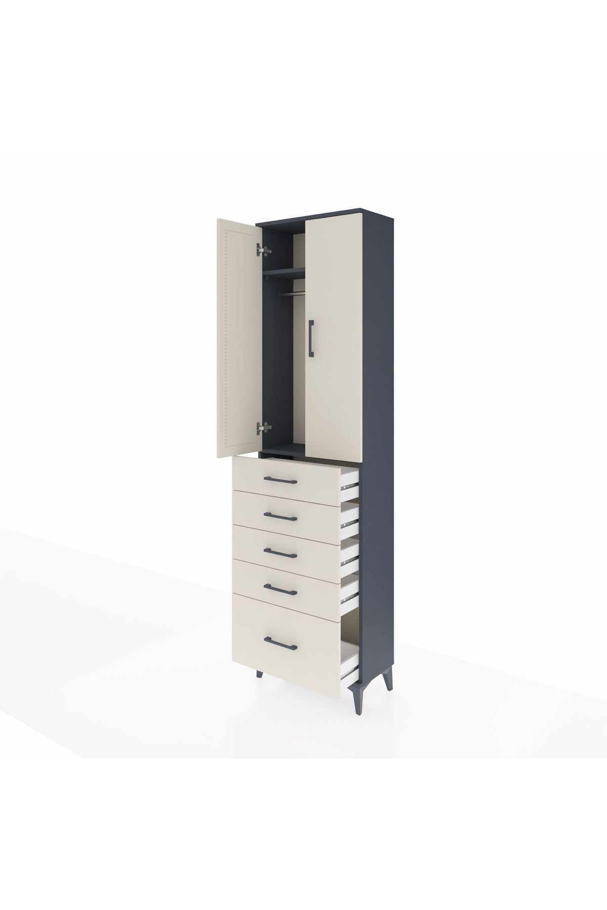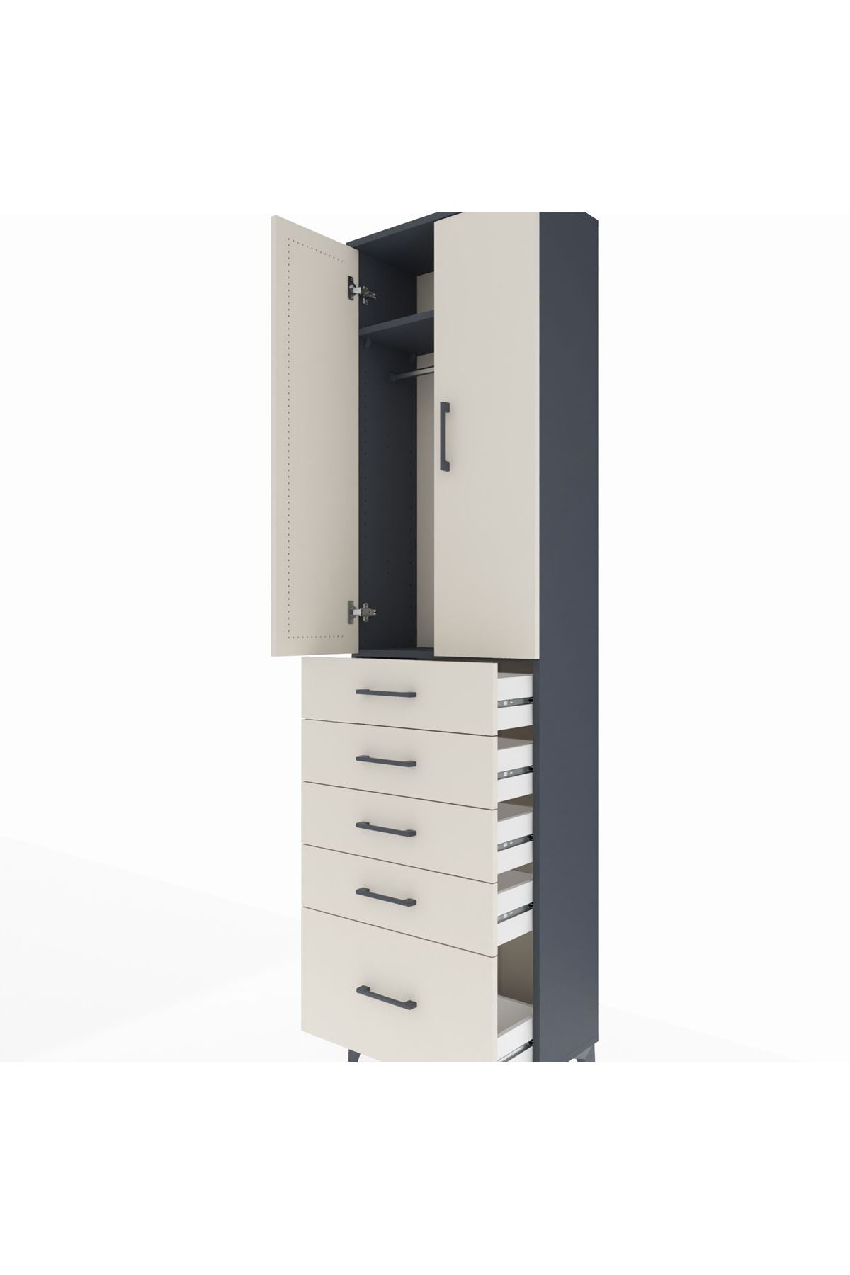 Arges Dolap 2 Raflı 5 Çekmeceli Tek Askılı 60x30x221 Antrasit-Aytaşı