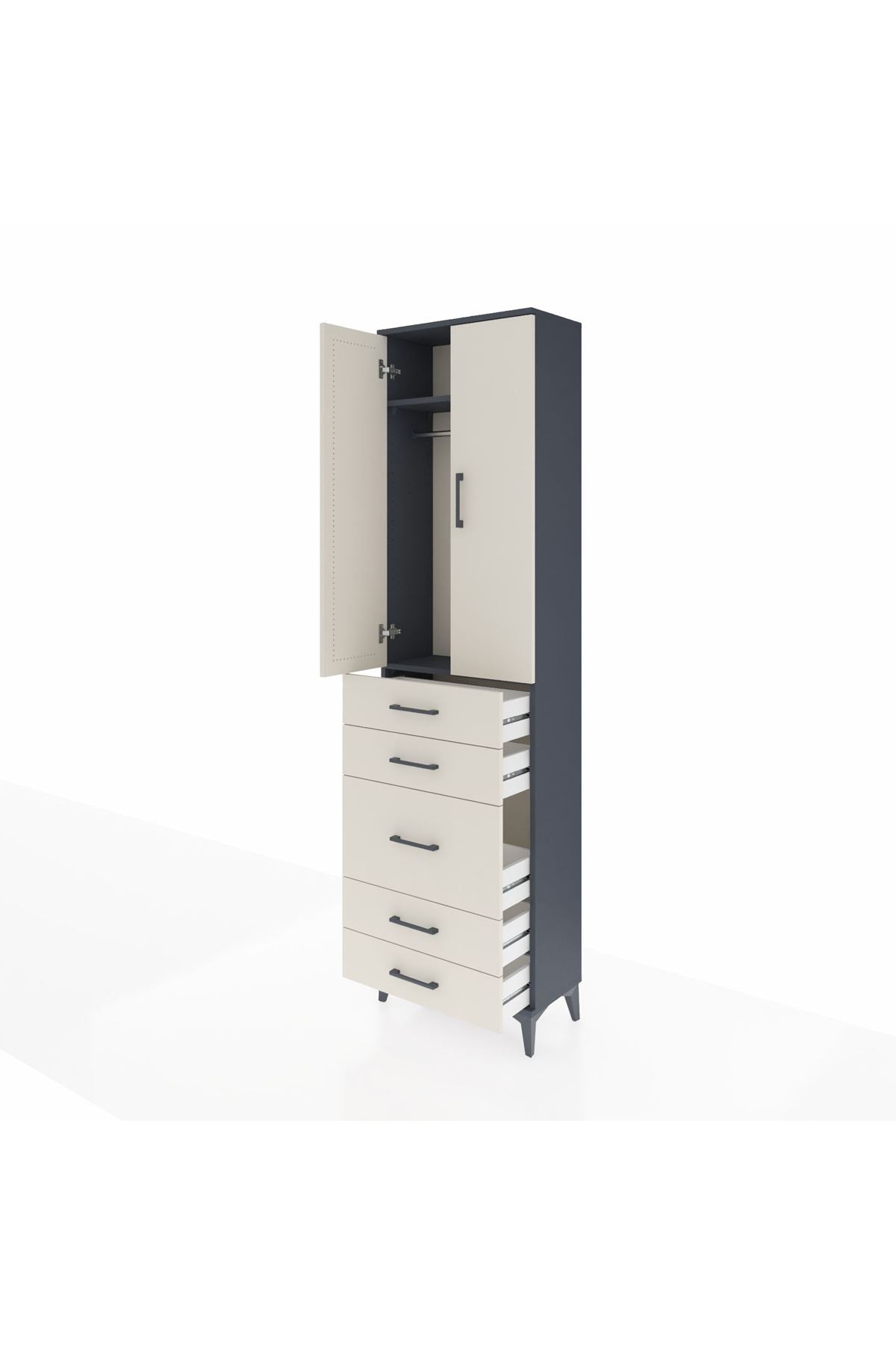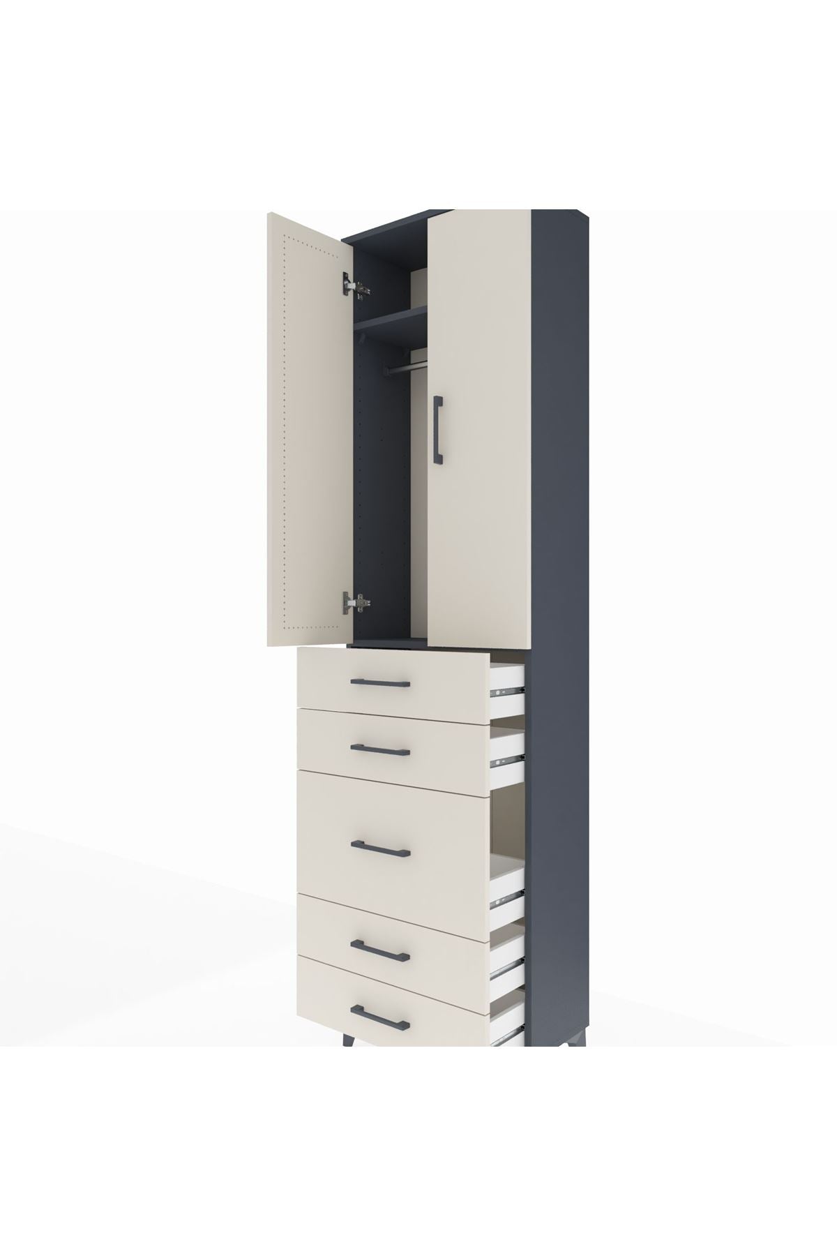 Arges Dolap 2 Raflı 5 Çekmeceli Tek Askılı 60x30x221 Antrasit-Aytaşı