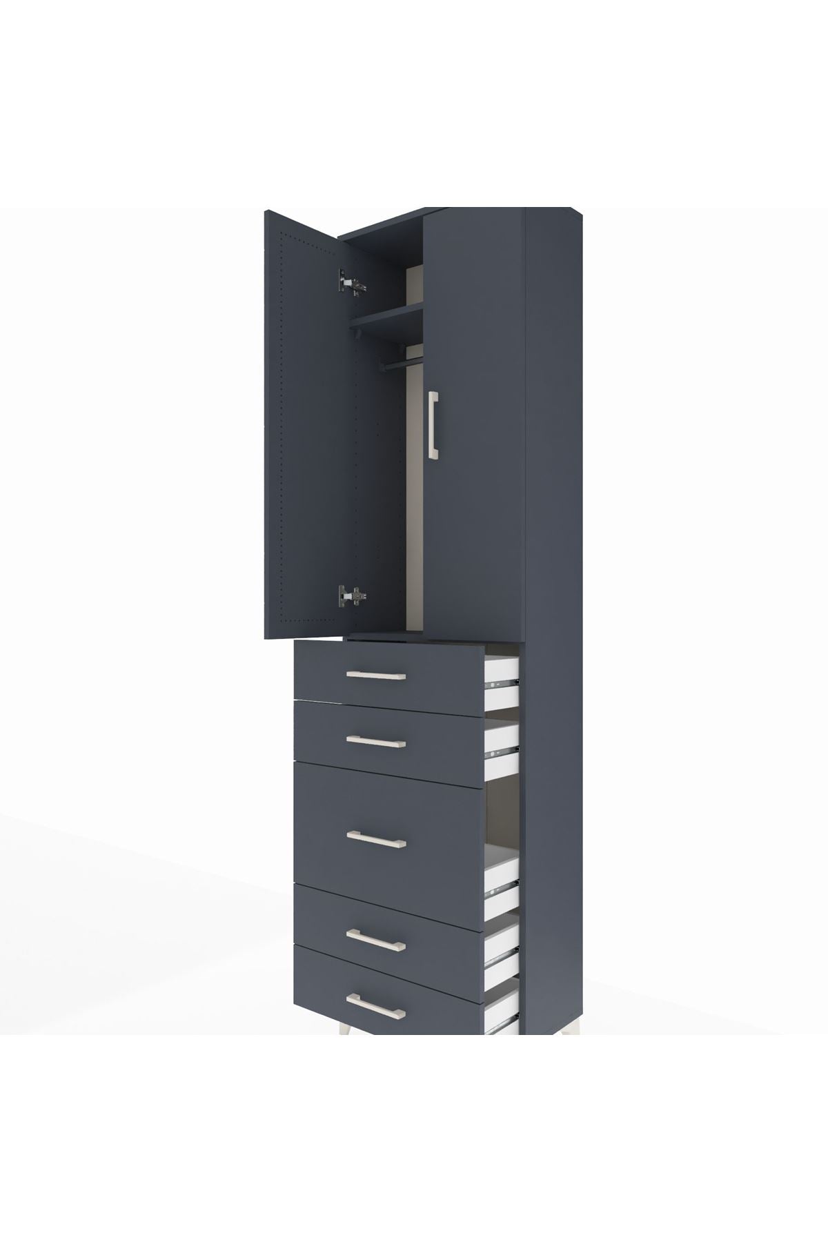 Arges Dolap 2 Raflı 5 Çekmeceli Tek Askılı 60x30x221 Antrasit-Antrasit