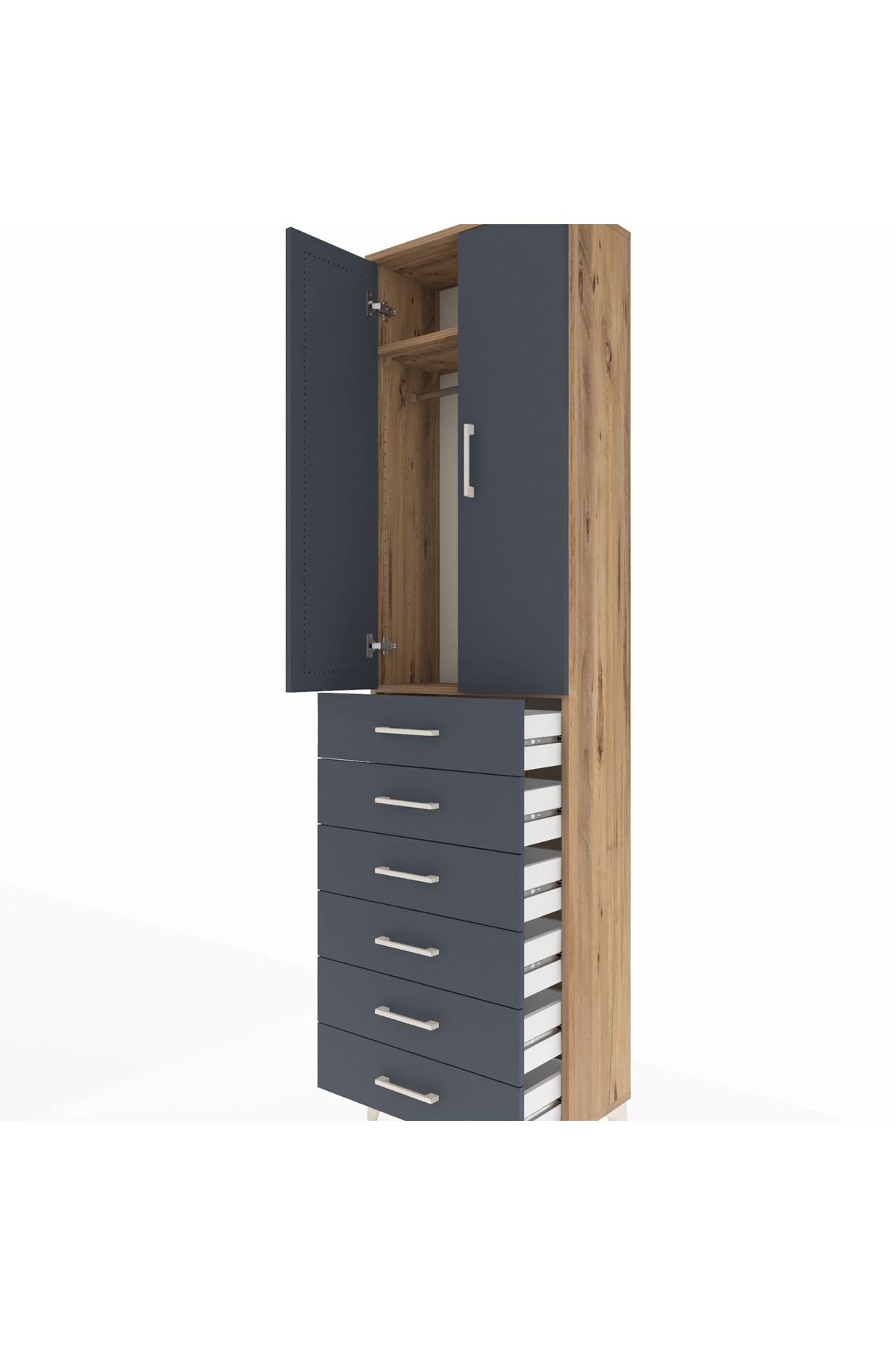 Arges Dolap 2 Raflı 6 Çekmeceli Tek Askılı 60x30x221 Çam-Antrasit