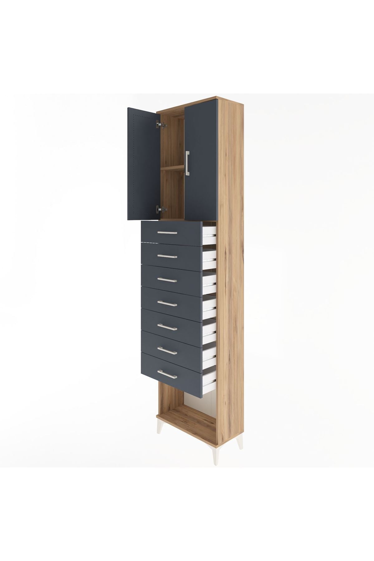 Arges Dolap 2 Raflı 7 Çekmeceli 2 Kapaklı 60x30x243 Çam-Antrasit