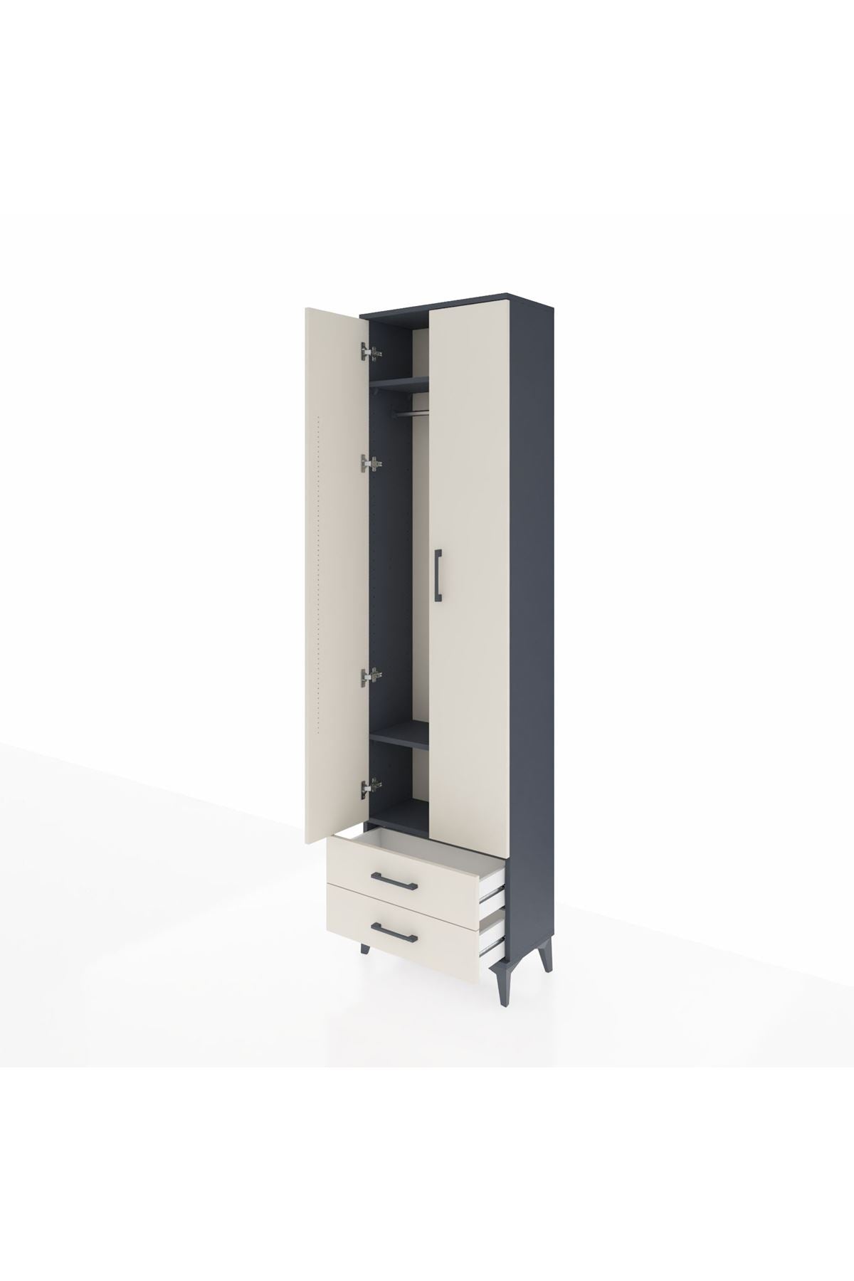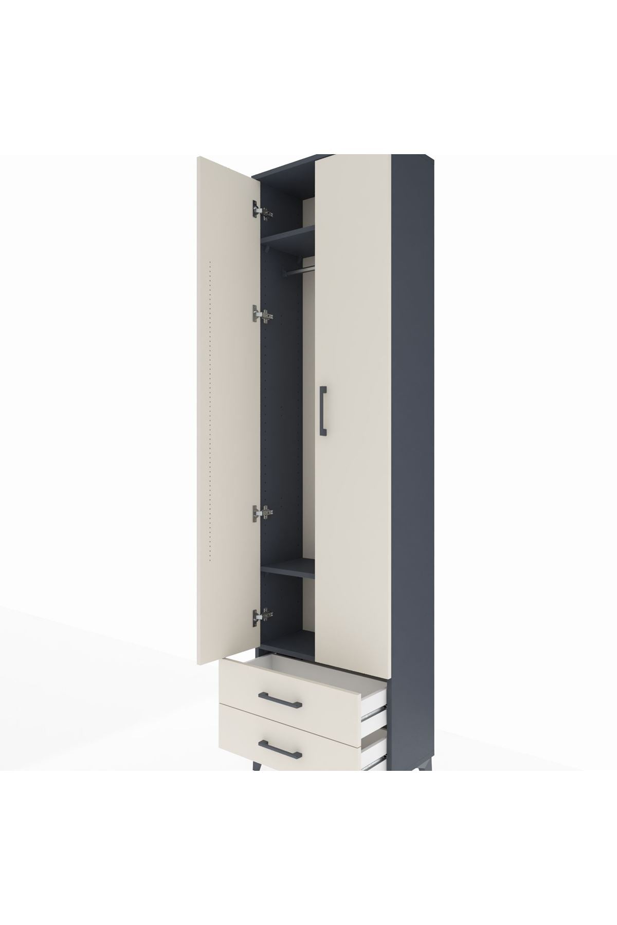 Arges Dolap 3 Raflı 2 Çekmeceli Tek Askılı 60x30x221 Antrasit-Aytaşı