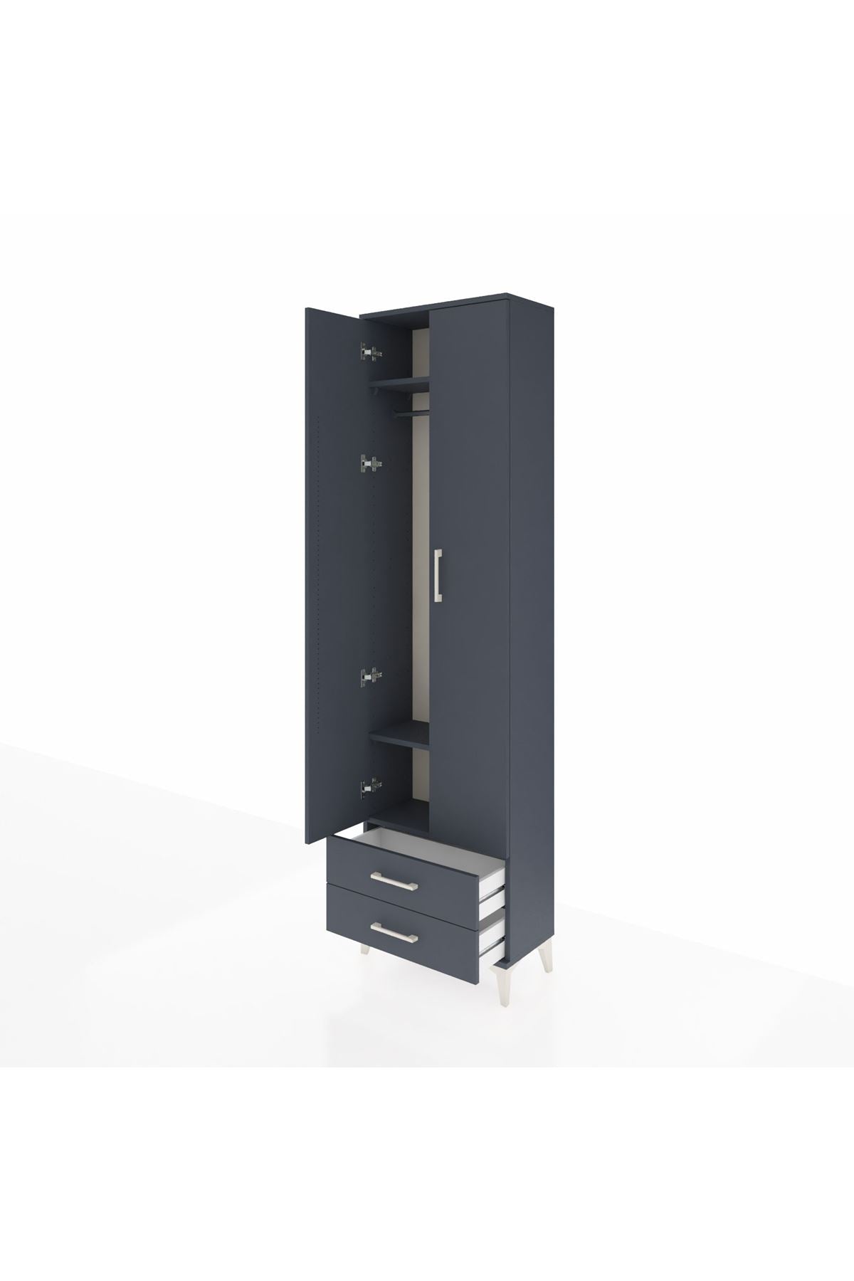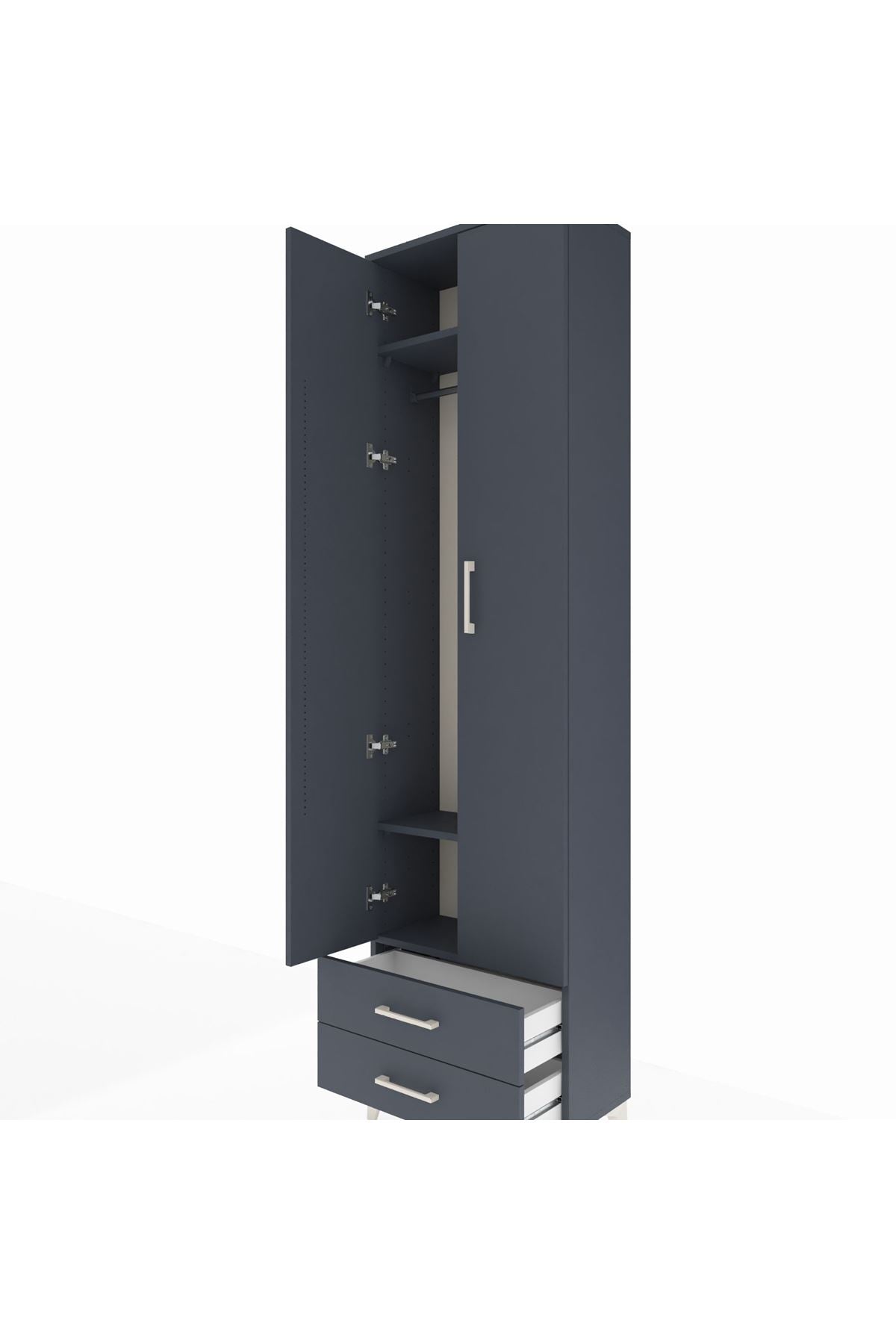 Arges Dolap 3 Raflı 2 Çekmeceli Tek Askılı 60x30x221 Antrasit-Antrasit