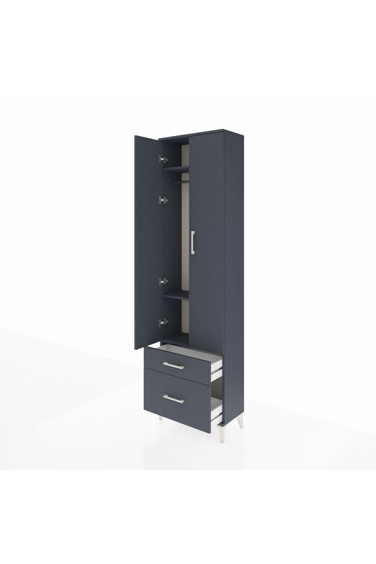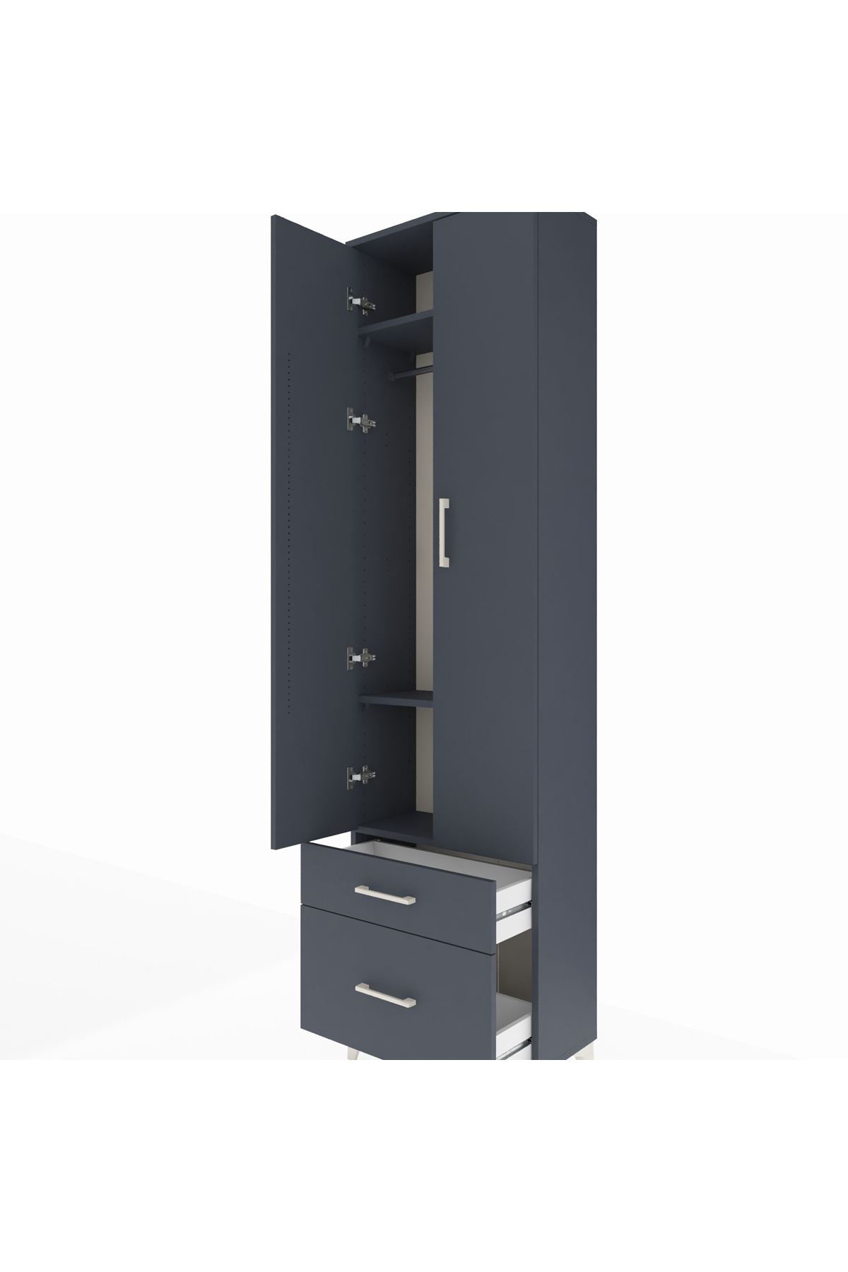 Arges Dolap 3 Raflı 2 Çekmeceli Tek Askılı 60x30x221 Antrasit-Antrasit