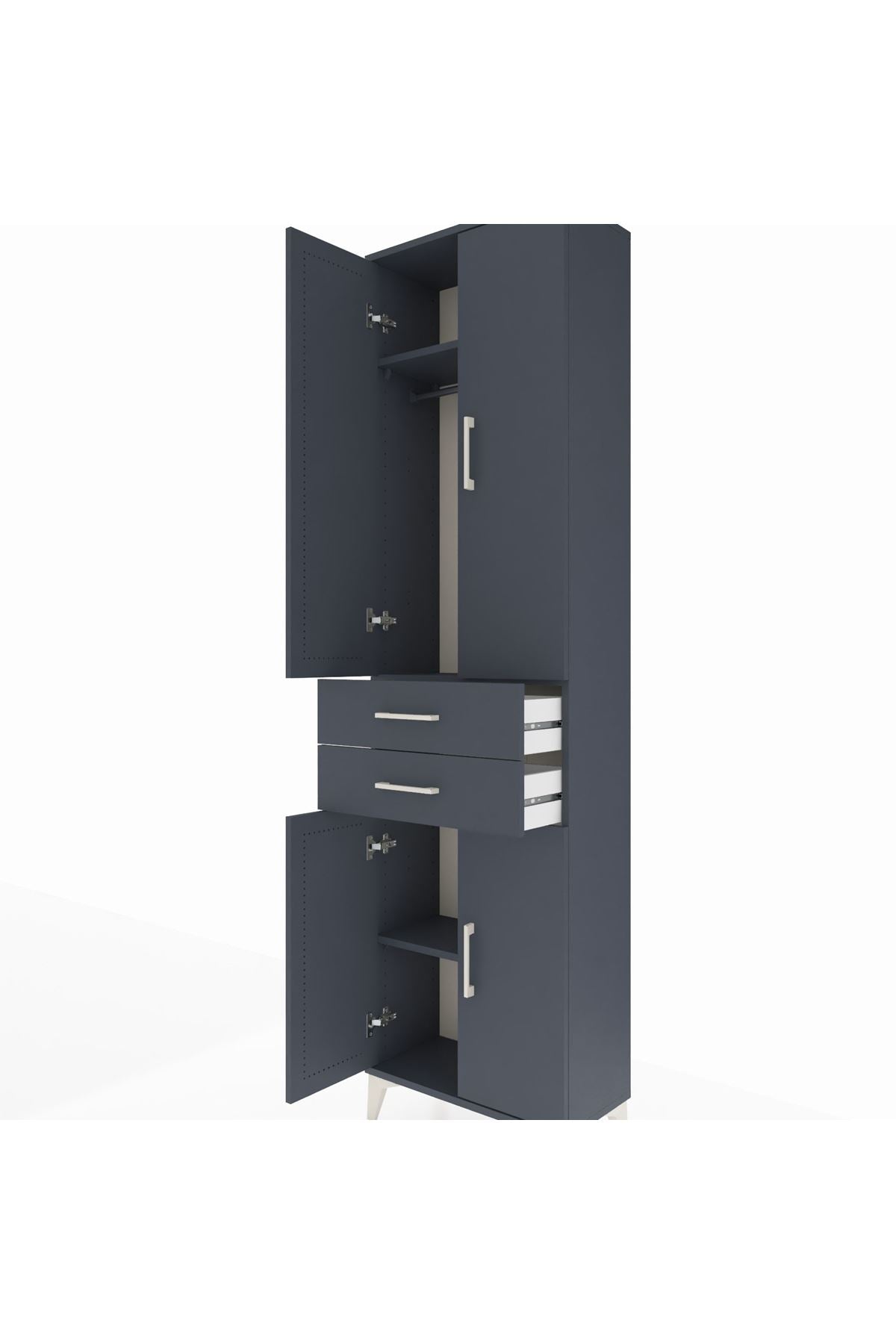 Arges Dolap 3 Raflı 2 Çekmeceli Tek Askılı 60x30x221 Antrasit-Antrasit