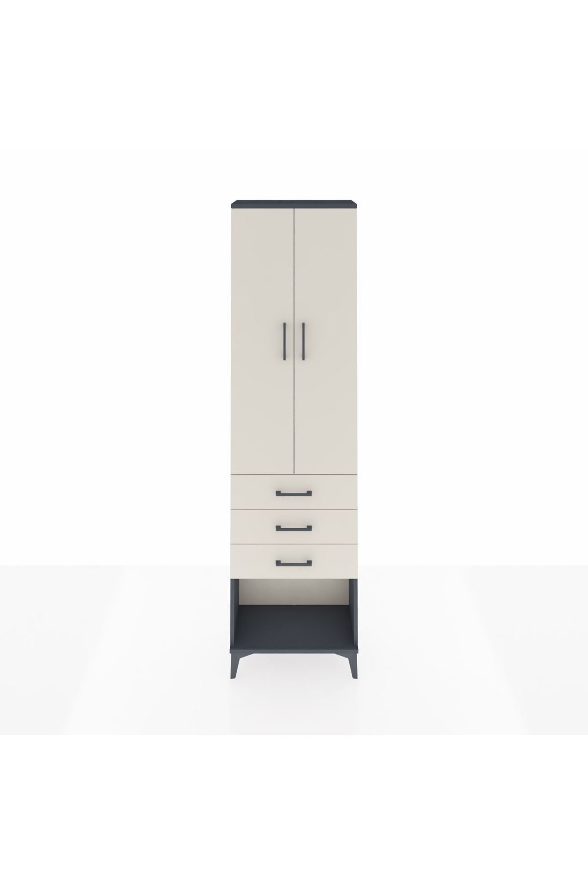 Arges Dolap 3 Raflı 3 Çekmeceli 2 Kapaklı 60x30x221 Antrasit-Aytaşı