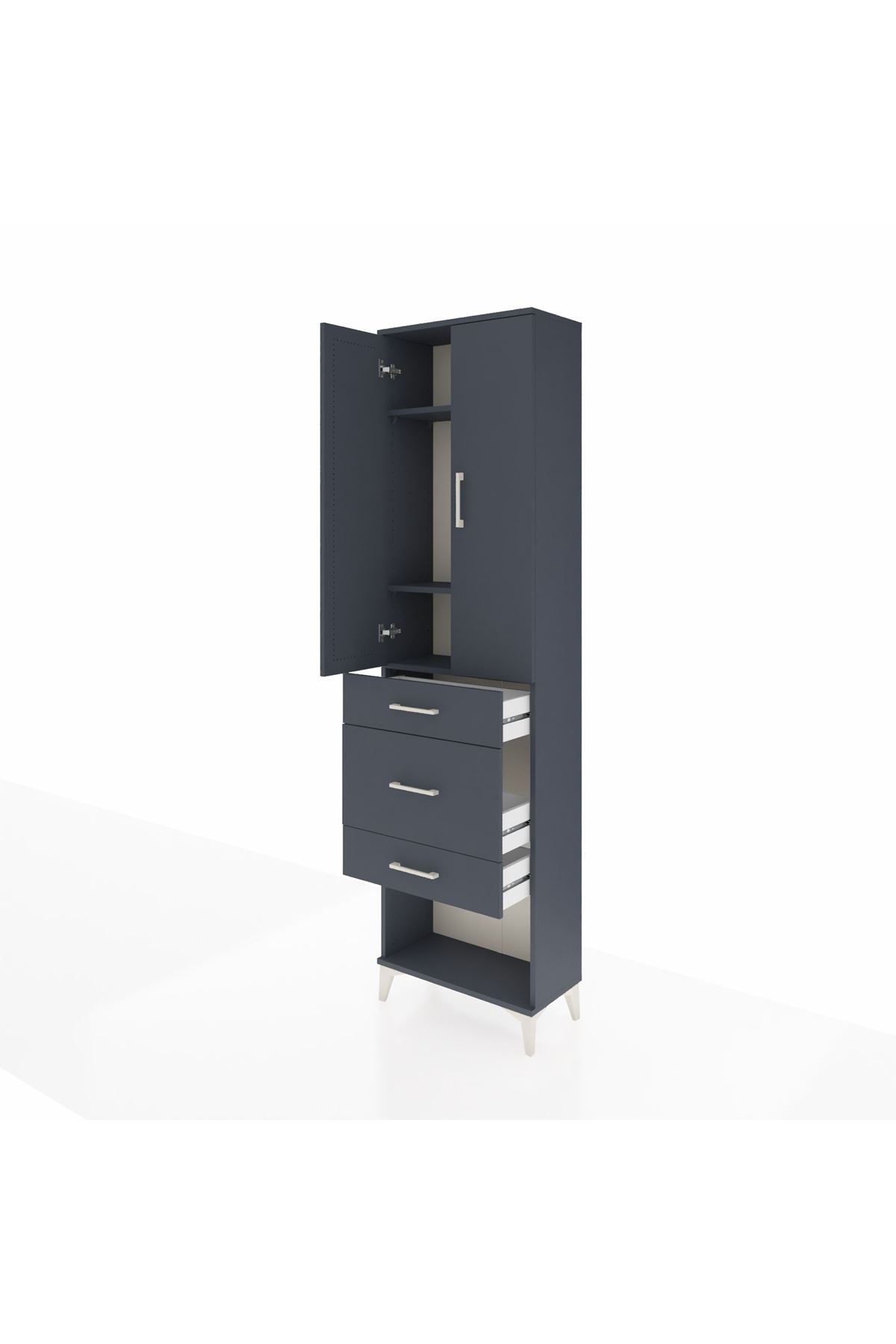 Arges Dolap 3 Raflı 3 Çekmeceli 2 Kapaklı 60x30x221 Antrasit-Antrasit