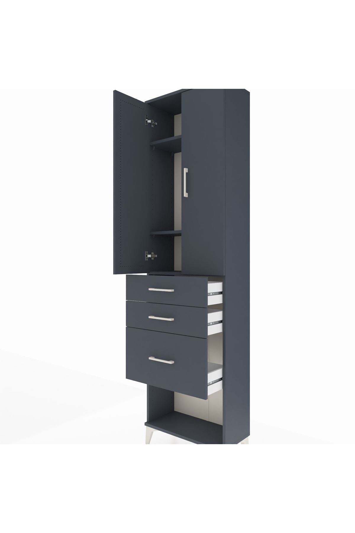 Arges Dolap 3 Raflı 3 Çekmeceli 2 Kapaklı 60x30x221 Antrasit-Antrasit