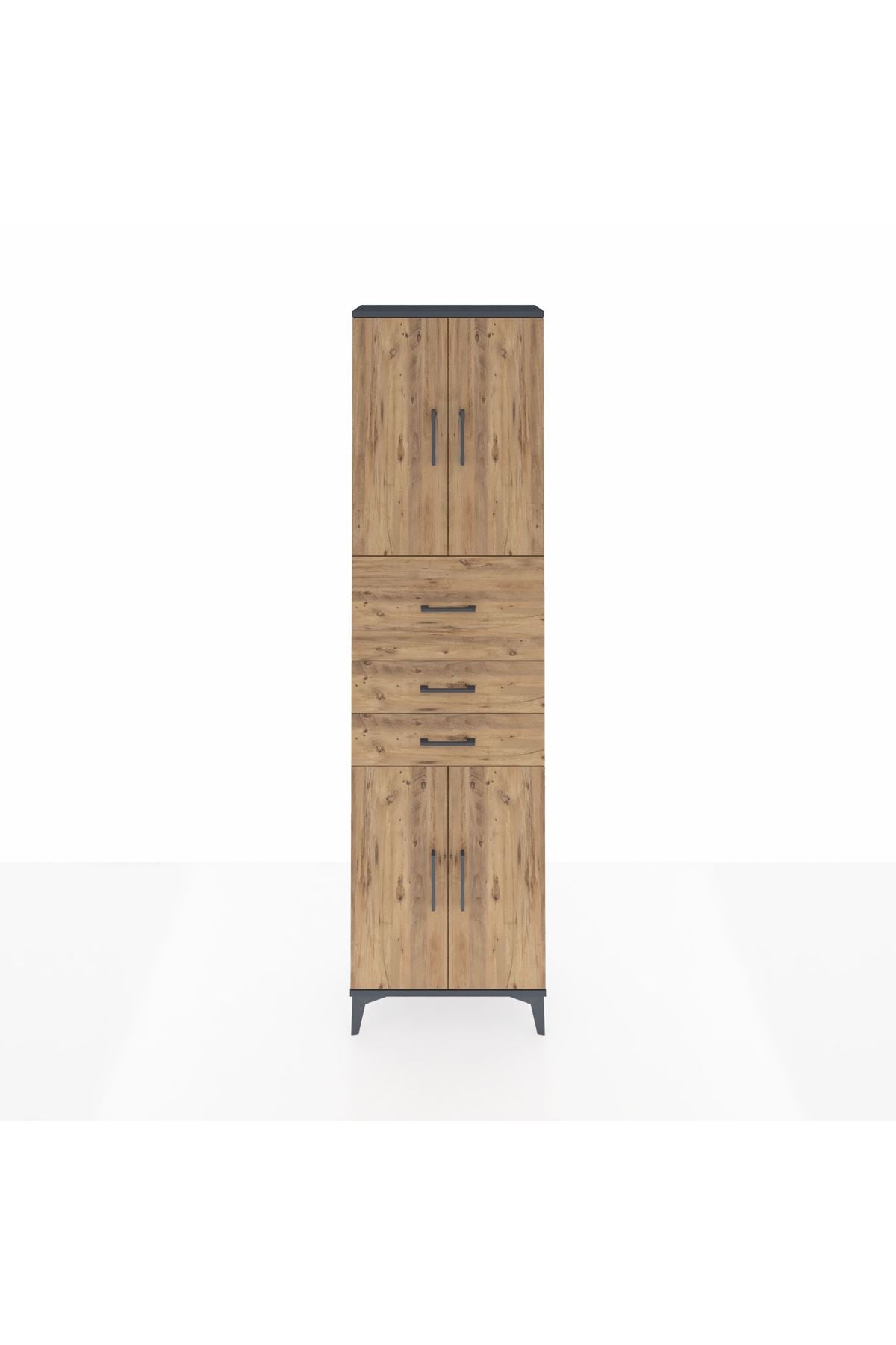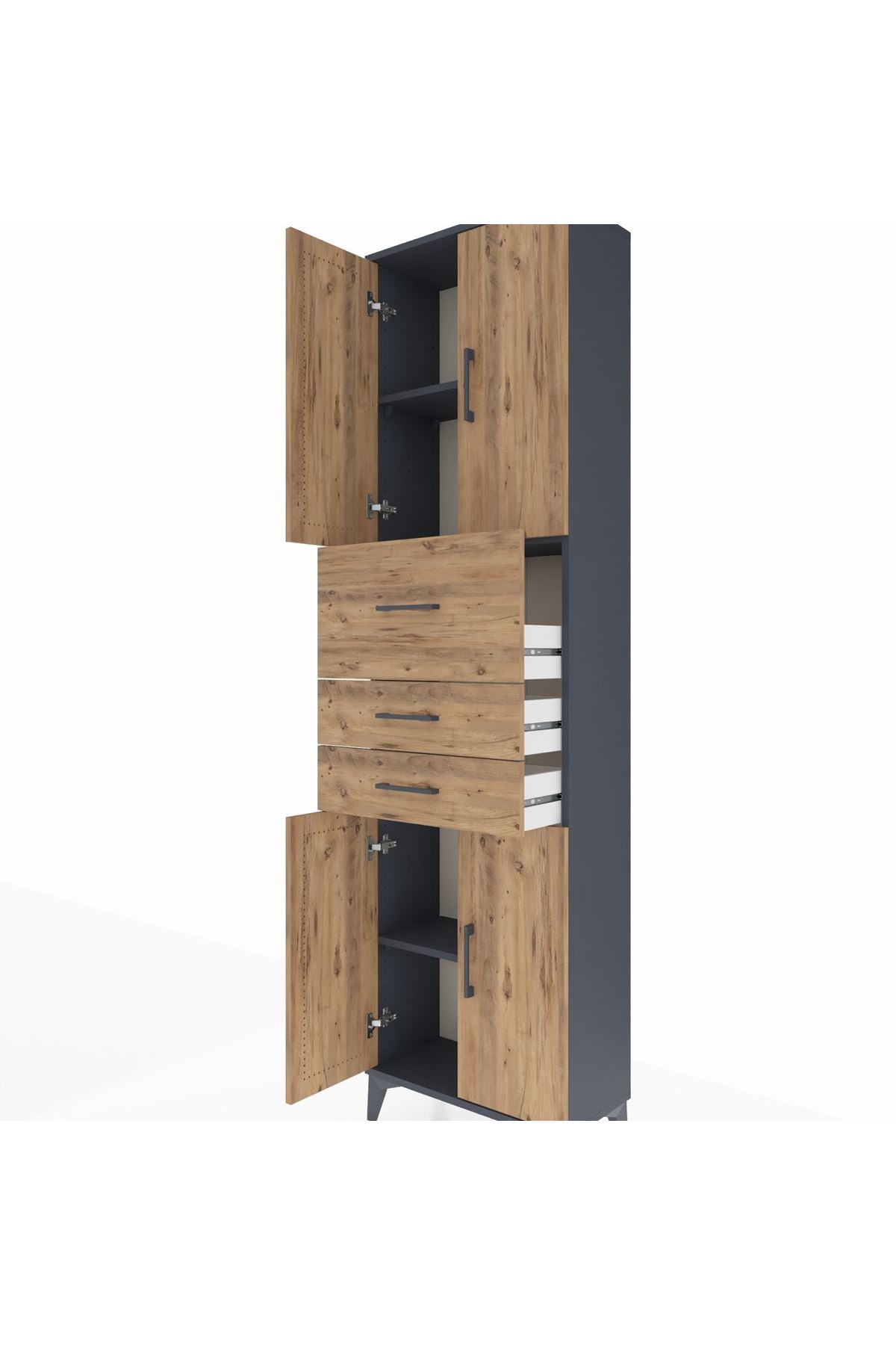 Arges Dolap 3 Raflı 3 Çekmeceli 4 Kapaklı 60x30x221 Antrasit-Çam
