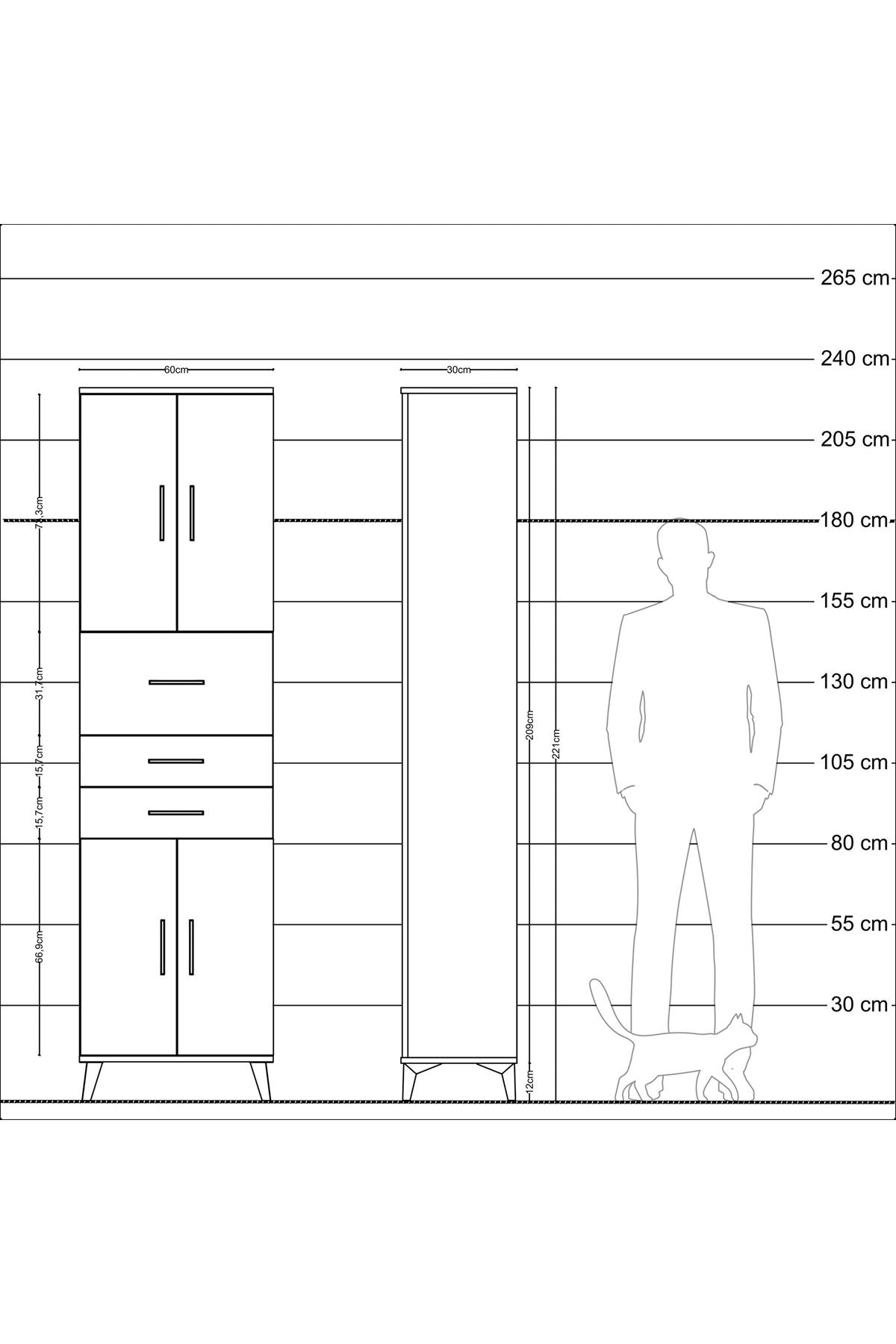 Arges Dolap 3 Raflı 3 Çekmeceli 4 Kapaklı 60x30x221 Aytaşı-Çam