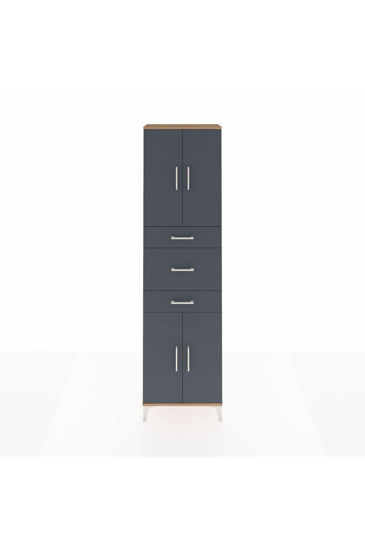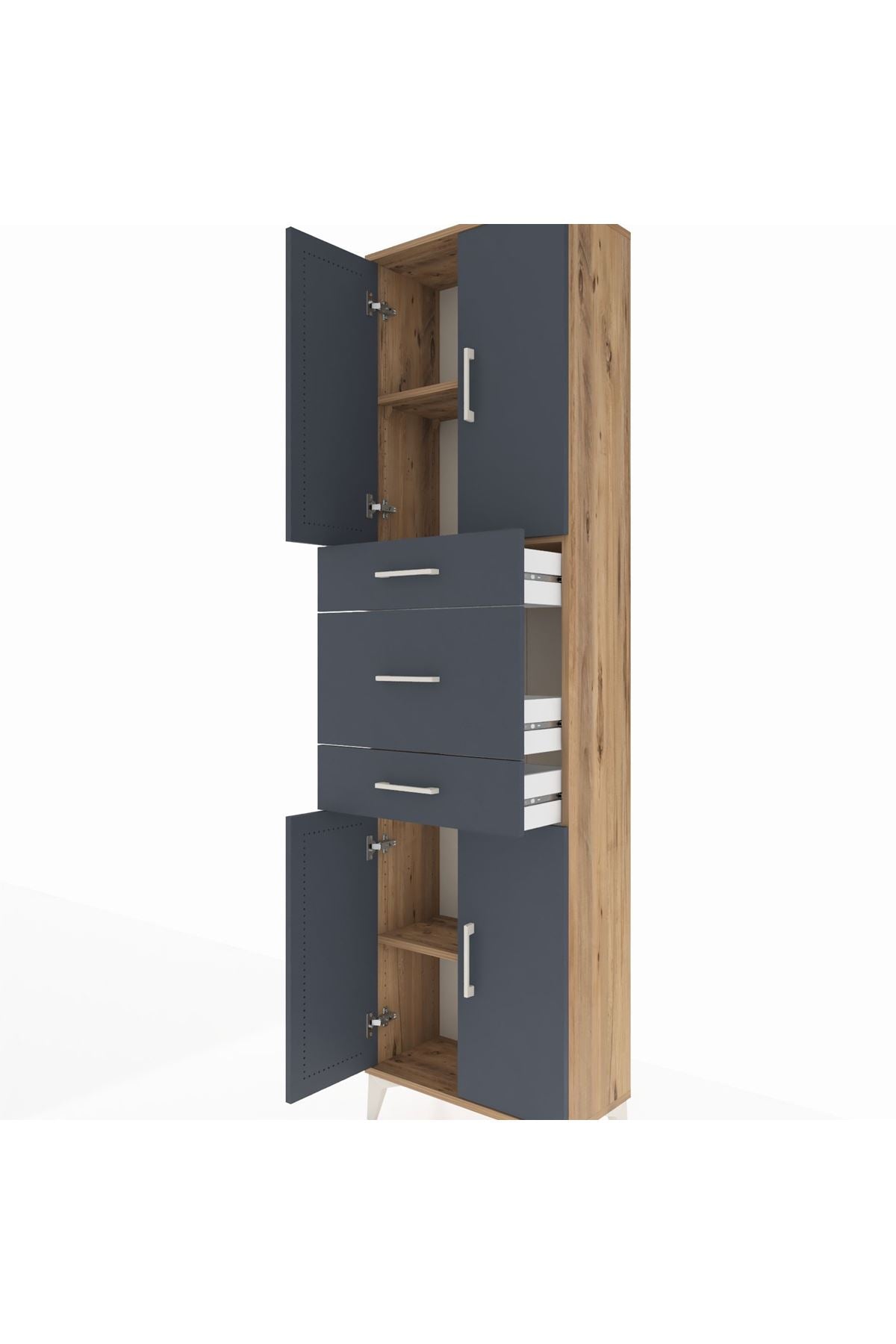 Arges Dolap 3 Raflı 3 Çekmeceli 4 Kapaklı 60x30x221 Çam-Antrasit