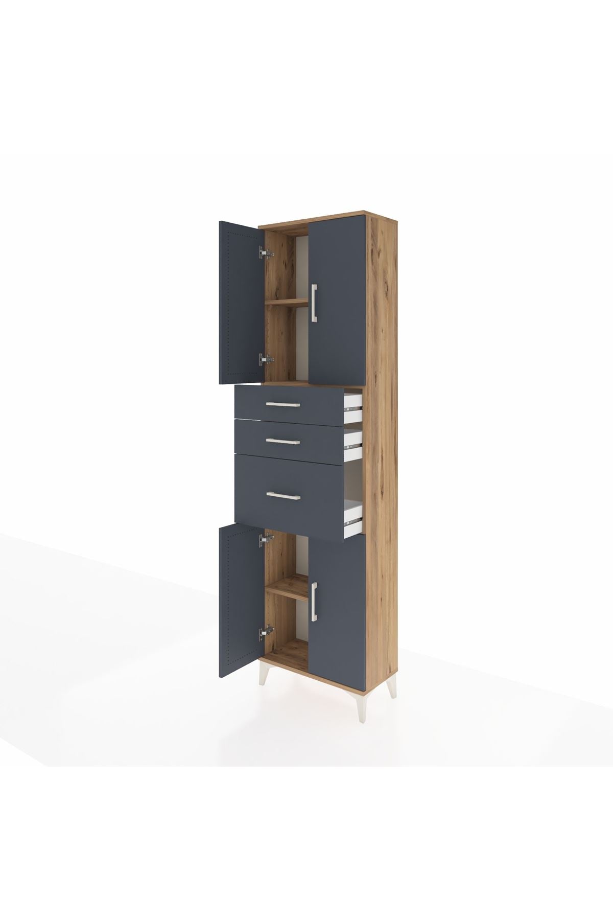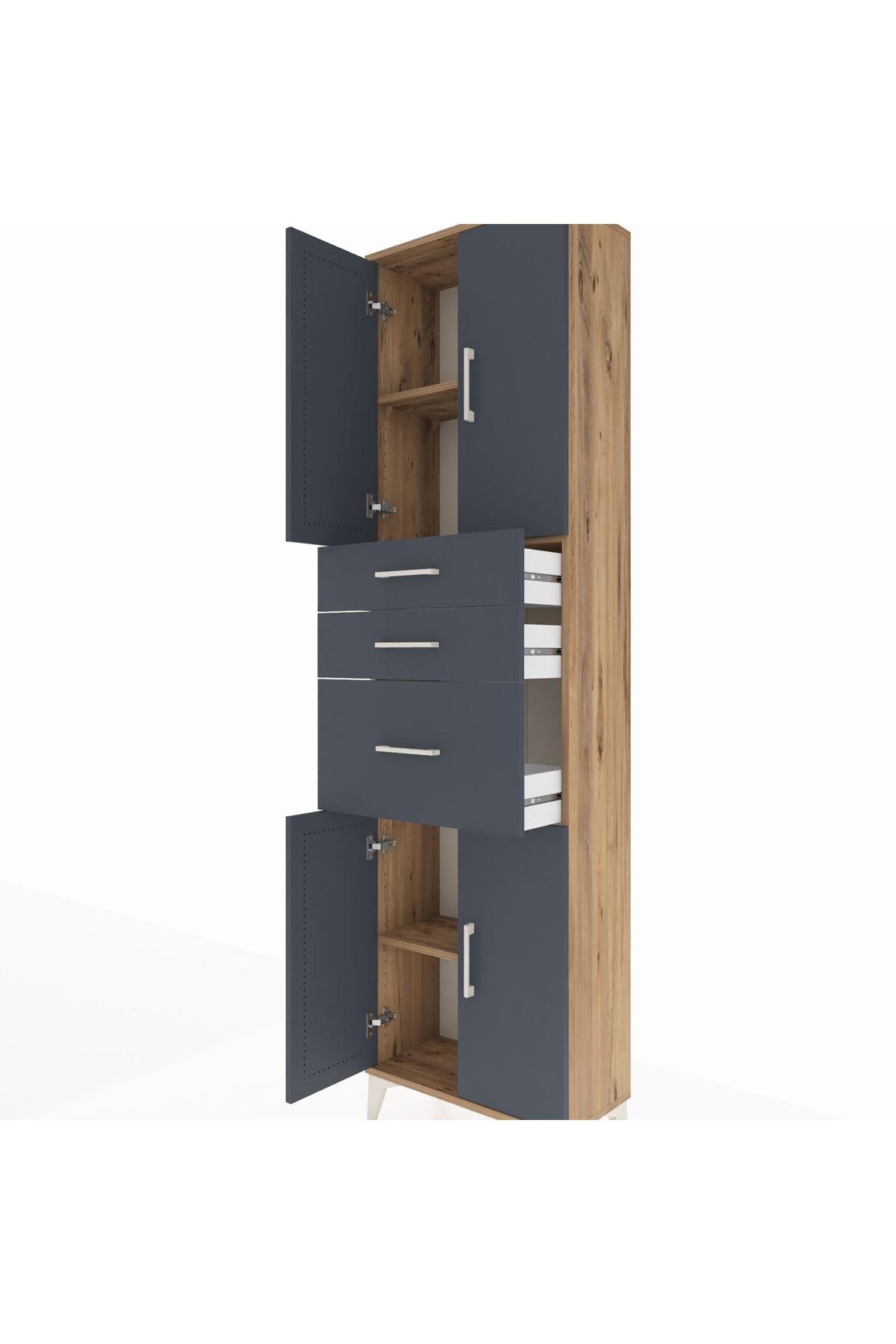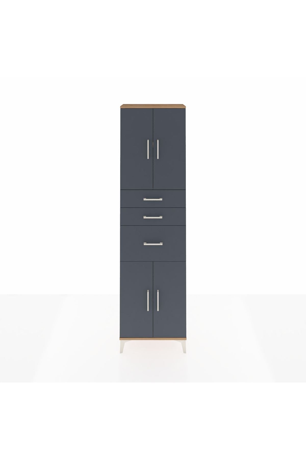 Arges Dolap 3 Raflı 3 Çekmeceli 4 Kapaklı 60x30x221 Çam-Antrasit