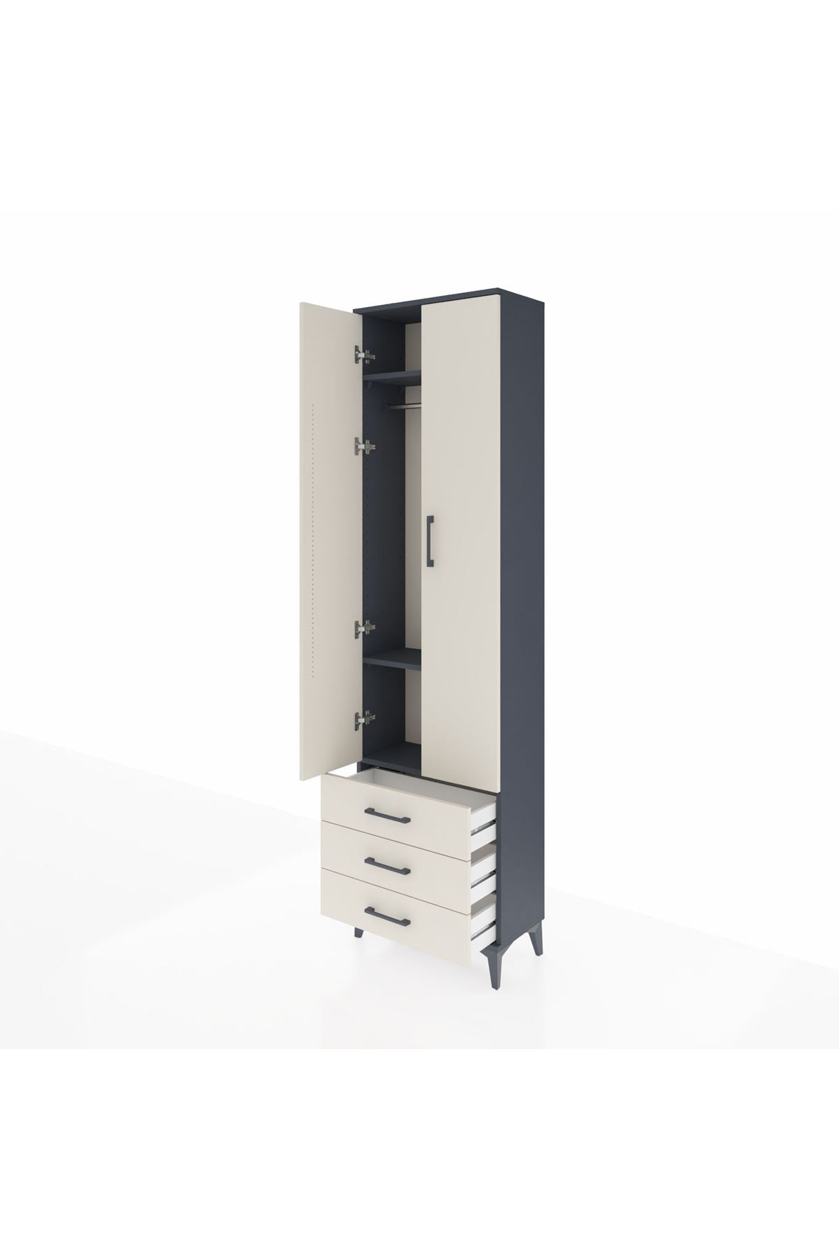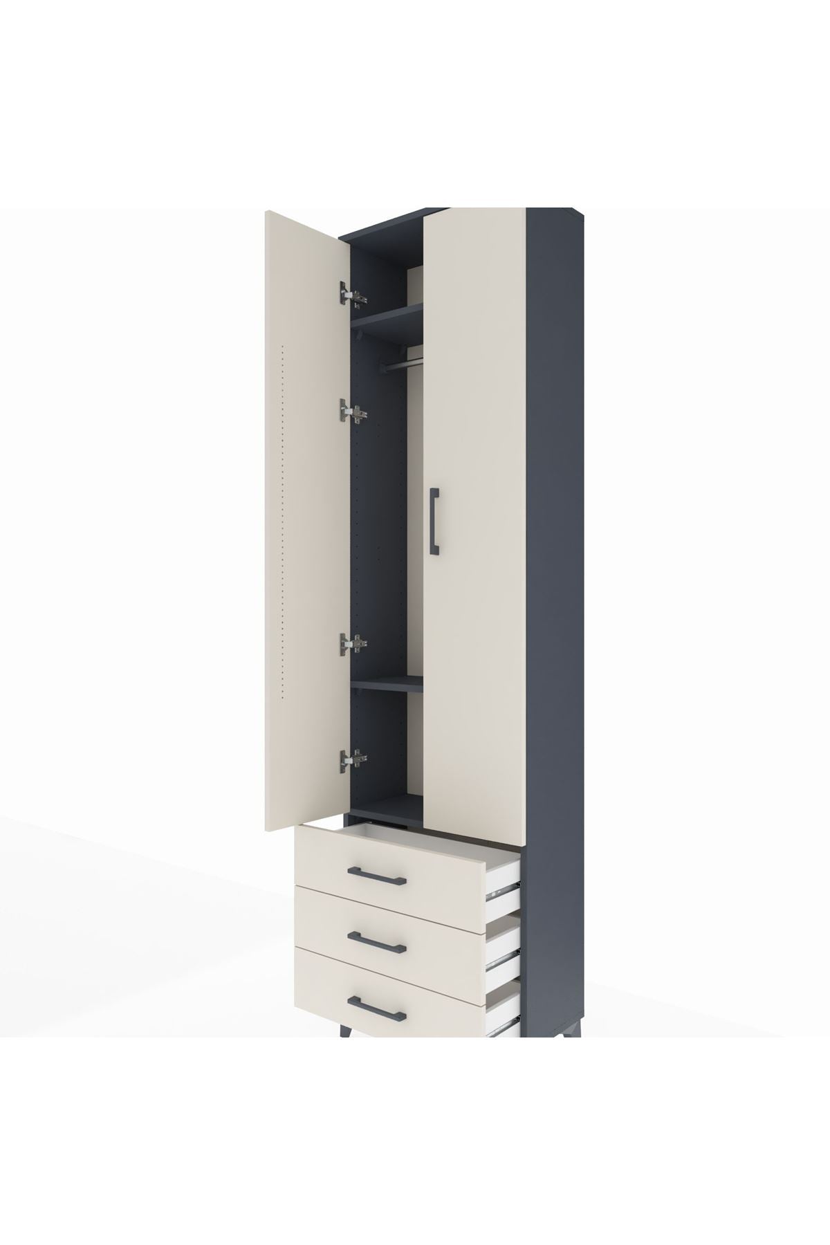 Arges Dolap 3 Raflı 3 Çekmeceli Tek Askılı 60x30x221 Antrasit-Aytaşı